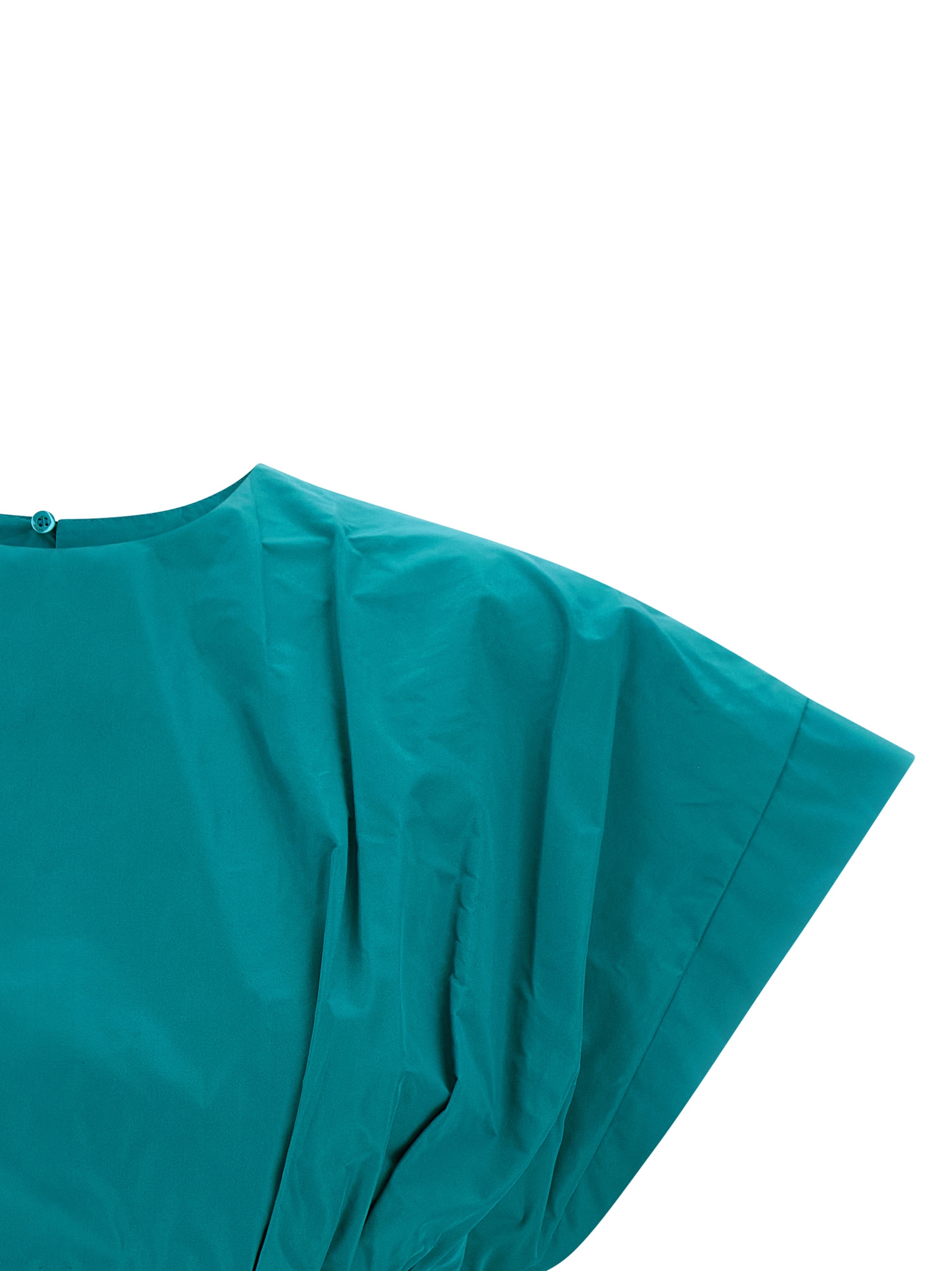 ‘Asparago’ taffeta top, crop model, front and back pincer, crew neck, button closure and back hooks with cut-out teardrop detail, short sleeves.