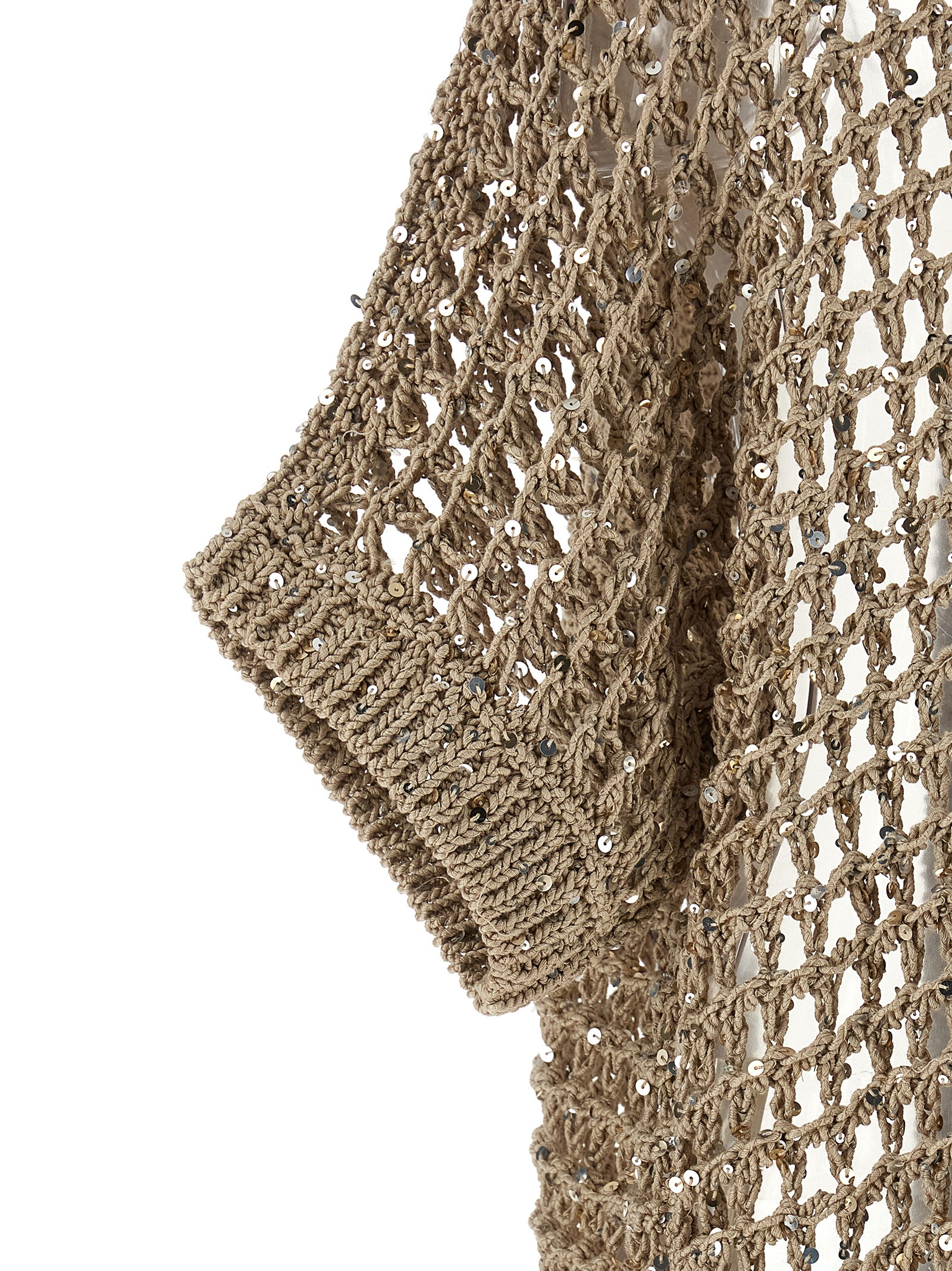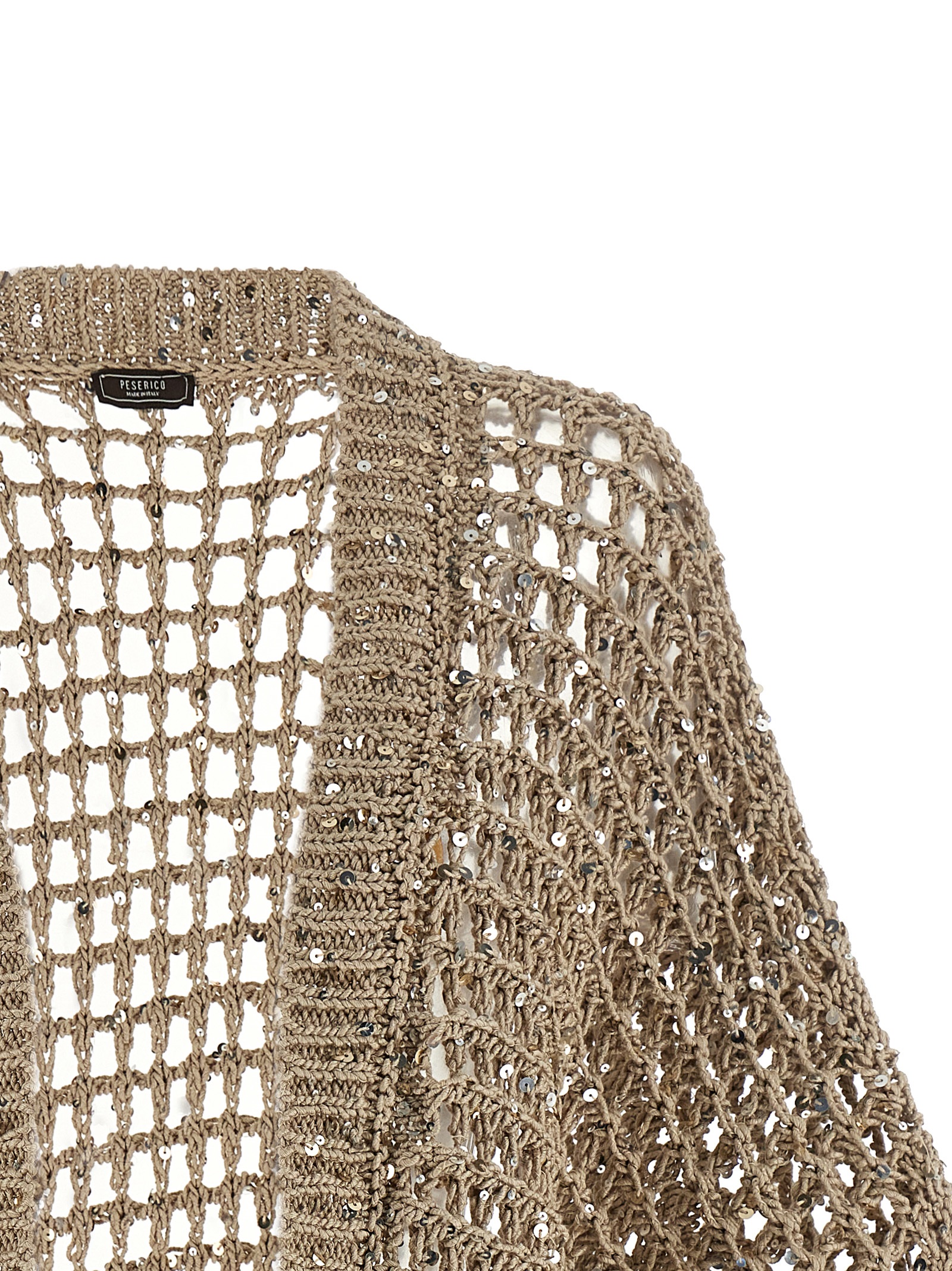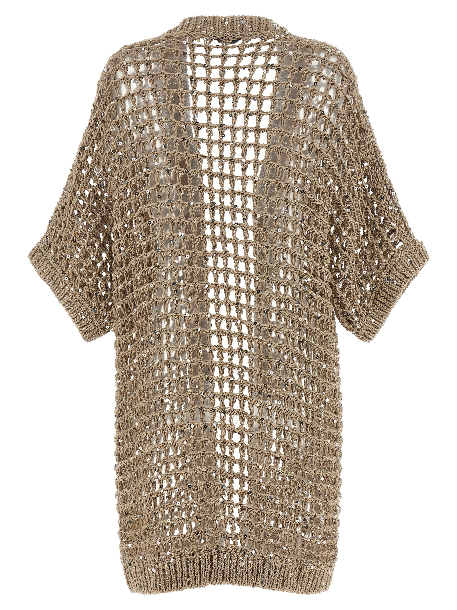 Tricot ‘Aurea’ cotton webbing cardigan with micro sequin insert, loose fit, no closure, kimono sleeves.