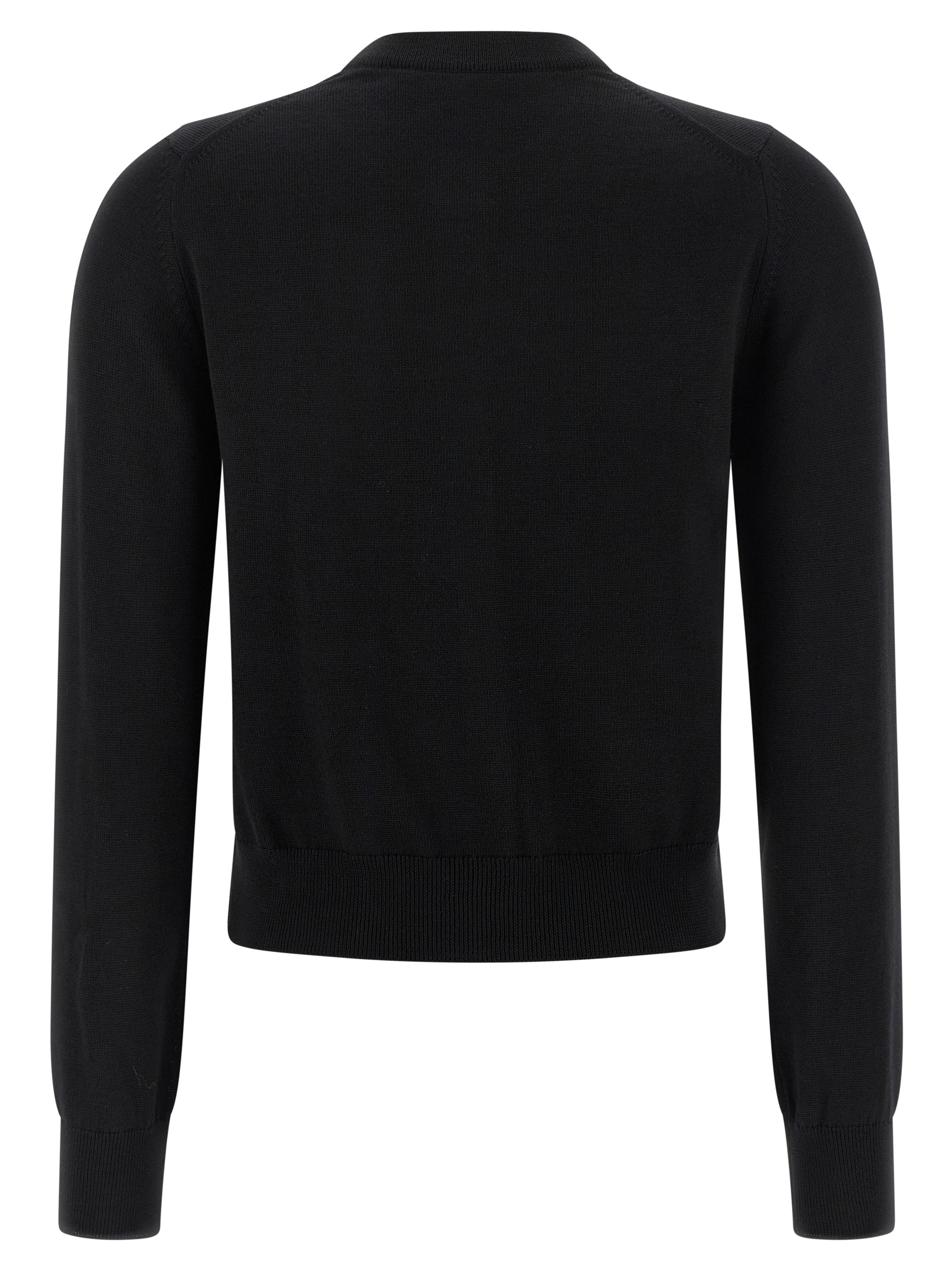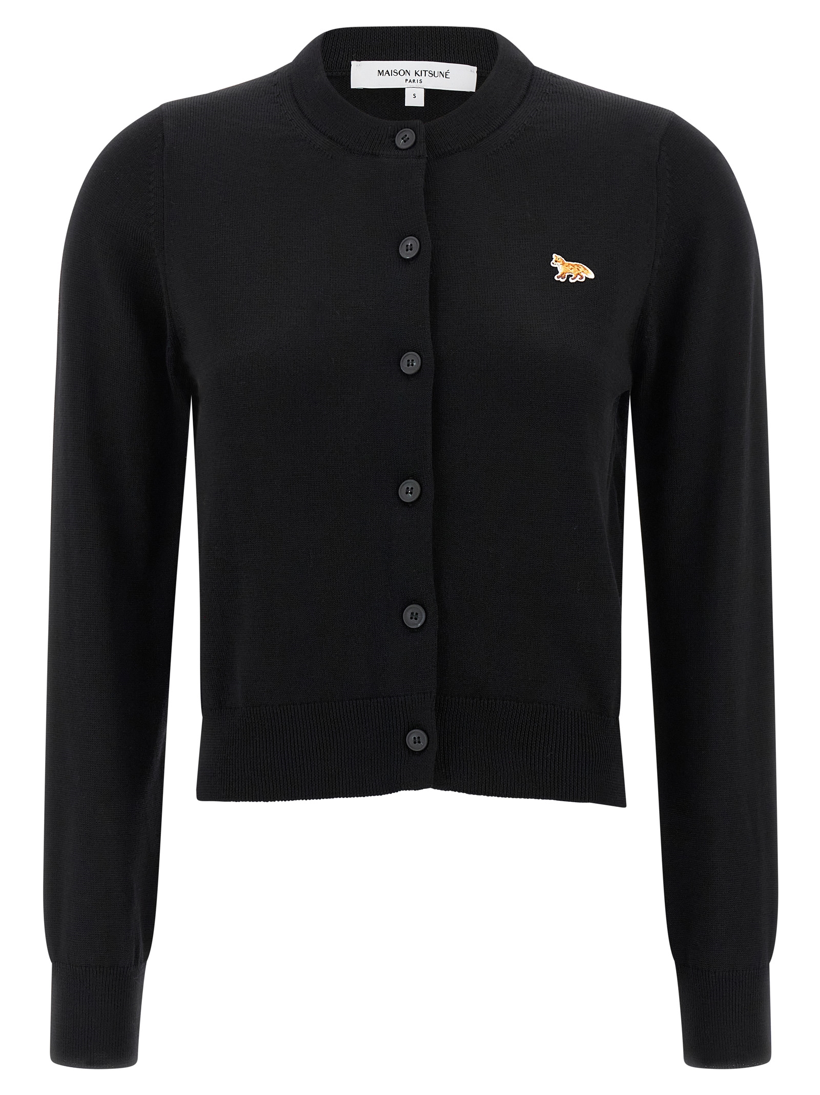 Extrafine wool cardigan, Baby Fox patch and front button closure, crew neck, long cuffed sleeves.