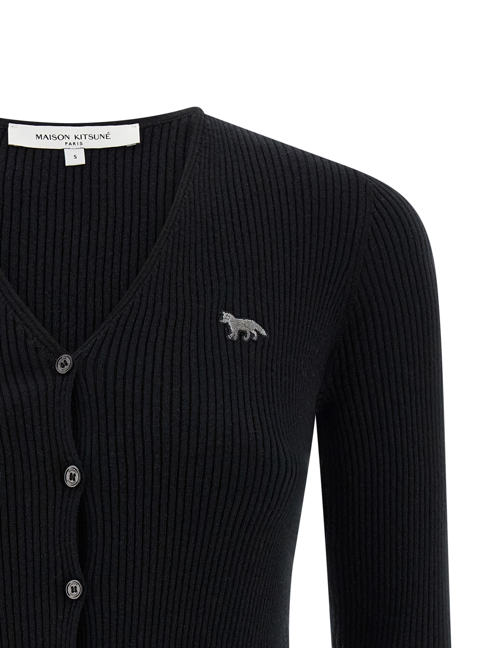 Lightweight cardigan in extrafine merino wool and ribbed cotton, ‘Baby Fox’ patch and front button closure, V-neck, long sleeves.