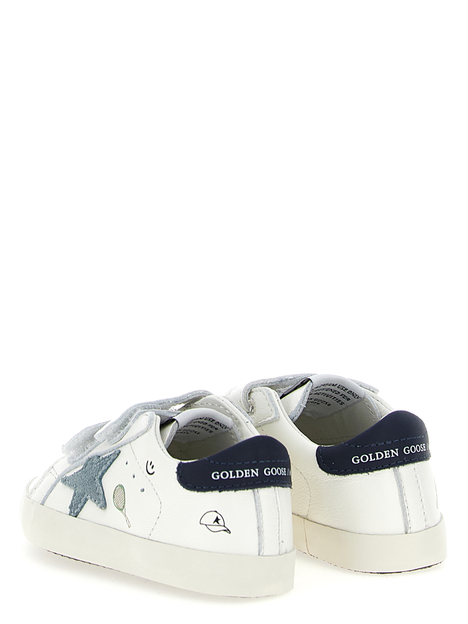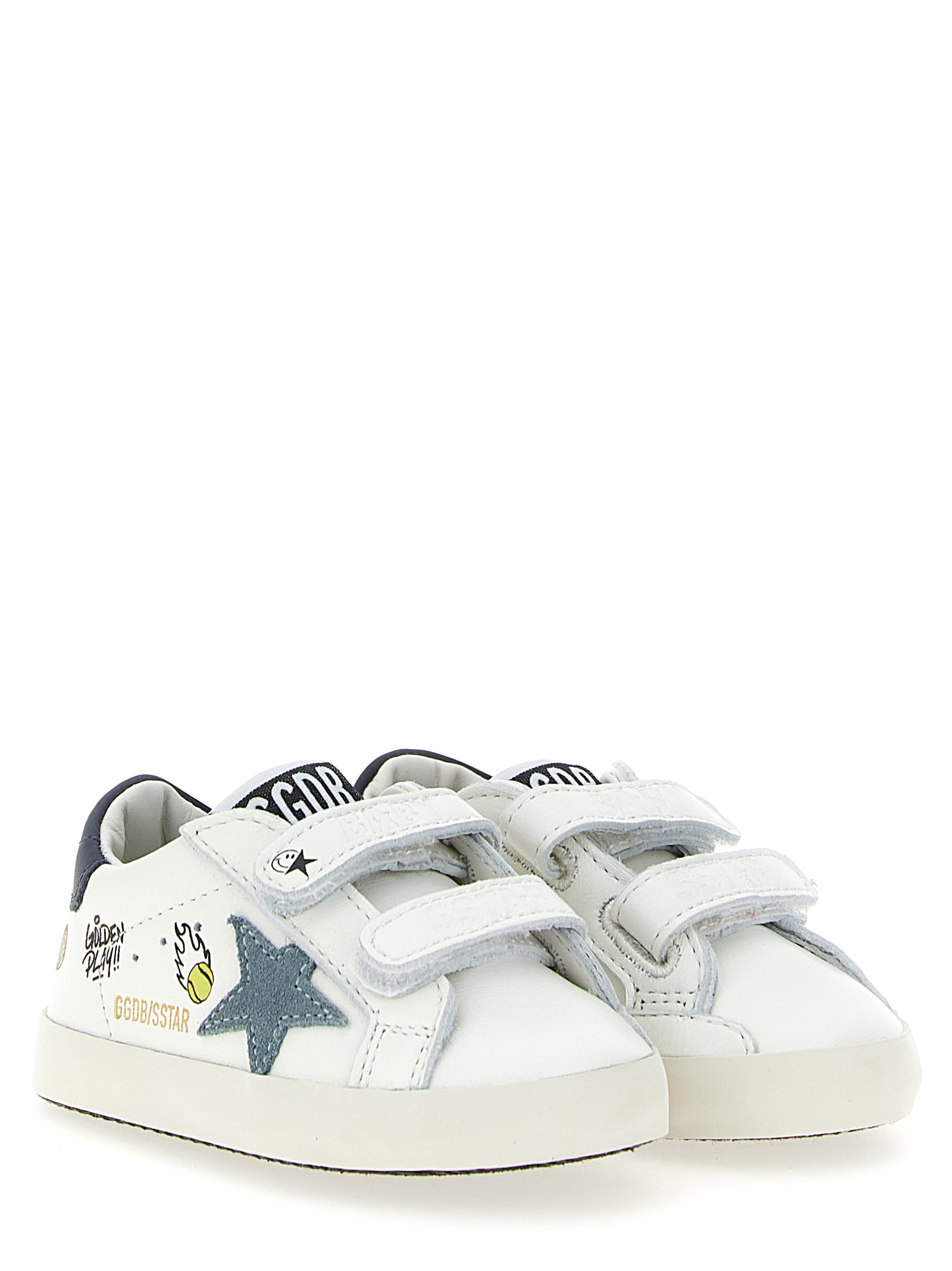 ‘Baby School’ designed nappa leather sneakers, suede side star, contrast heel, Velcro band closure, rubber sole.