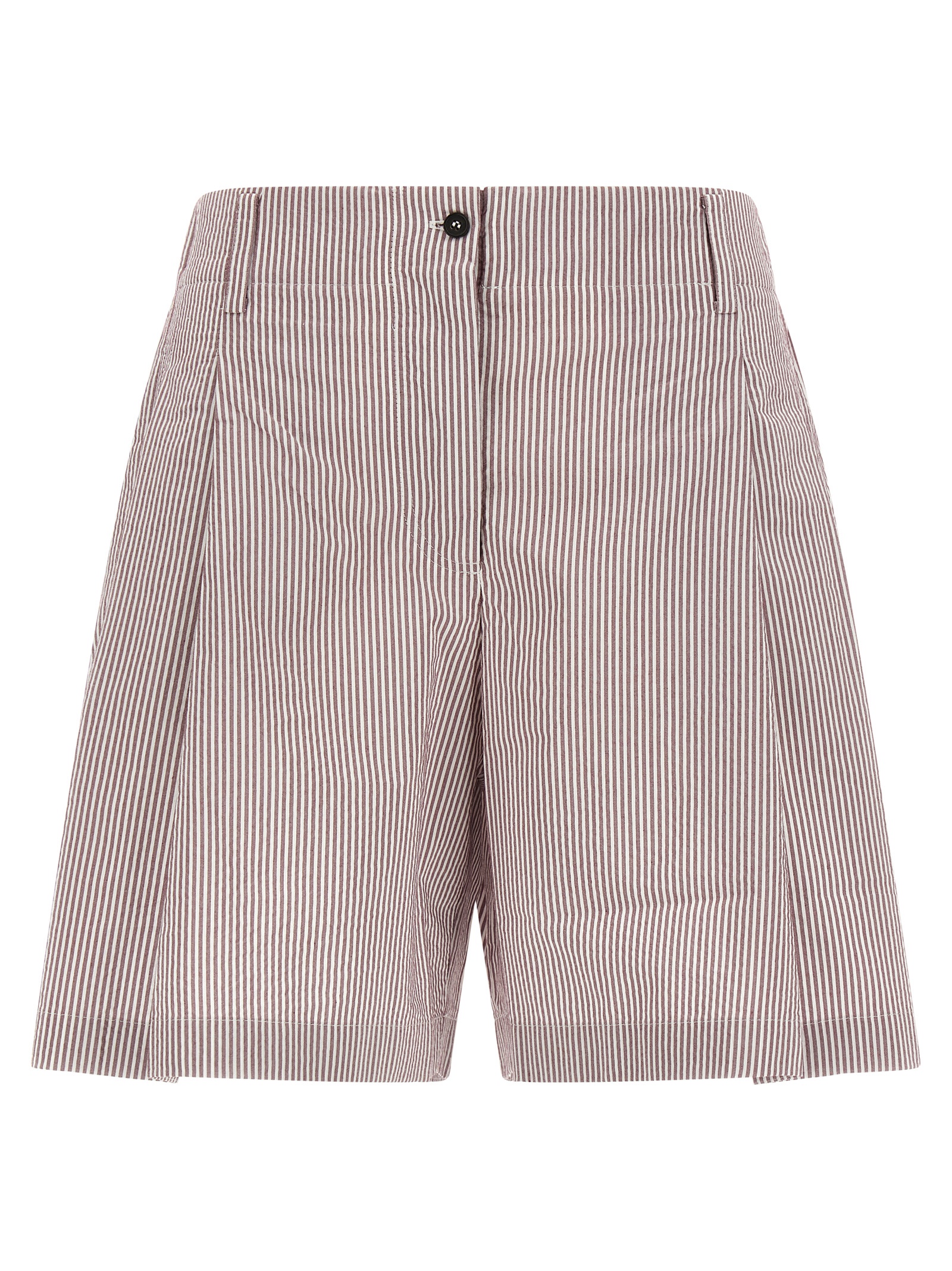 ‘Baggy’ striped cotton blend shorts, double pince, zip and front button closure, pockets, wide leg.