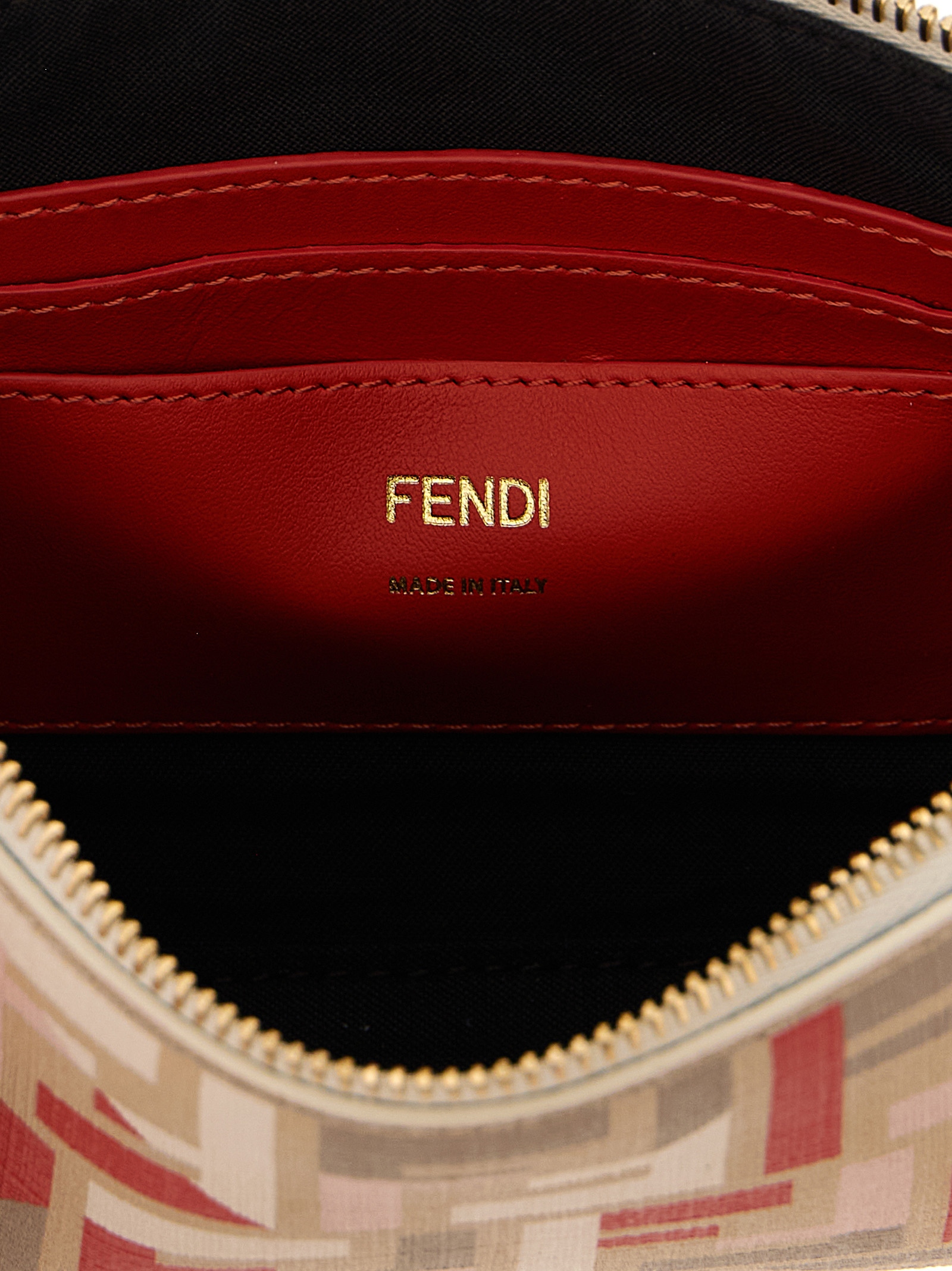 Baguette’ fabric pouch with iconic FF pattern, top zip closure, removable chain handle, adjustable and removable leather shoulder strap.