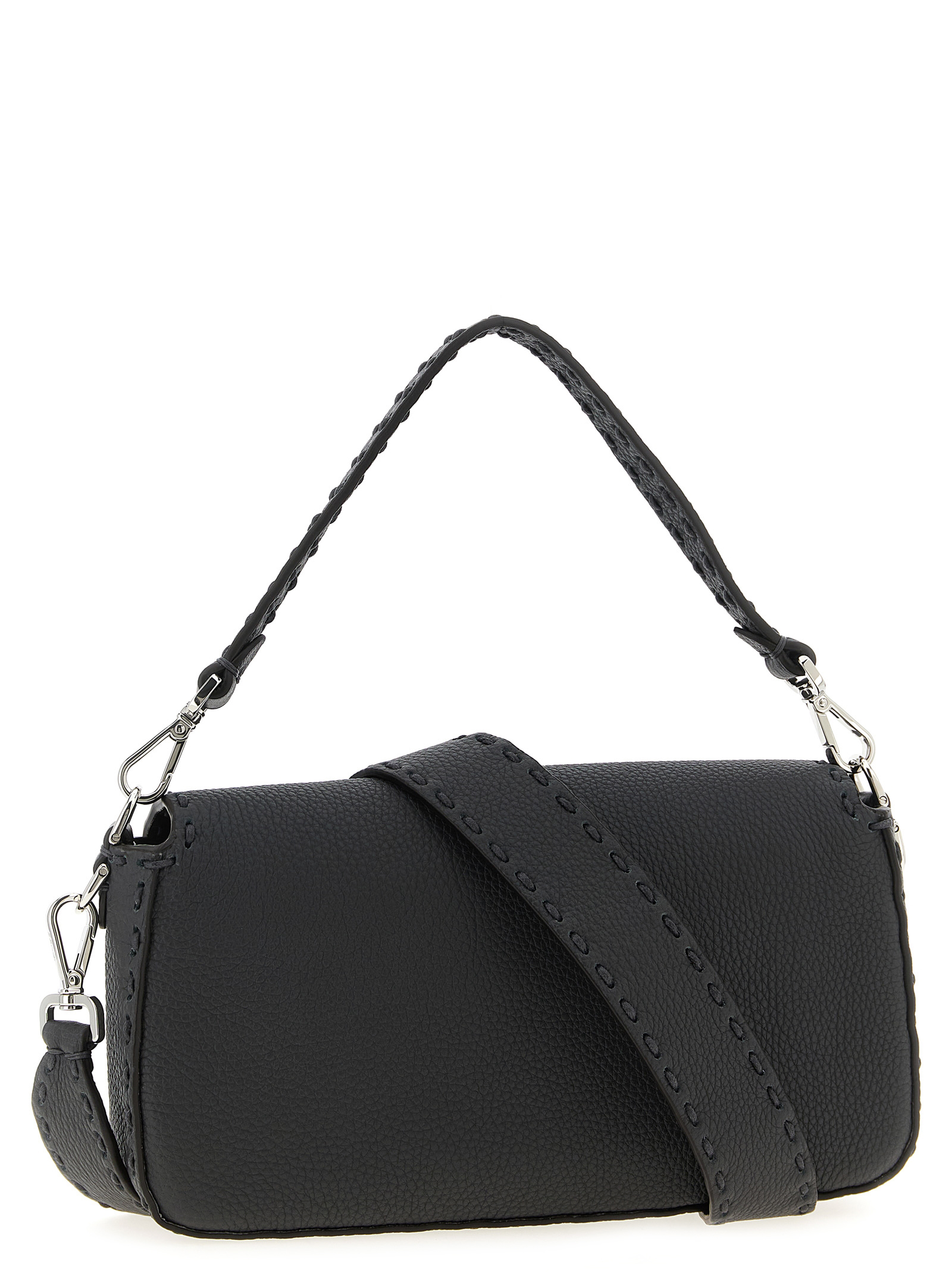 ‘Baguette’ shoulder bag in Roman leather with 612 handmade macro stitching, magnetic flap closure with front metal logo, removable short handle, removable shoulder strap.