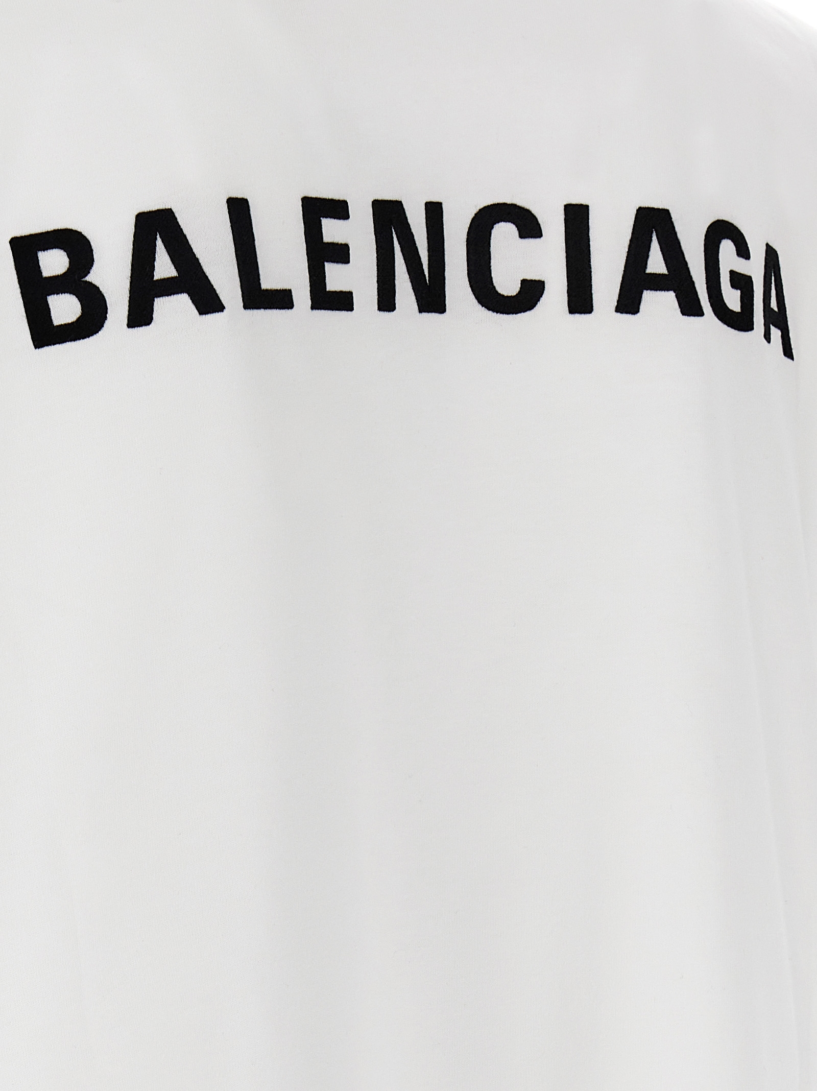 Vintage jersey T-shirt, embroidered ‘Balenciaga Back’ front and back, crop model, crew neck, short sleeves with dropped shoulders.