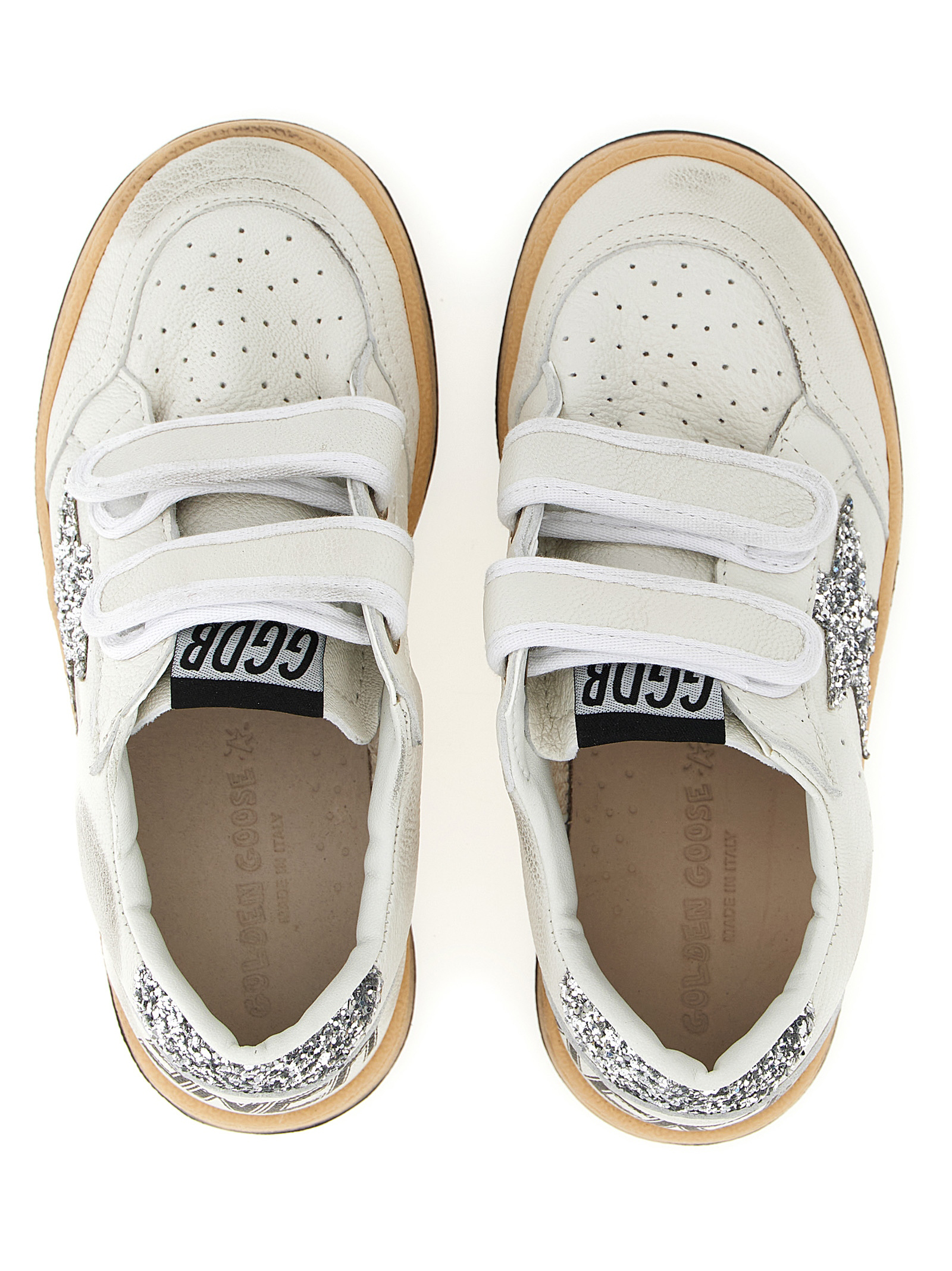 ‘Ball Star’ leather sneakers with used-effect details, side star and glitter heel, Velcro rip closure, rubber sole with vintage treatment.