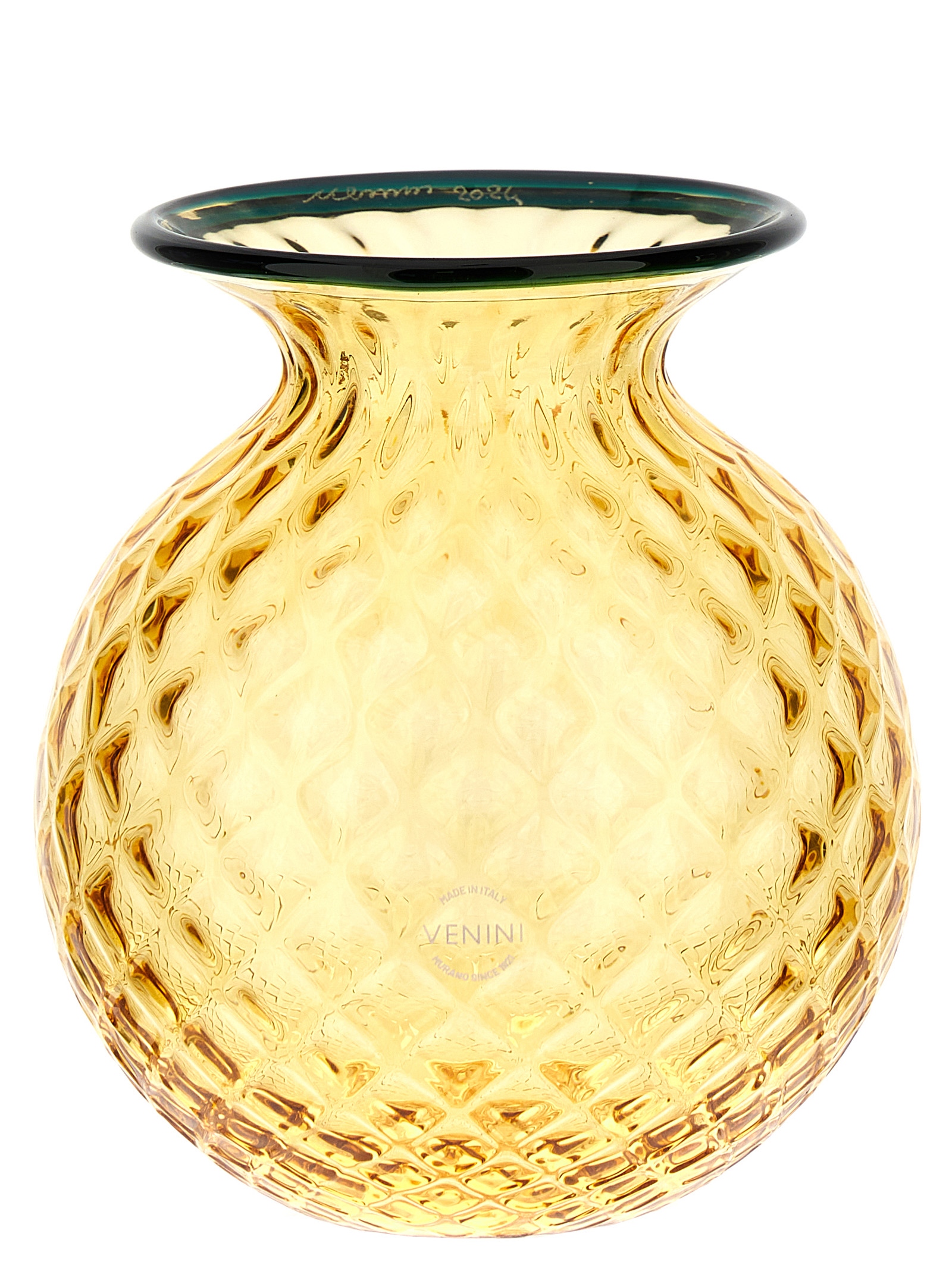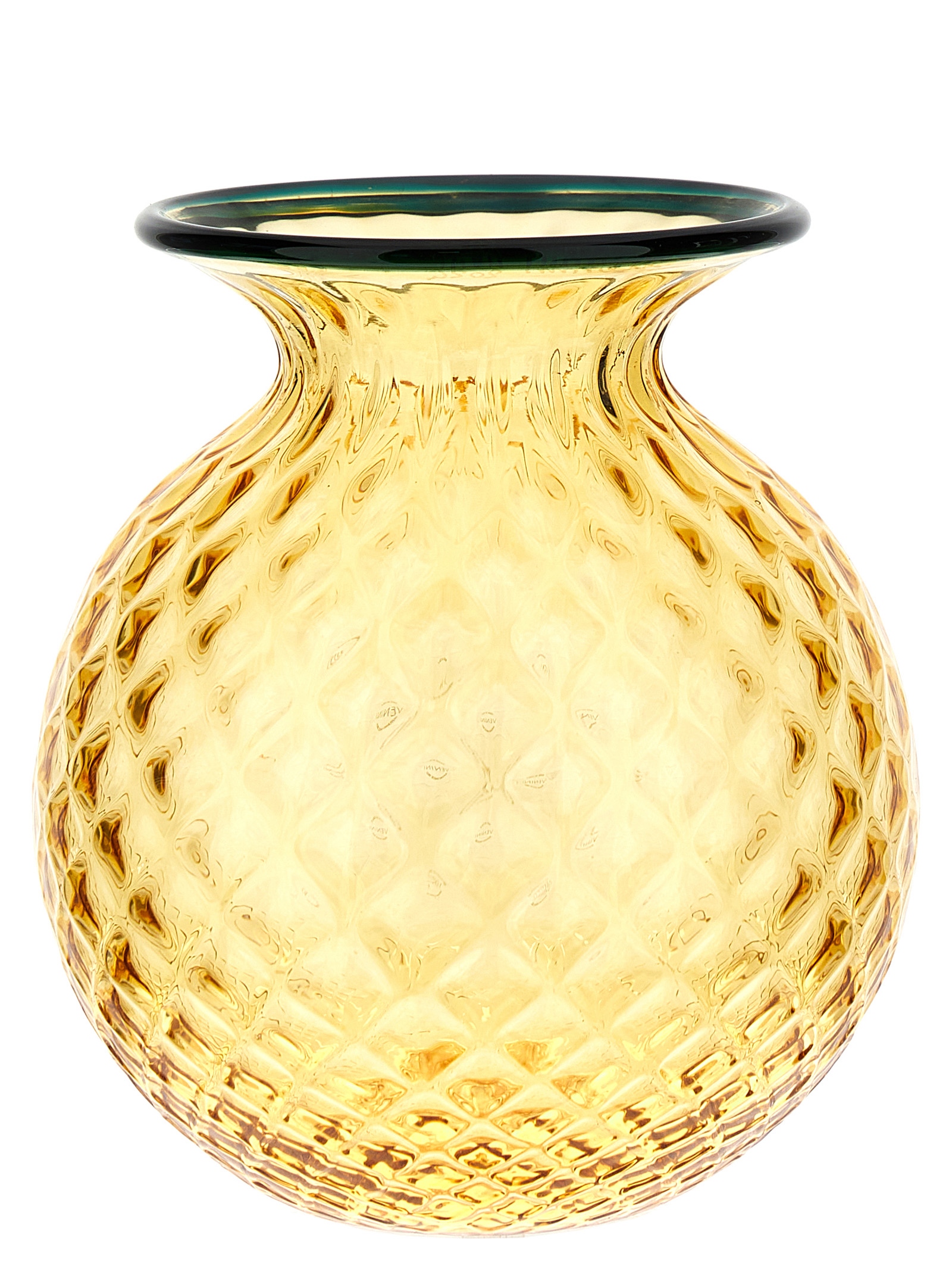 The Balloton collection is expanded and enriched with a version able to accommodate larger floral compositions. The Balloton Fiori are made through a unique artisanal process that recreates the matelassรฉ effect using glass. These vases are handmade, blown and finished with skill, while a colored thread is applied hot, embracing the decorative motif and leaving room for wonder.