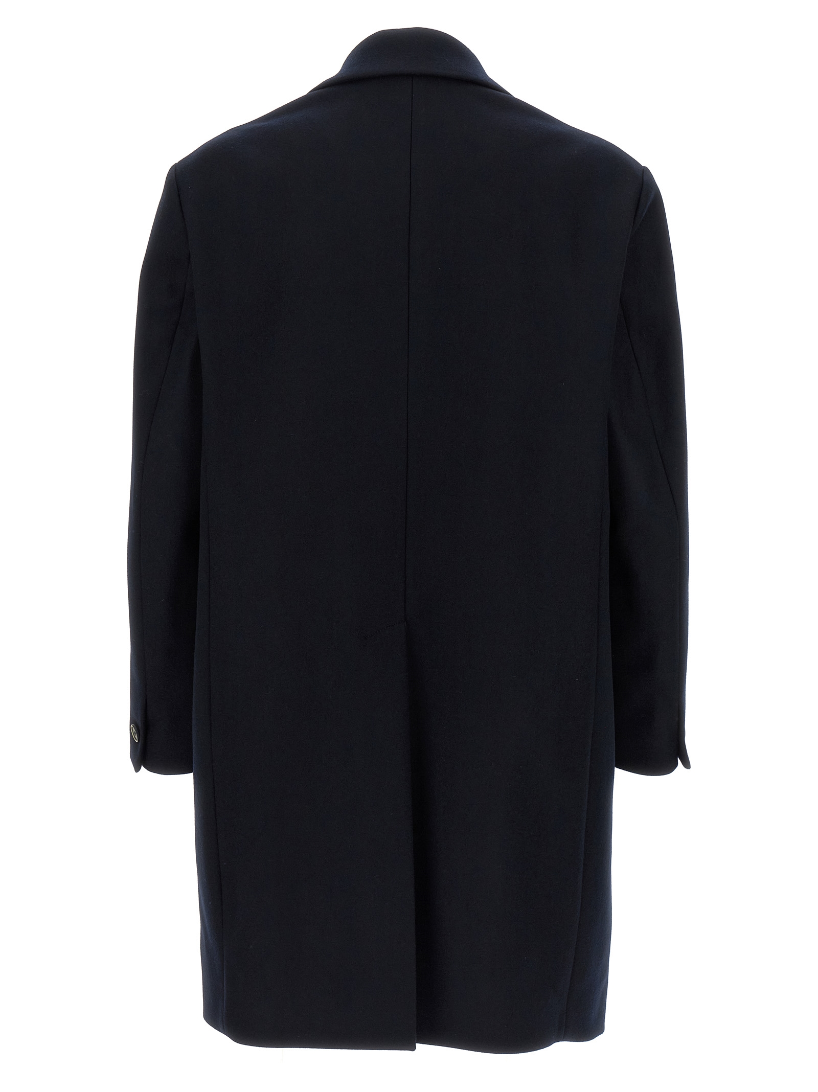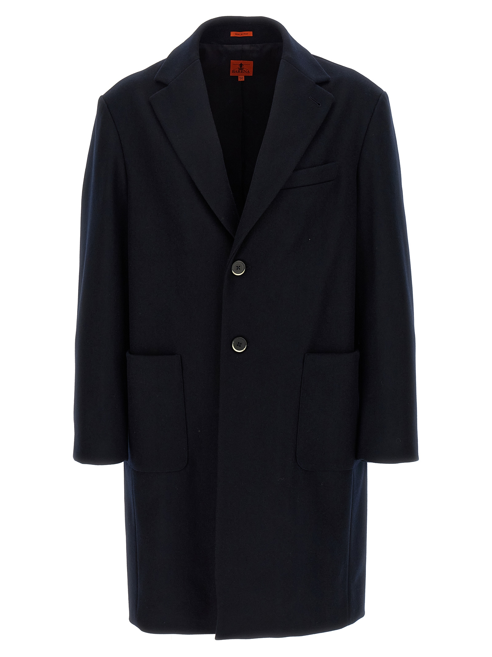 Baron’ wool coat with V-neck with peak lapels, single-breasted button closure, long sleeves.