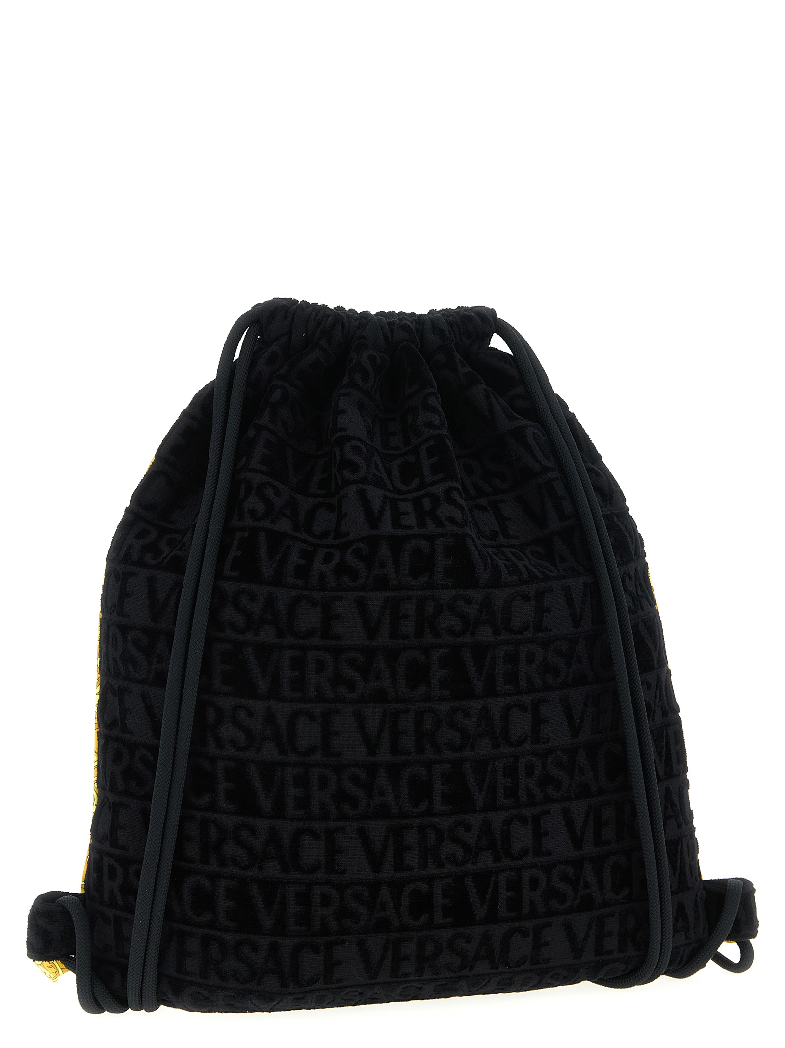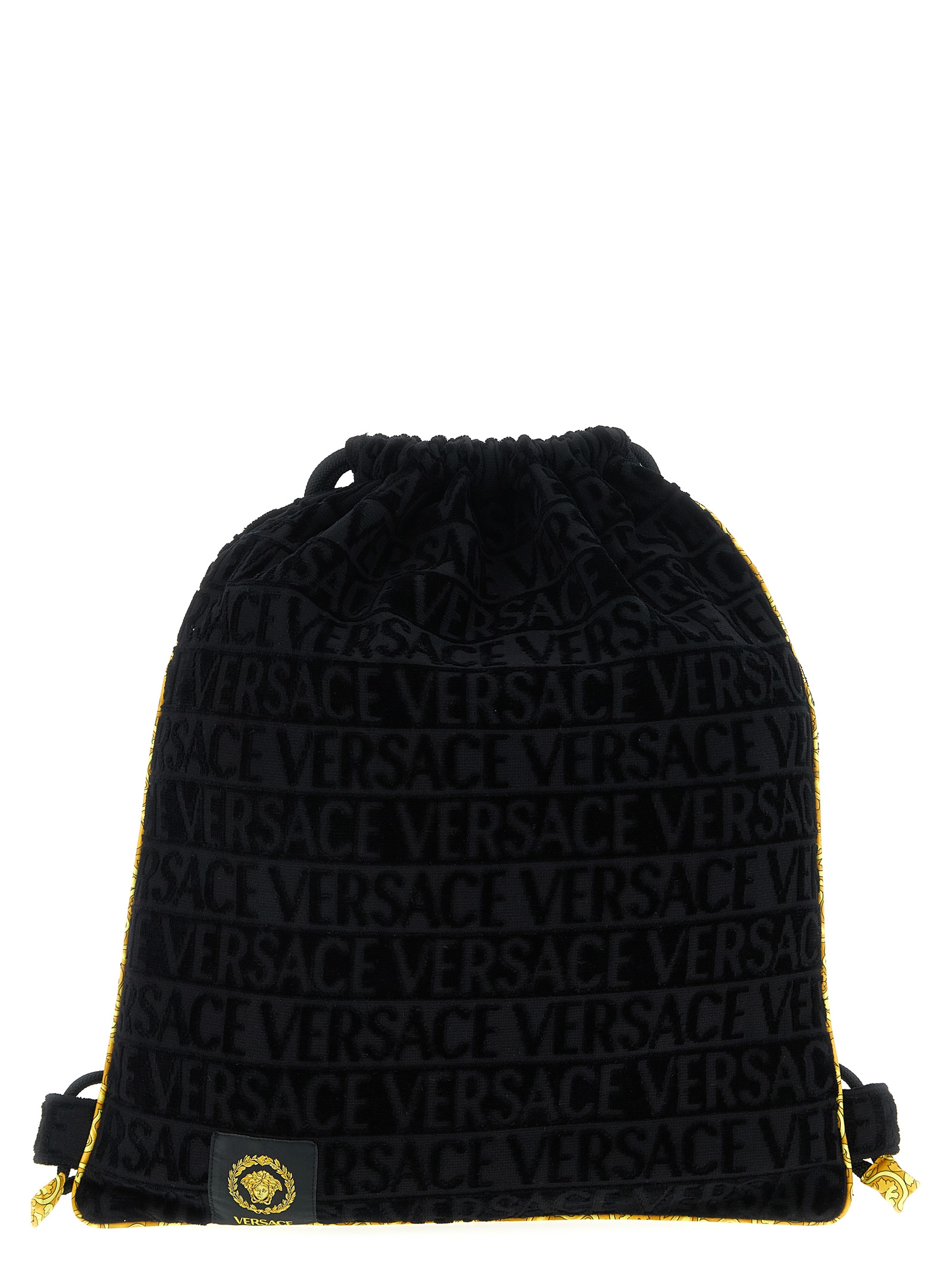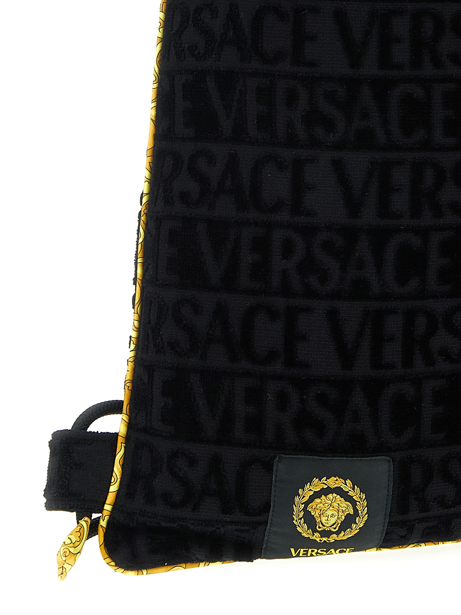 Baroque’ terry cloth gym bag with all-over tone-on-tone pattern Versace with ‘Barocco’ print trim, and sliding drawstring closure.