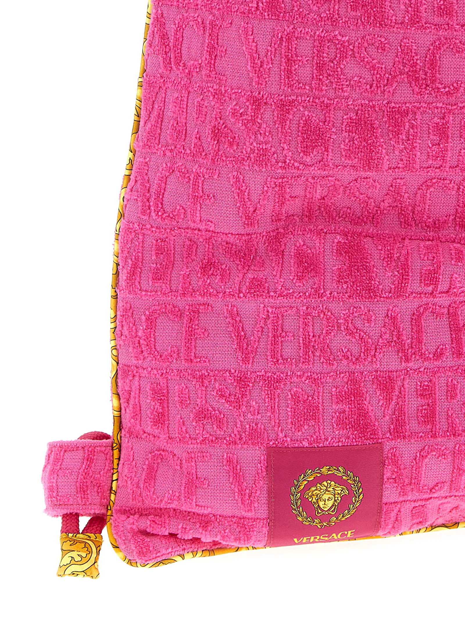 Baroque’ terry cloth gym bag with all-over tone-on-tone pattern Versace with ‘Barocco’ print trim, and sliding drawstring closure.