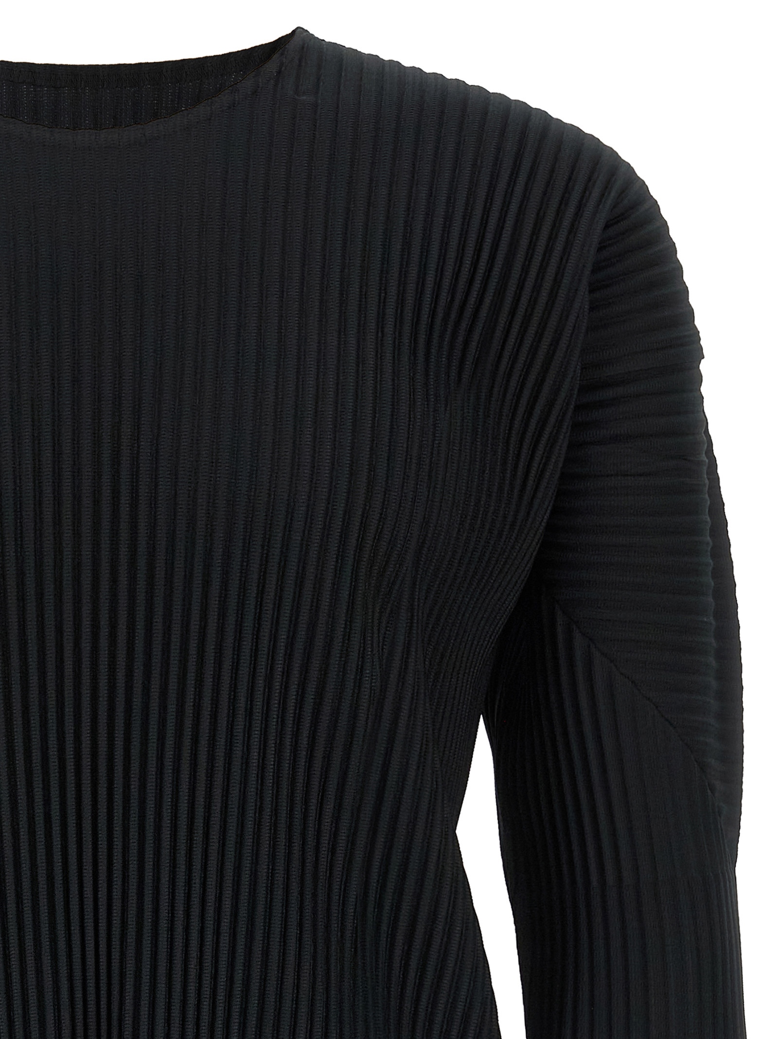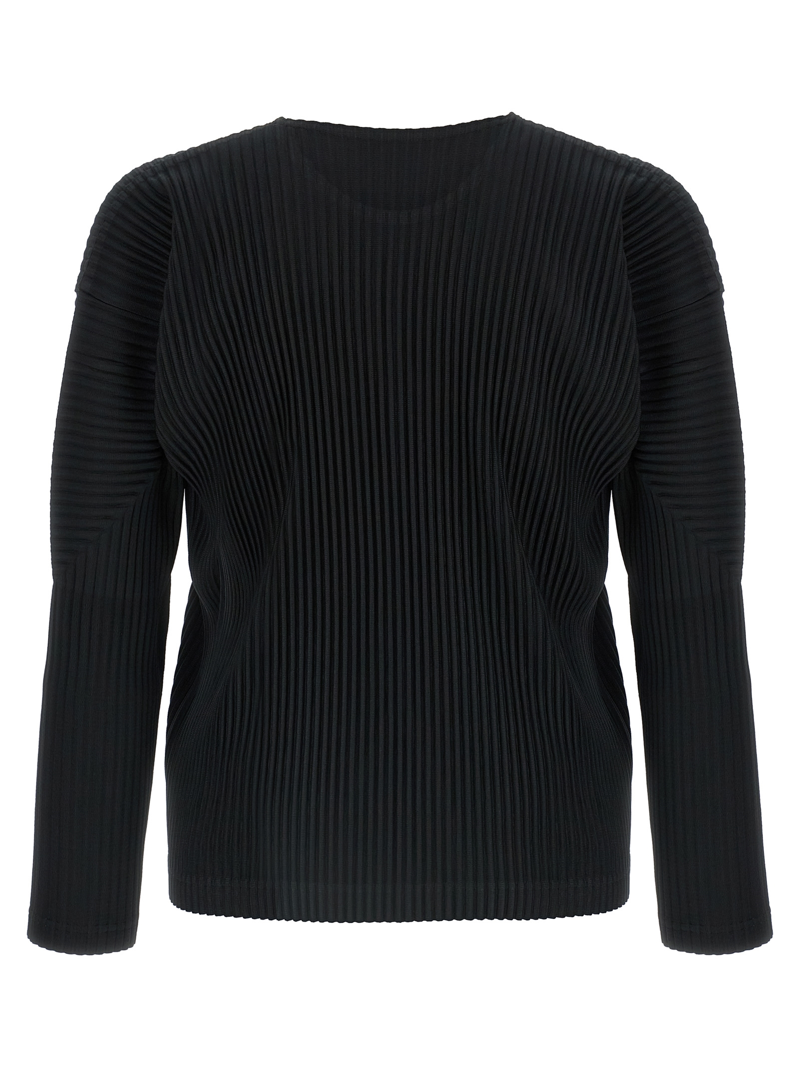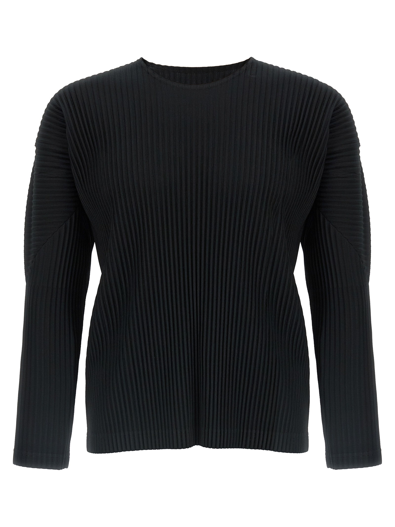 ‘Basics’ pleated T-shirt, with crew neck, long sleeves and dropped shoulders.