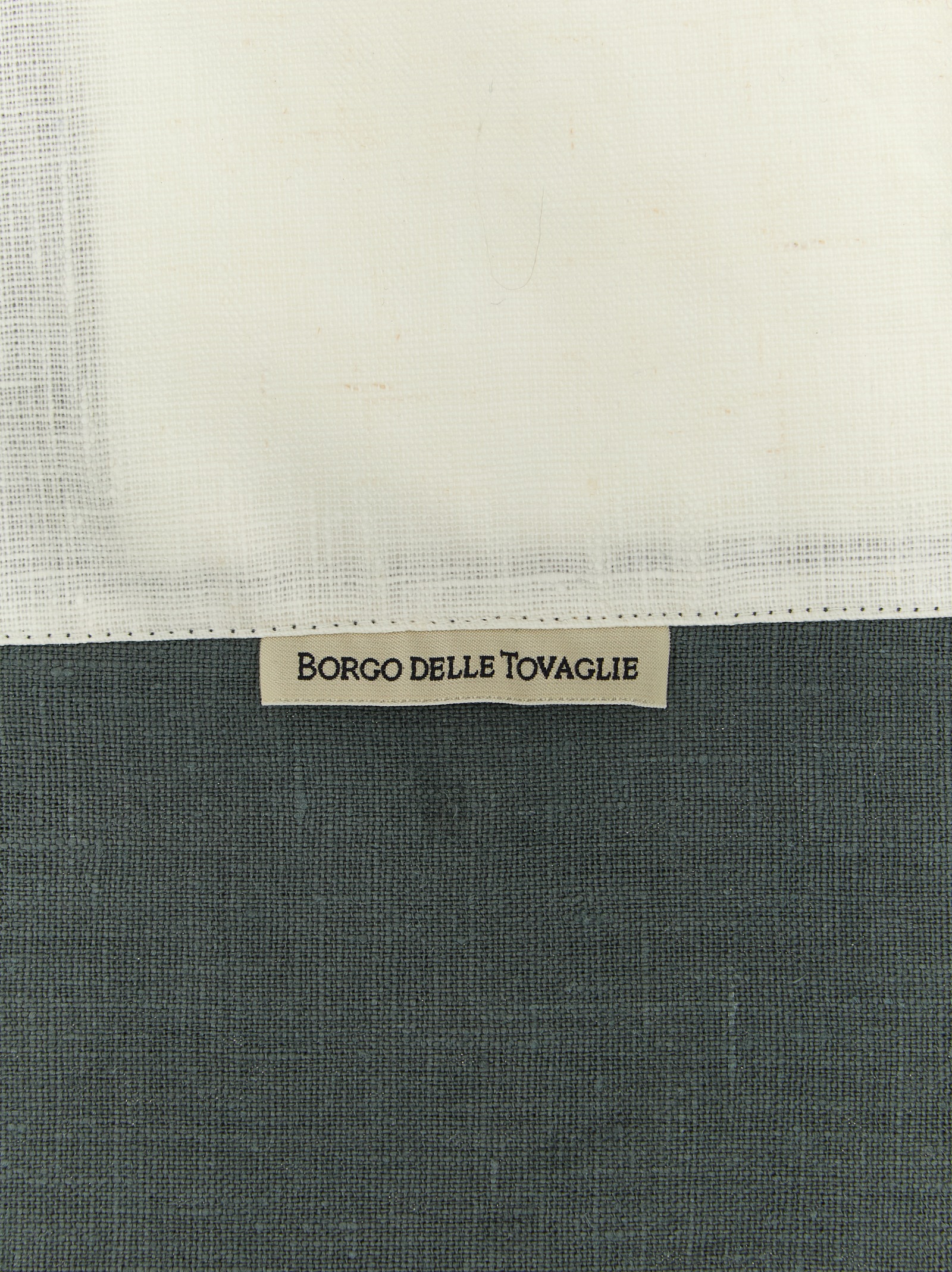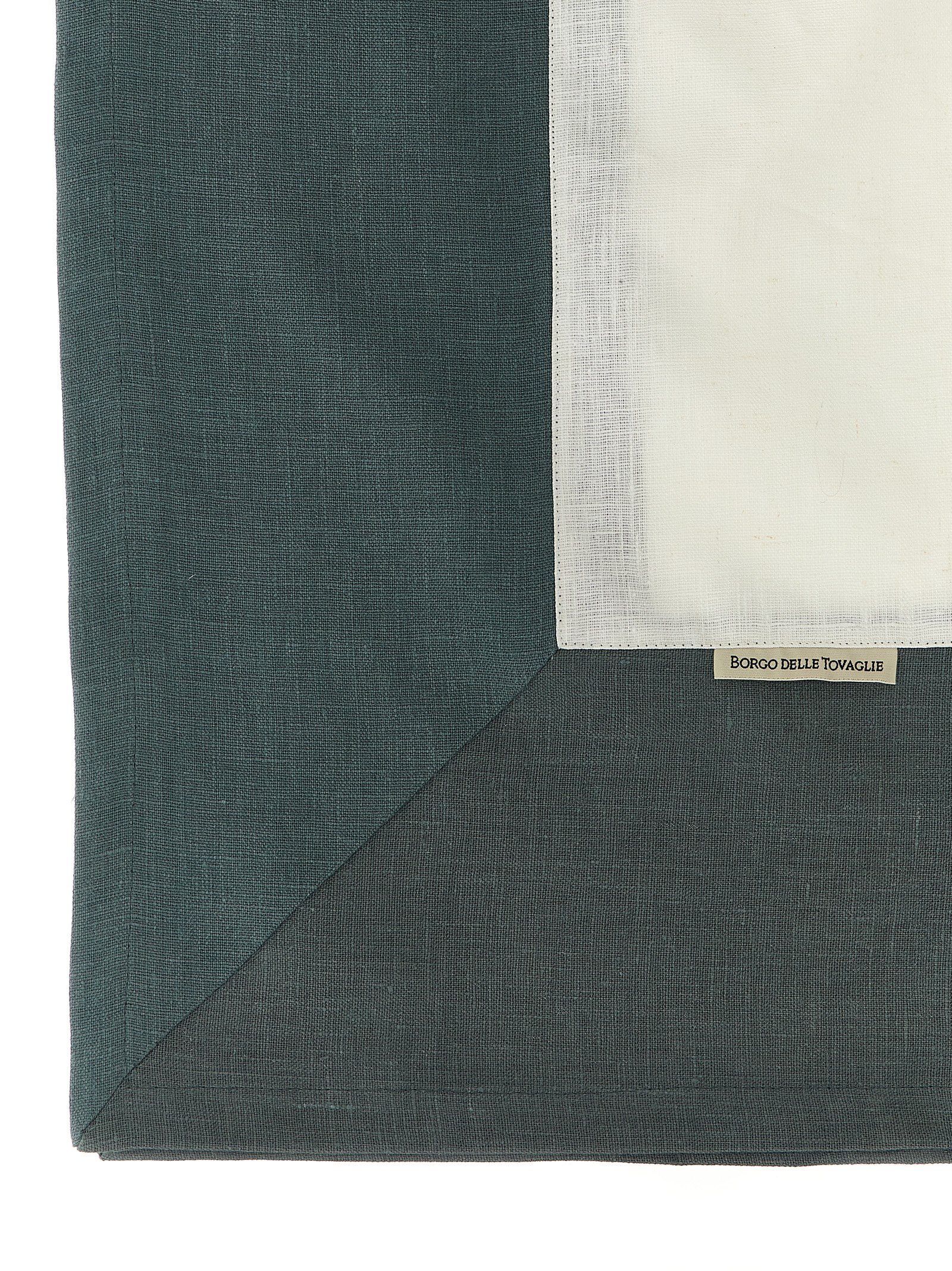 ‘Bauhaus’ tablecloth in stain-resistant linen with a contrasting high color edge.
