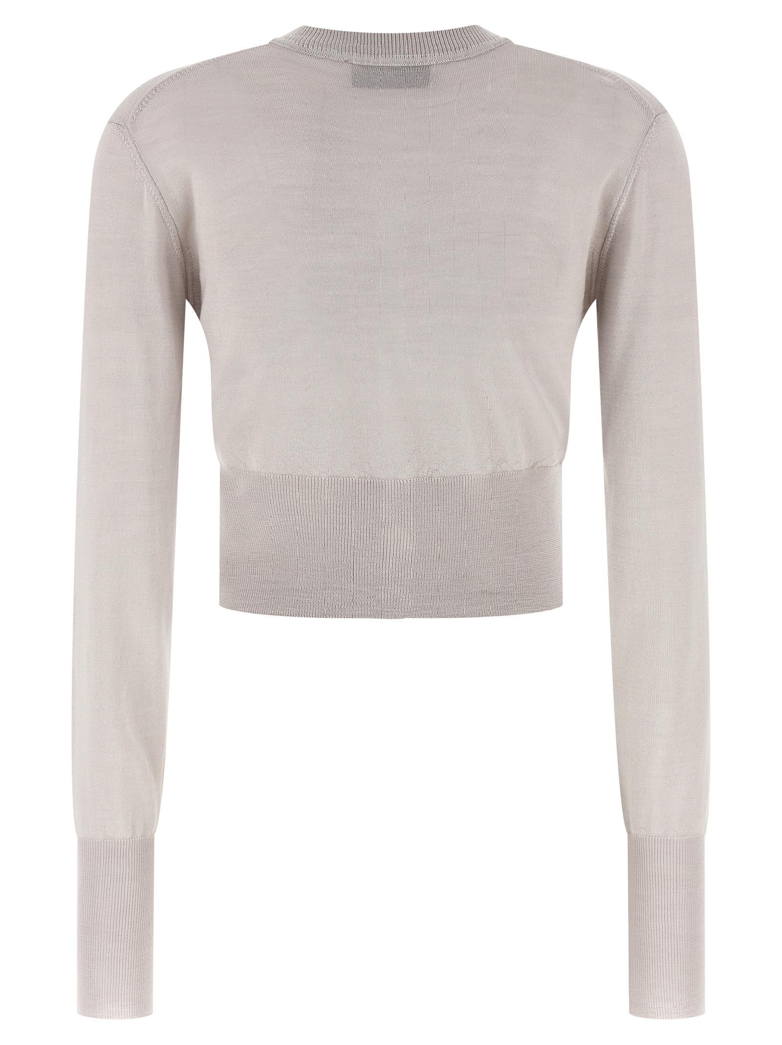 ‘Bea’ cropped wool and silk cardigan with Orb logo embroidery and front button closure, round neckline, long cuffed sleeves.