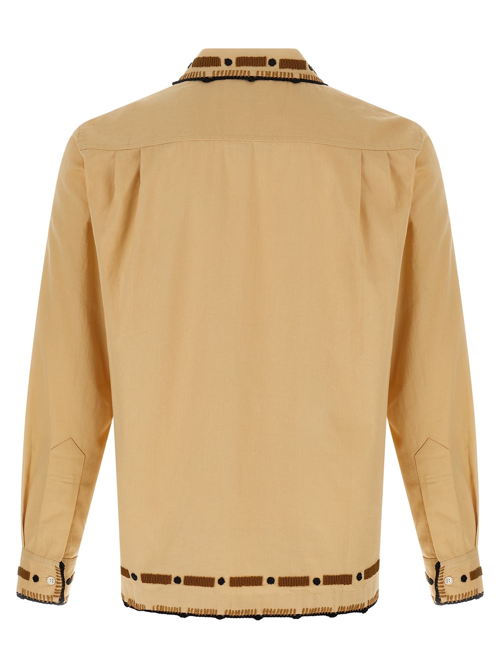 ‘Beaded Ryegrass’ cotton shirt with embroideries and handmade beads, front button closure, long cuffed sleeves.