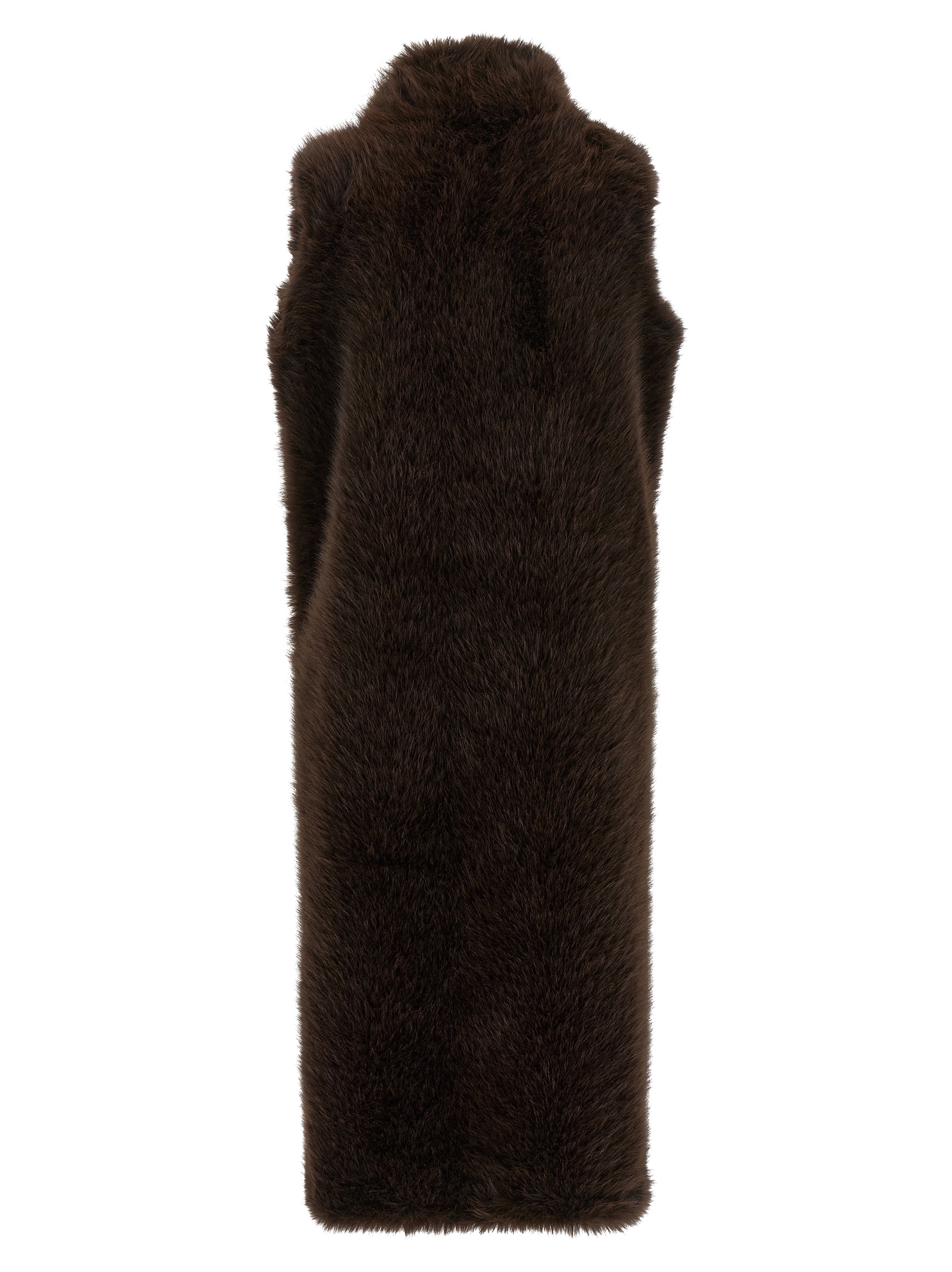‘Bear’ long faux fur vest with no closure and side pockets.