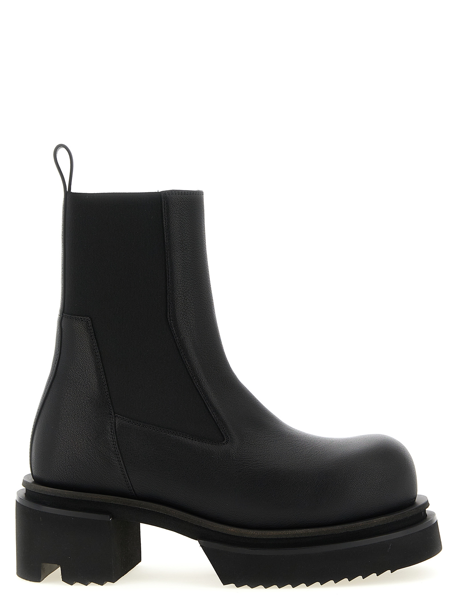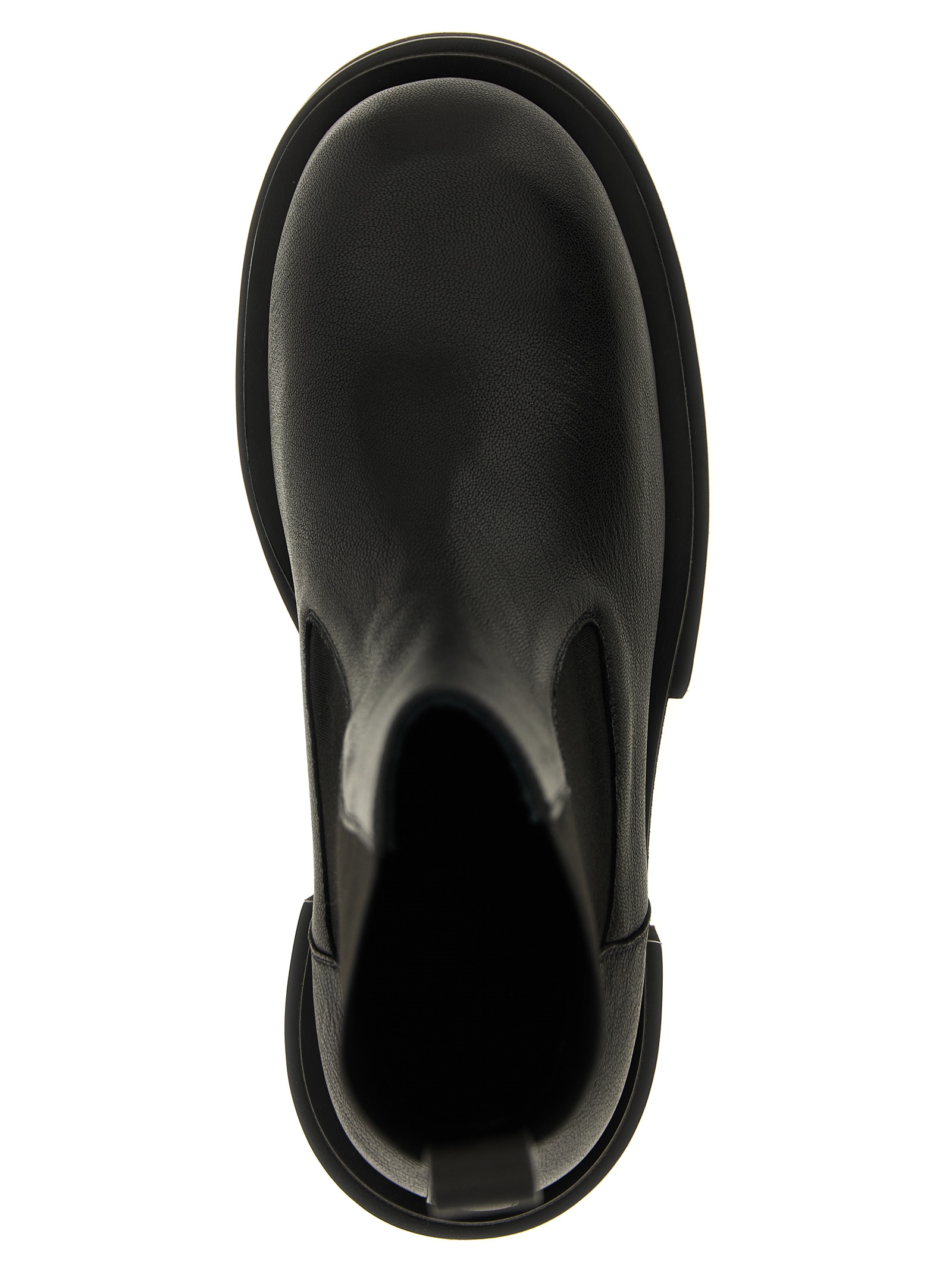 ‘Beatle Bogun’ hammered leather ankle boots with elastic ankle insert, rubber sole with oversize platform.