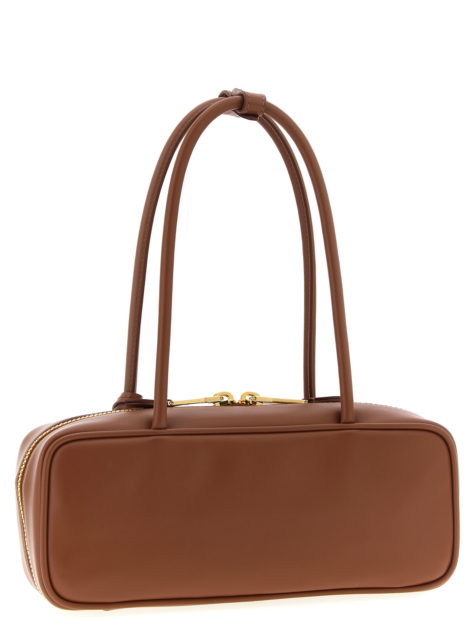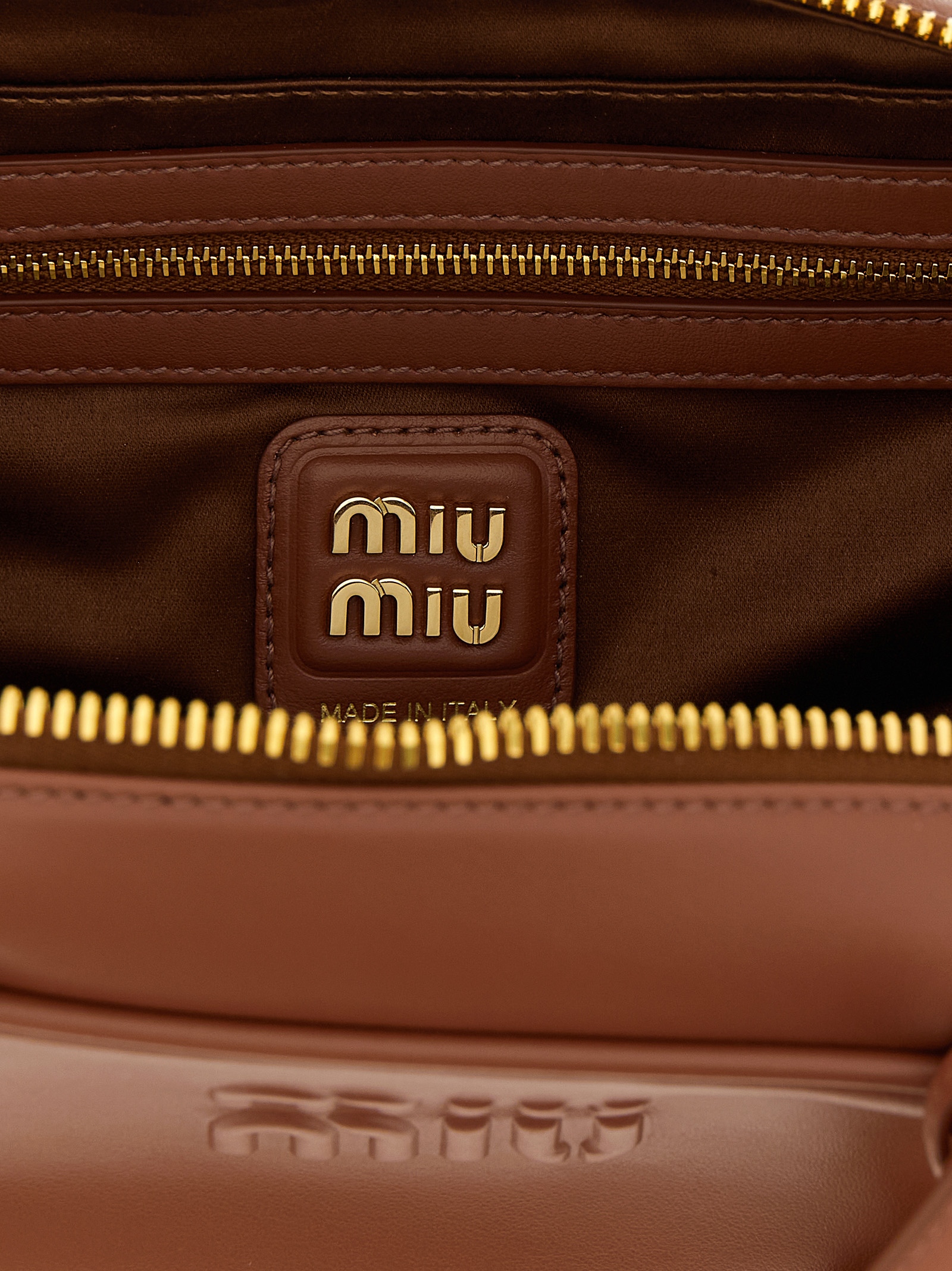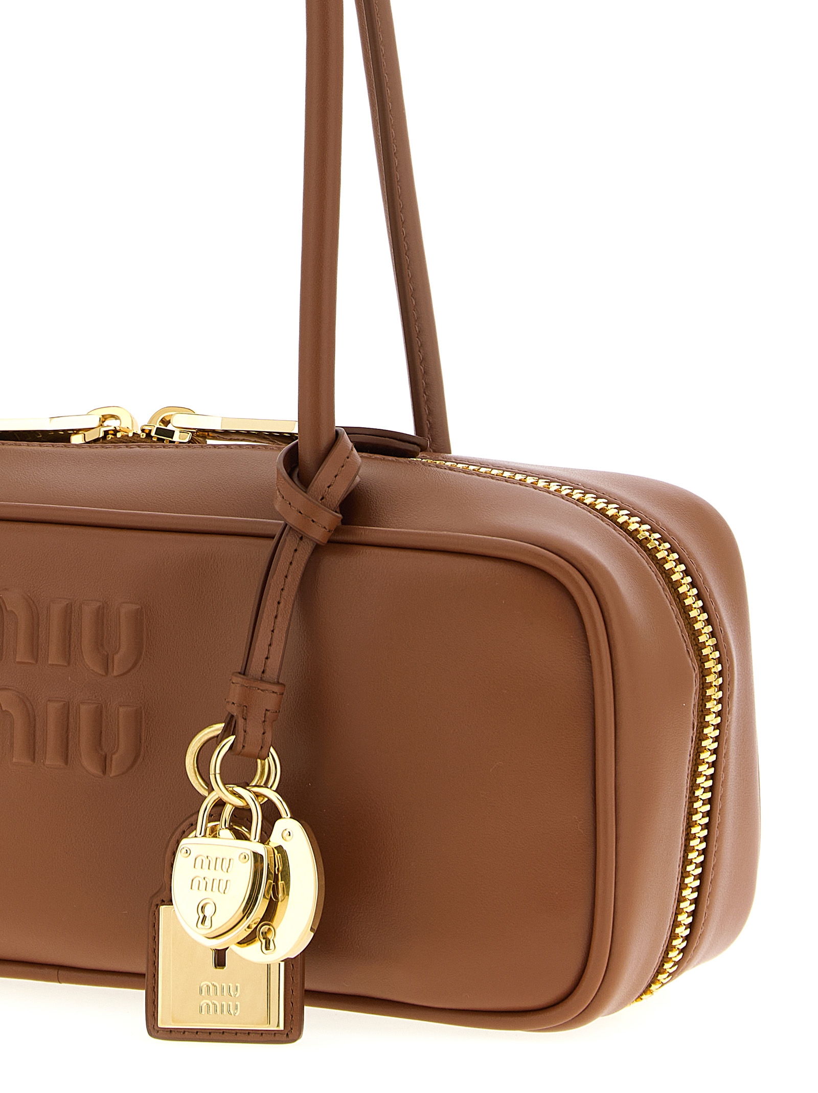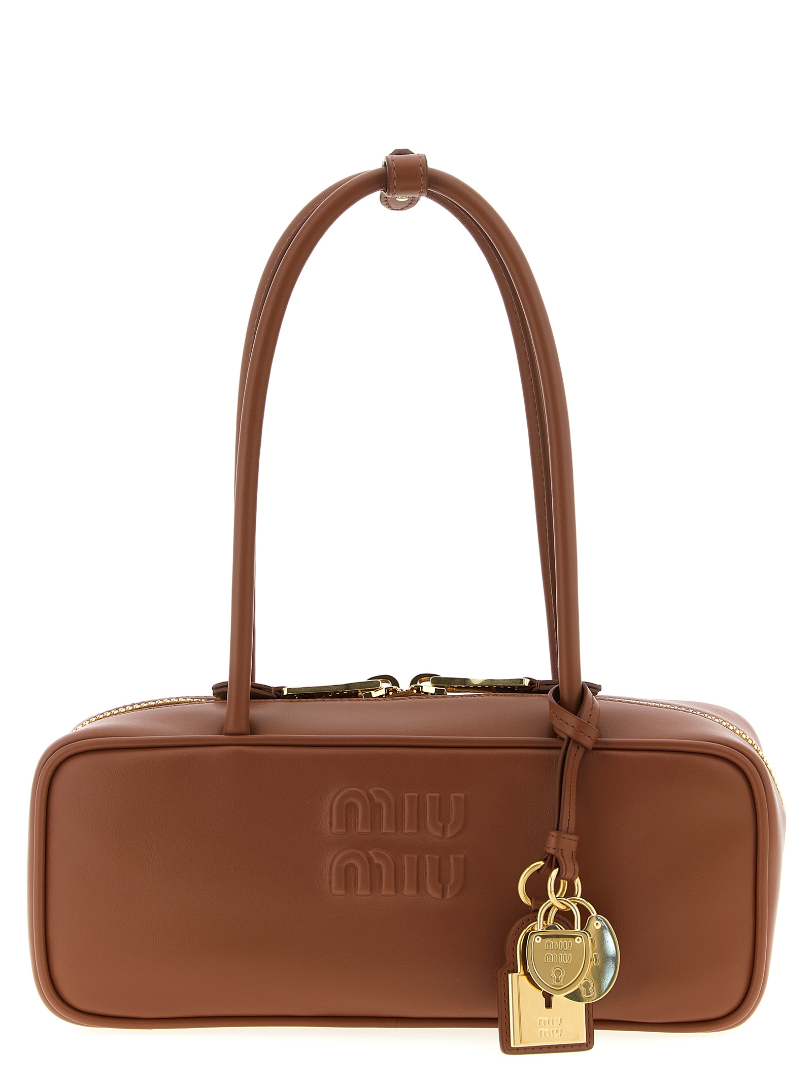 Small nappa ‘Beau’ handbag, front 3D lettering logo, top zip closure, double fixed handle, cotton satin lining, removable metal trick detail.