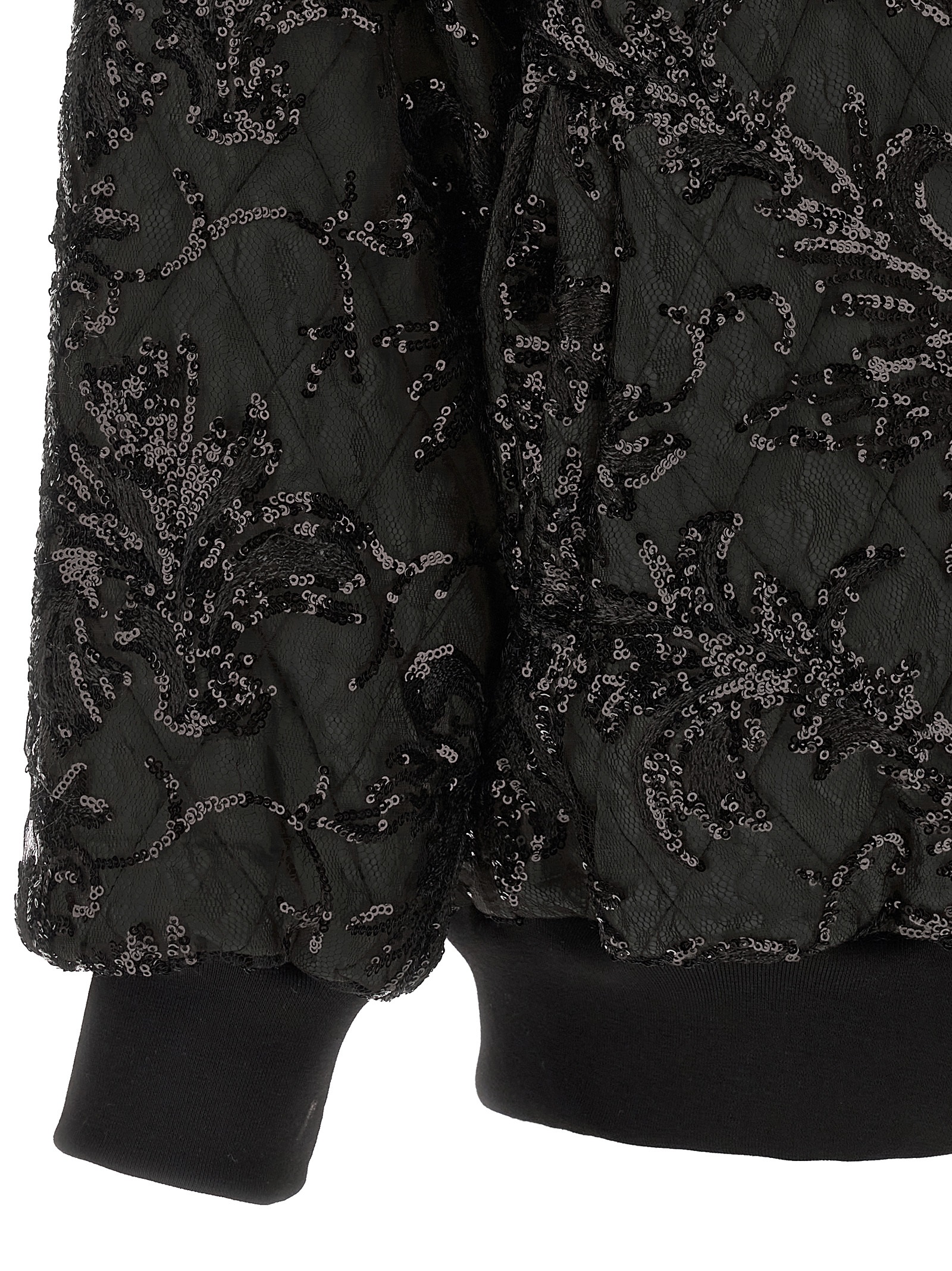 Belluno’ bomber jacket in quilted fabric covered in lace with all-over sequin appliqué, front zip closure, pockets, long cuffed sleeves.