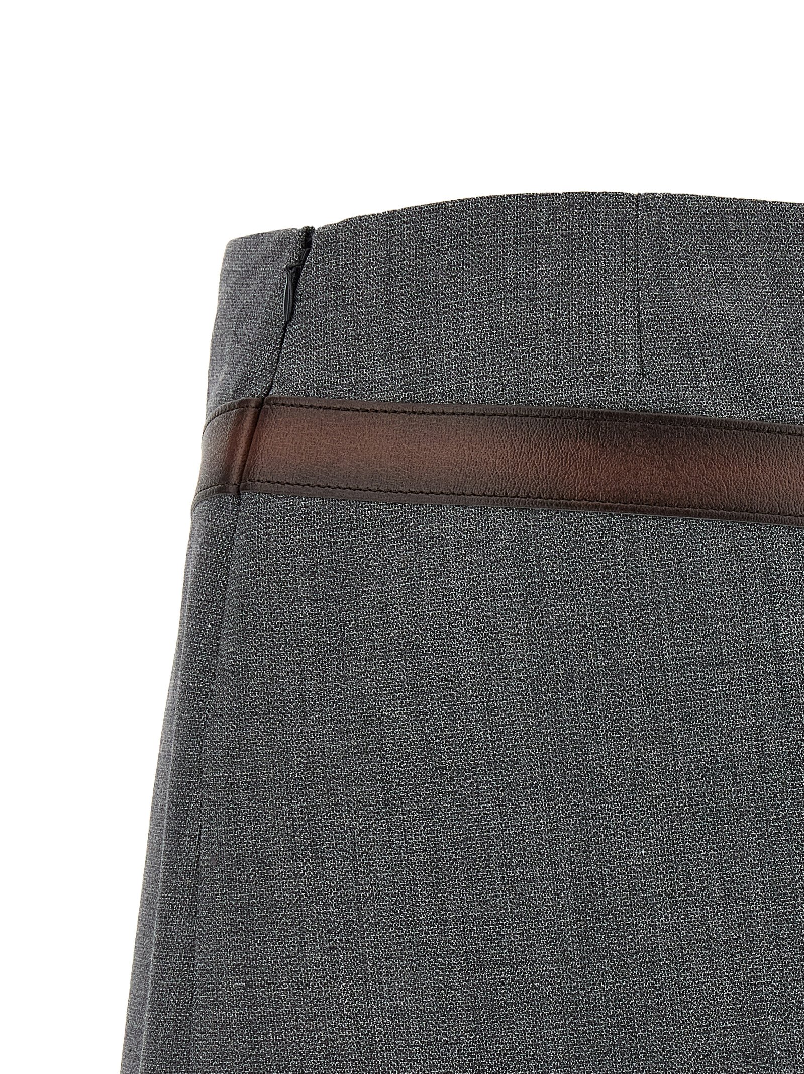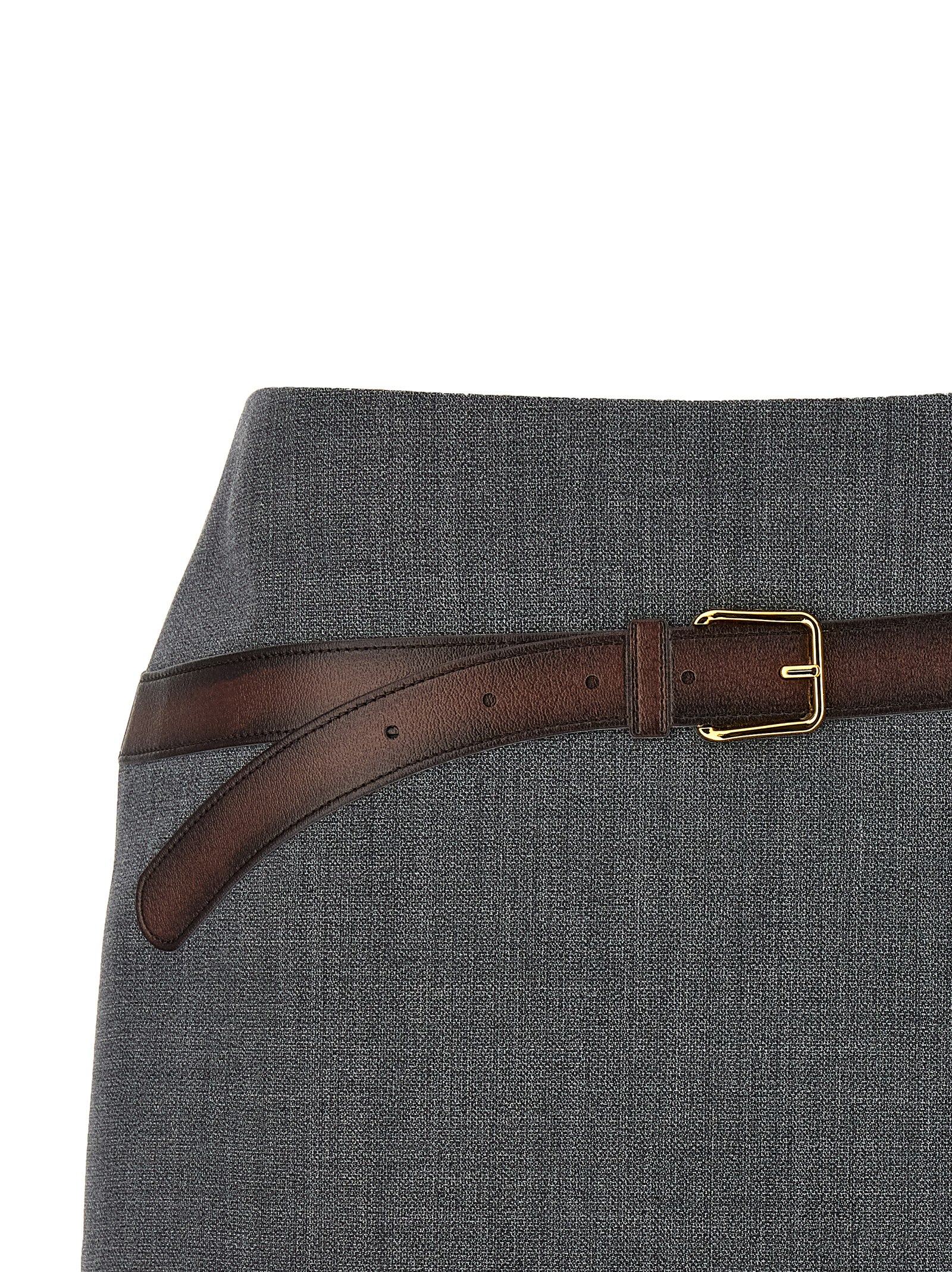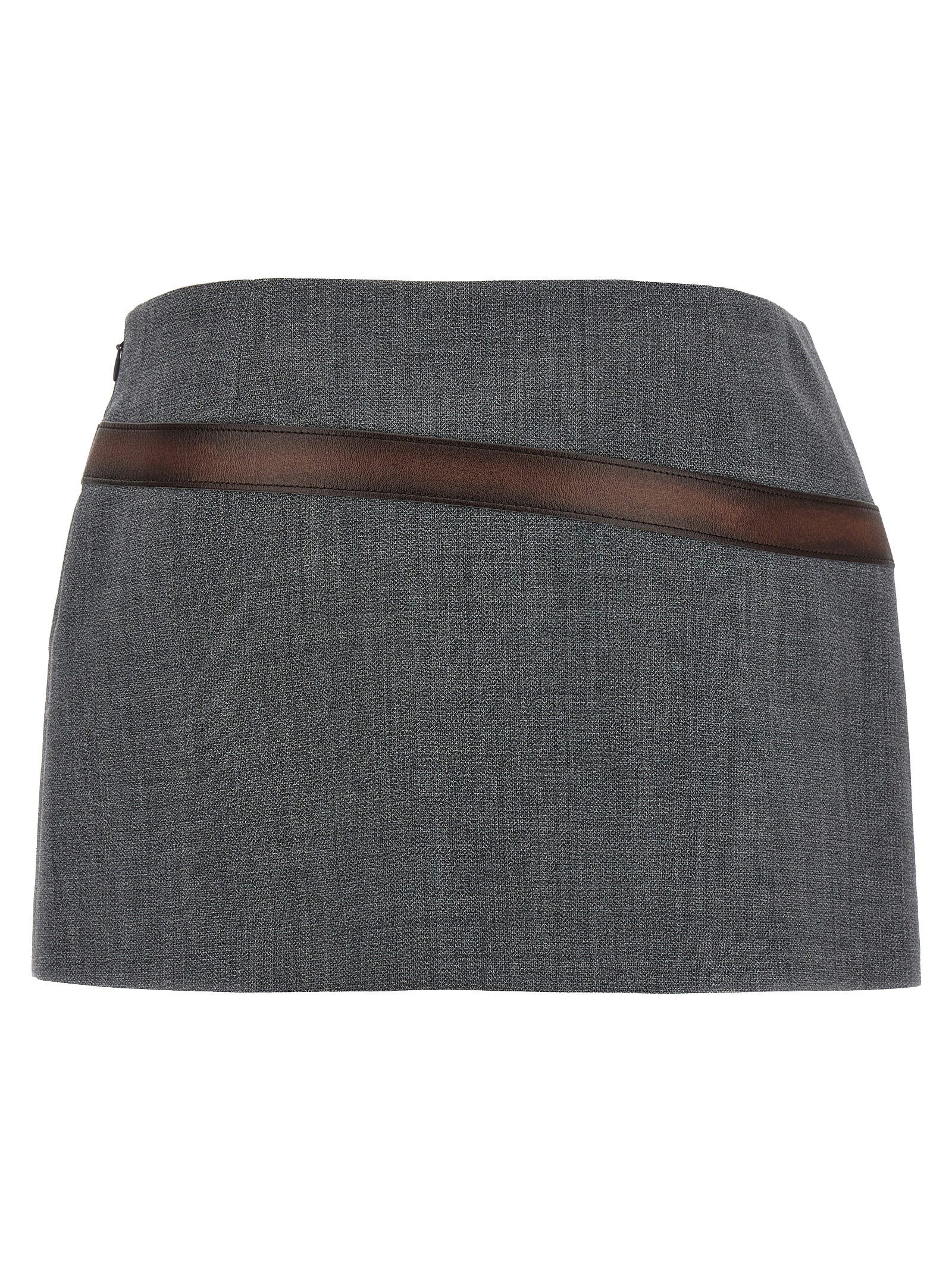 Technical wool mini skirt with 3D printed belt, lining, side zip closure.