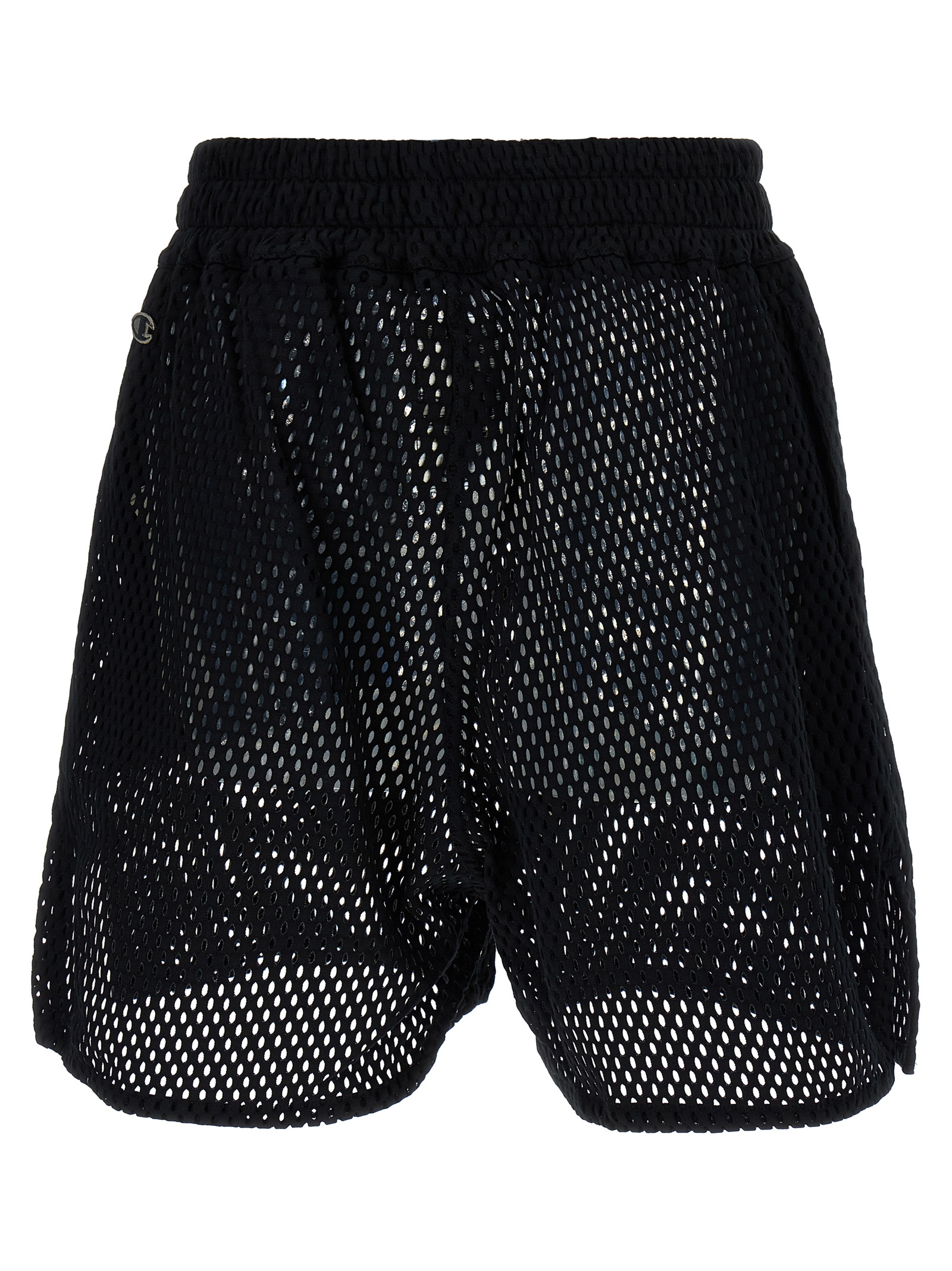 Champion x Rick Owens perforated cotton bermuda shorts with I don’t see effect, back logo patch, adjustable drawstring elastic at the waist, pockets, side slits on the leg bottom.