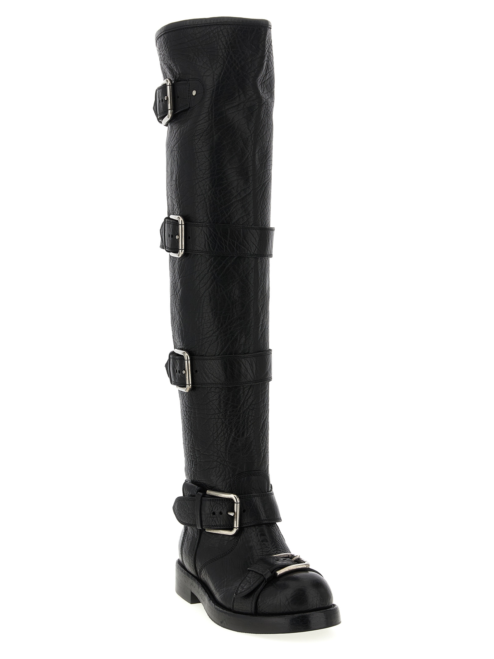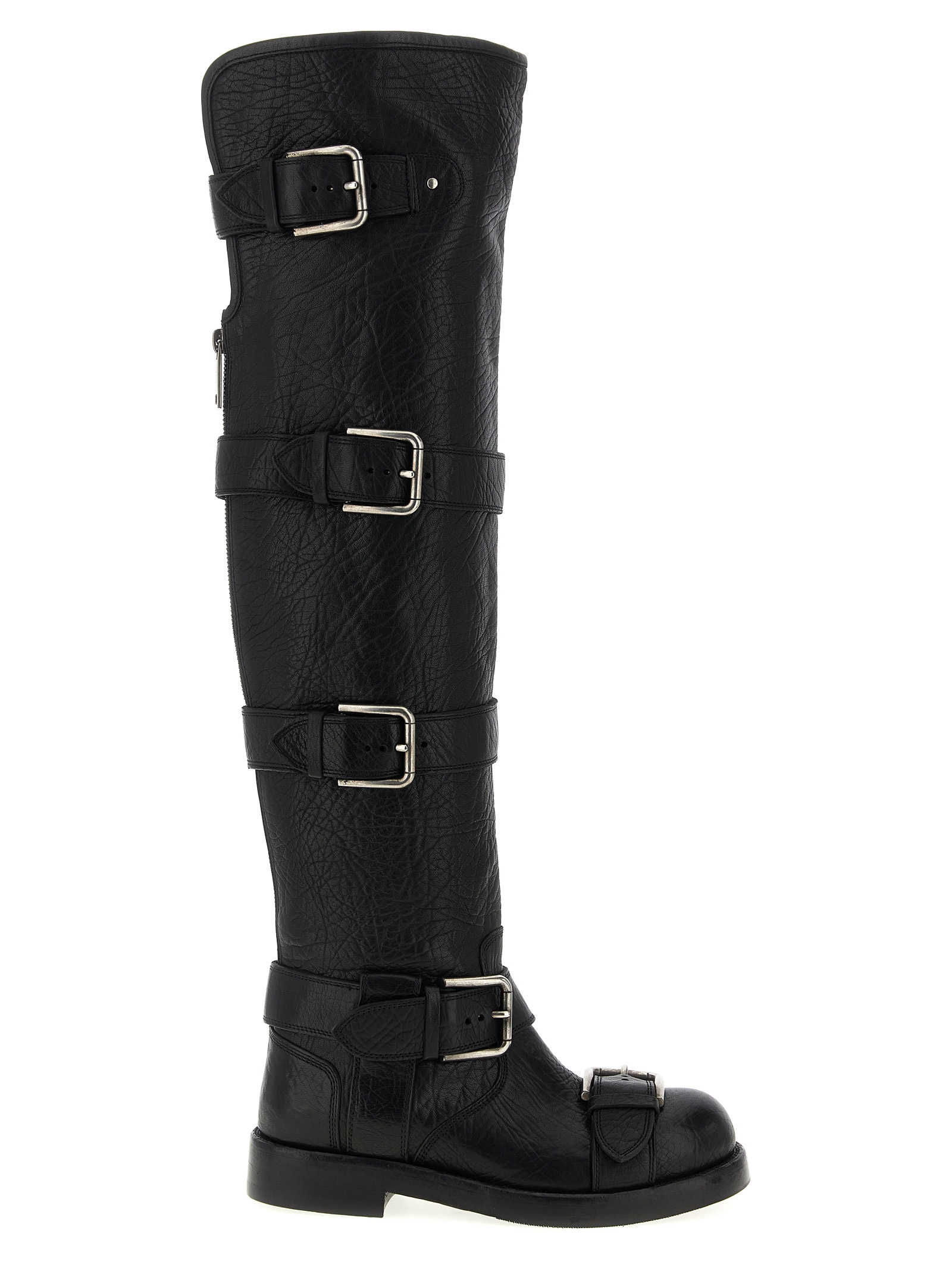 ‘Bernini’ hammered horse leather boots, biker-inspired model, rounded toe, adjustable straps, back zip closure, leather sole with non-slip VIBRAM® rubber island.