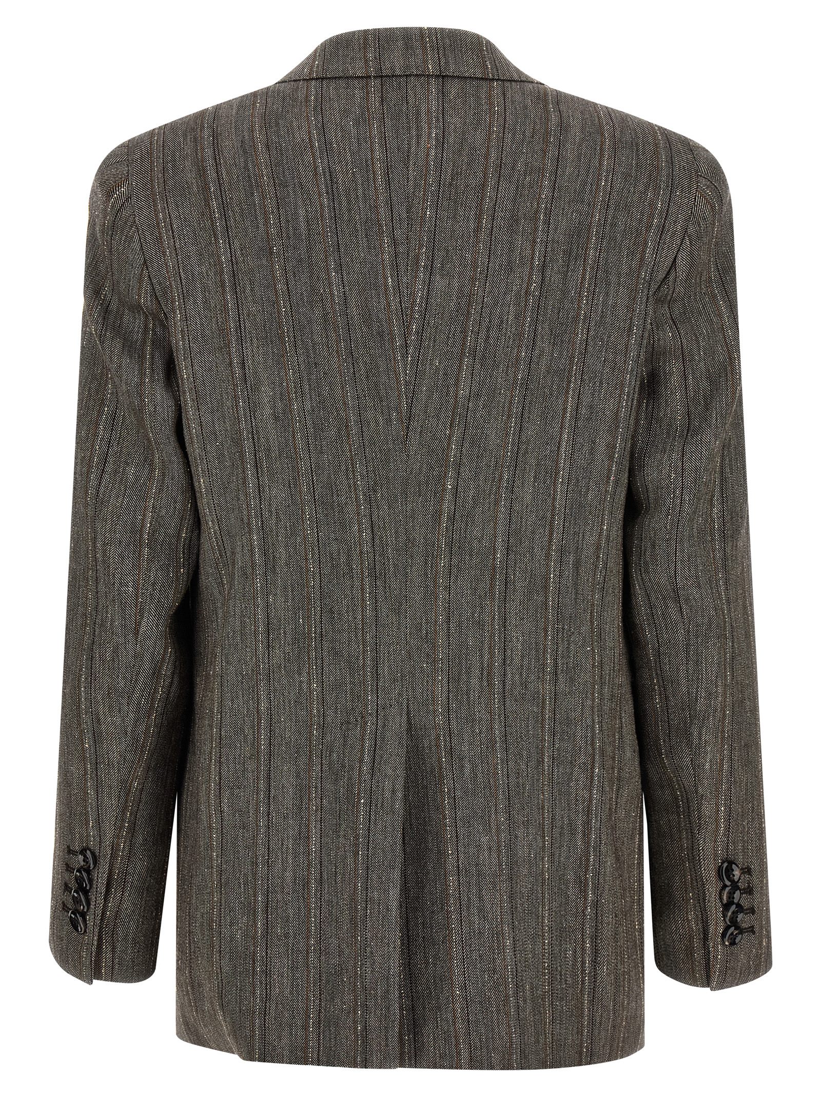 ‘Bertha’ single-breasted blazer in linen blend and viscose striped chevron pattern, two front horn button closure, peak lapels, breast pocket, flap pockets, structured shoulder straps, long sleeves, back split, cupro lining.