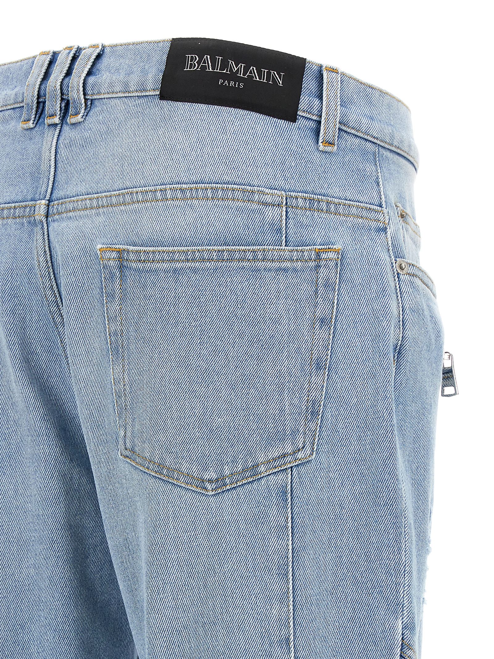 ‘Biker’ stretch cotton denim jeans with used-effect details and pleats at the knees, zip and button closure, five pockets, back logo label, zip detail on the bottom of the leg.