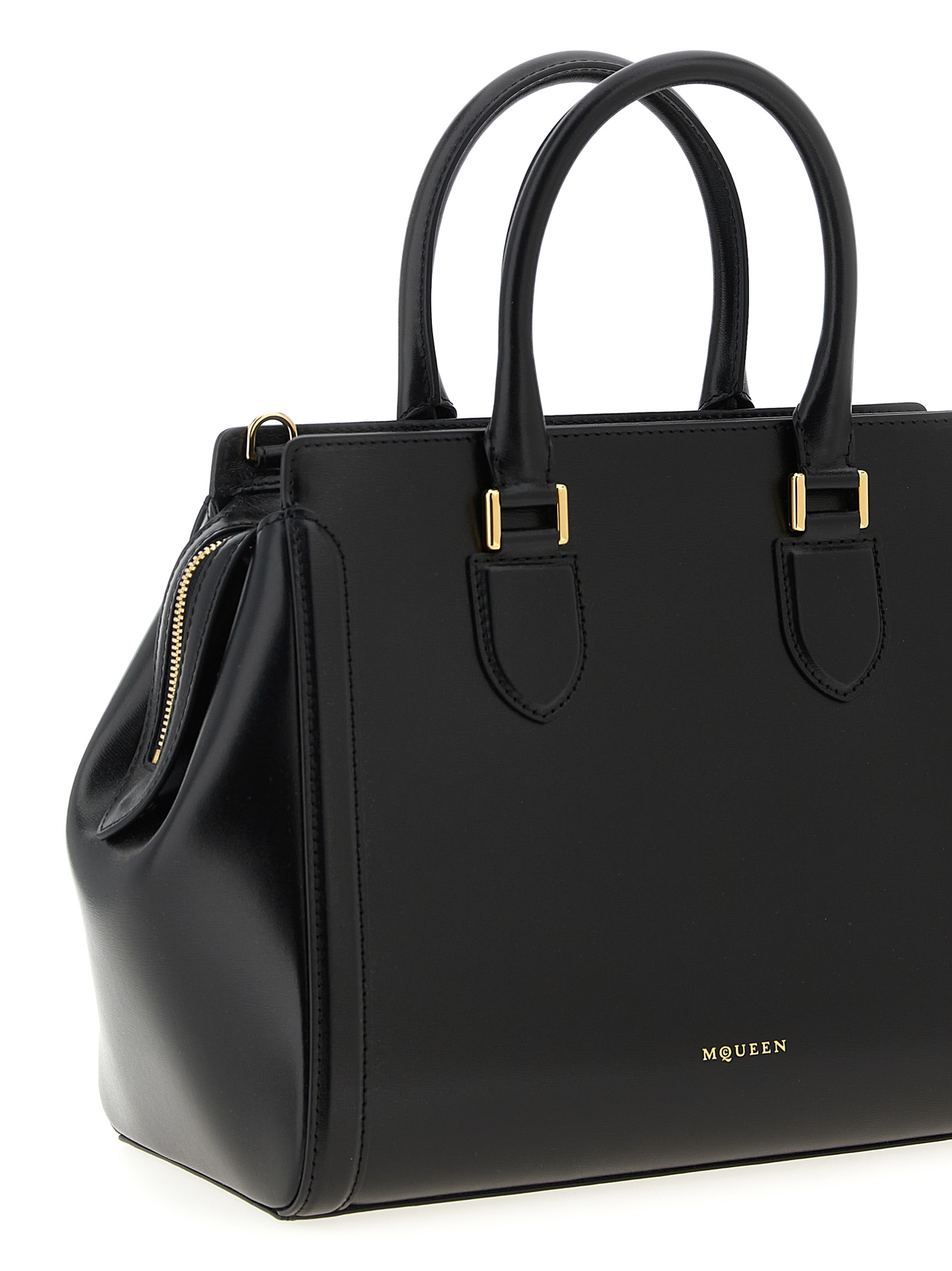 ‘Birdee’ large smooth calf leather handbag with front embossed logo, double fixed handle, top zip closure, adjustable and removable shoulder strap.
