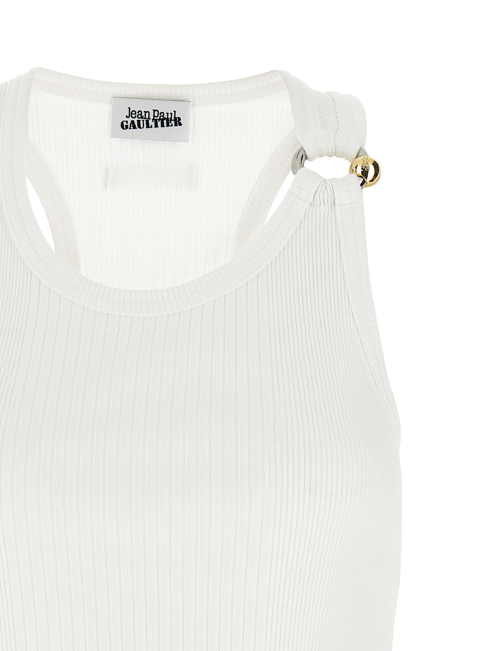 Ribbed stretch cotton tank top with ‘Black Piercing’ detail on the left shoulder strap, round neckline.