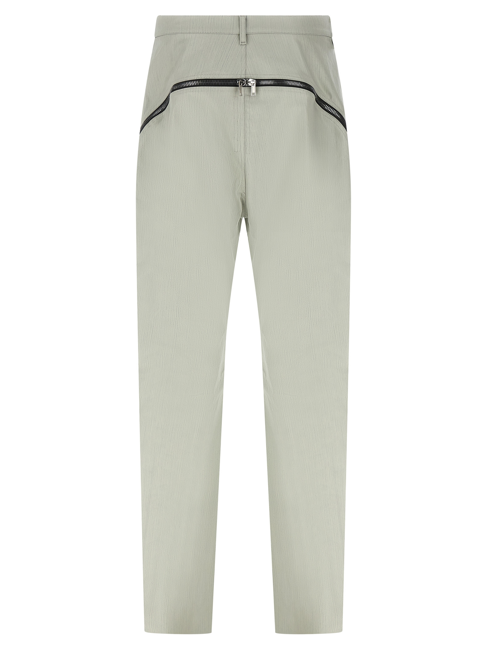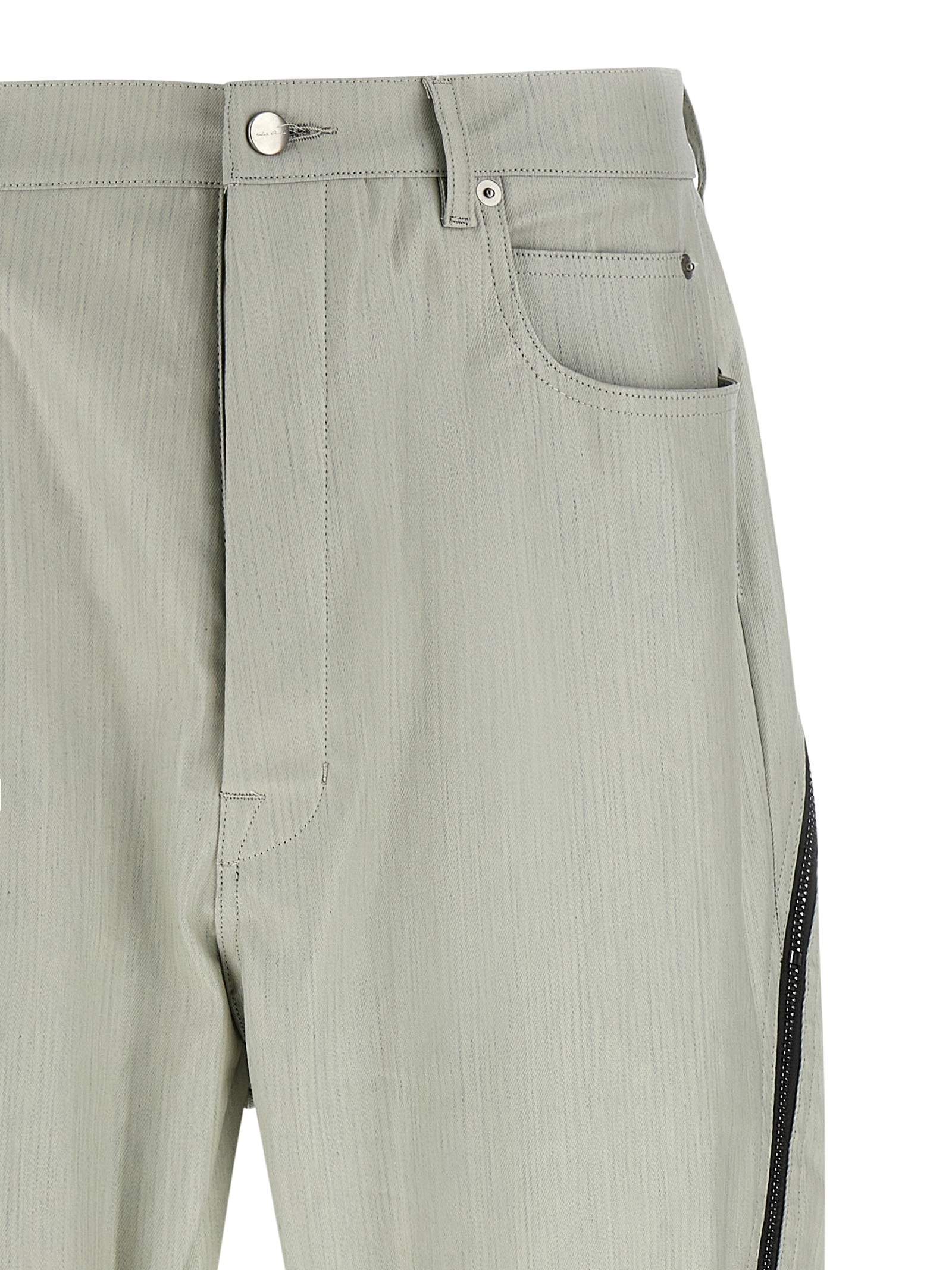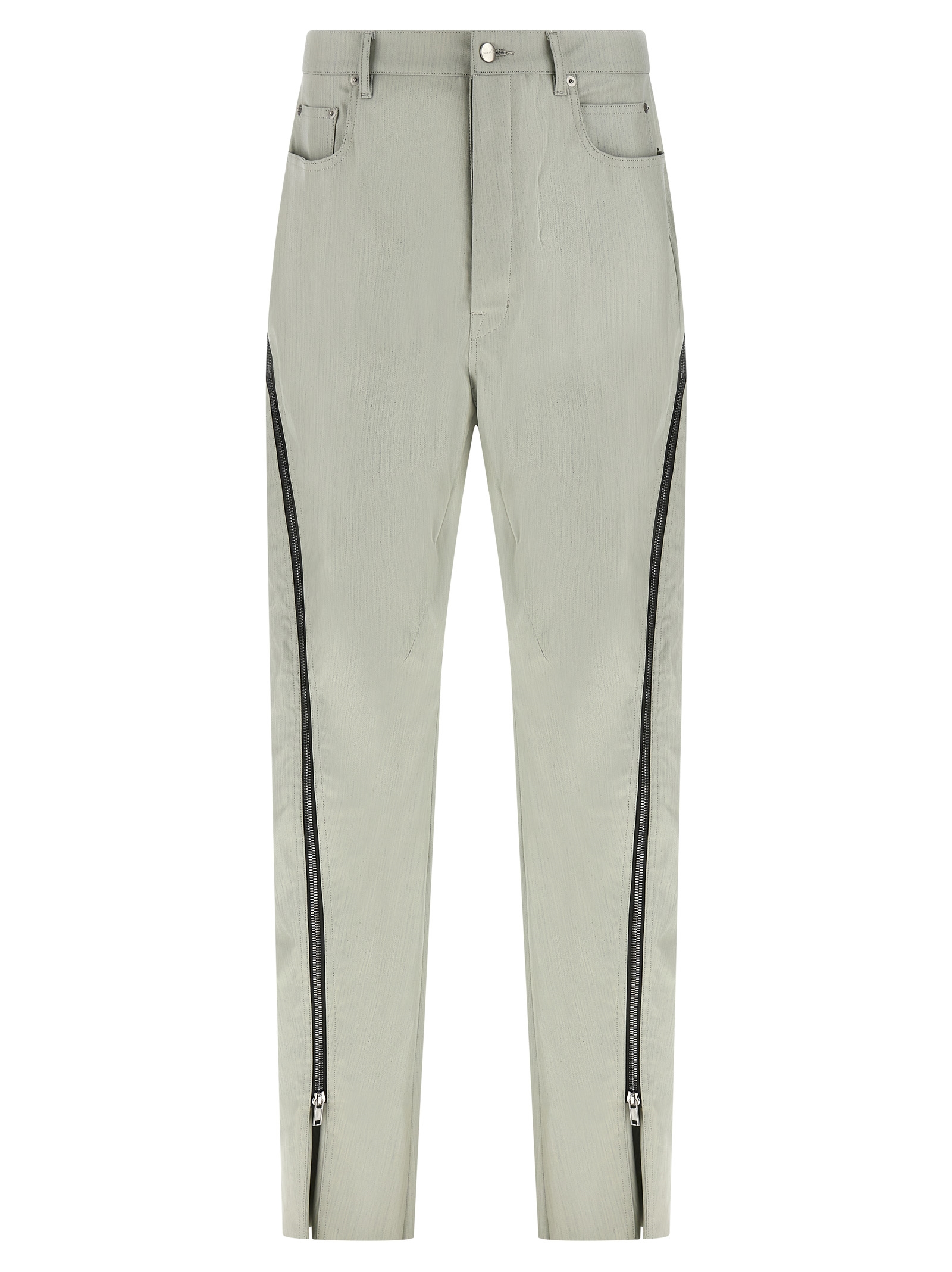 High-waisted cotton denim jeans Bolan Banana with semi-gloss coating, adjustable boot leg thanks to the zip, five pockets, button closure, raw cut on the leg bottom.