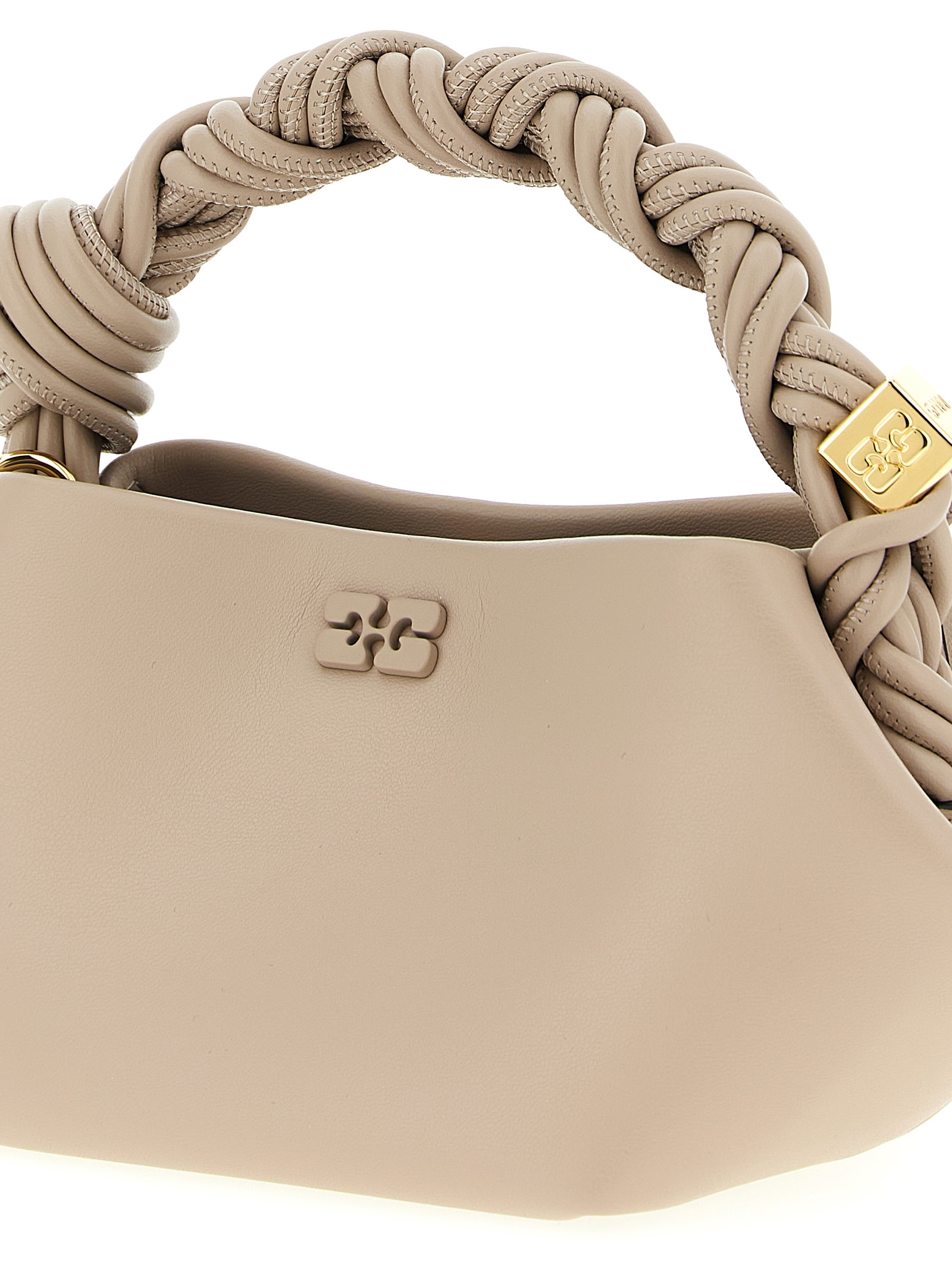 ‘Bou Bag Mini’ leather handbag with magnetic closure, fixed handle with ‘Ganni Butterfly’ detail, adjustable and removable shoulder strap, front embossed logo.
