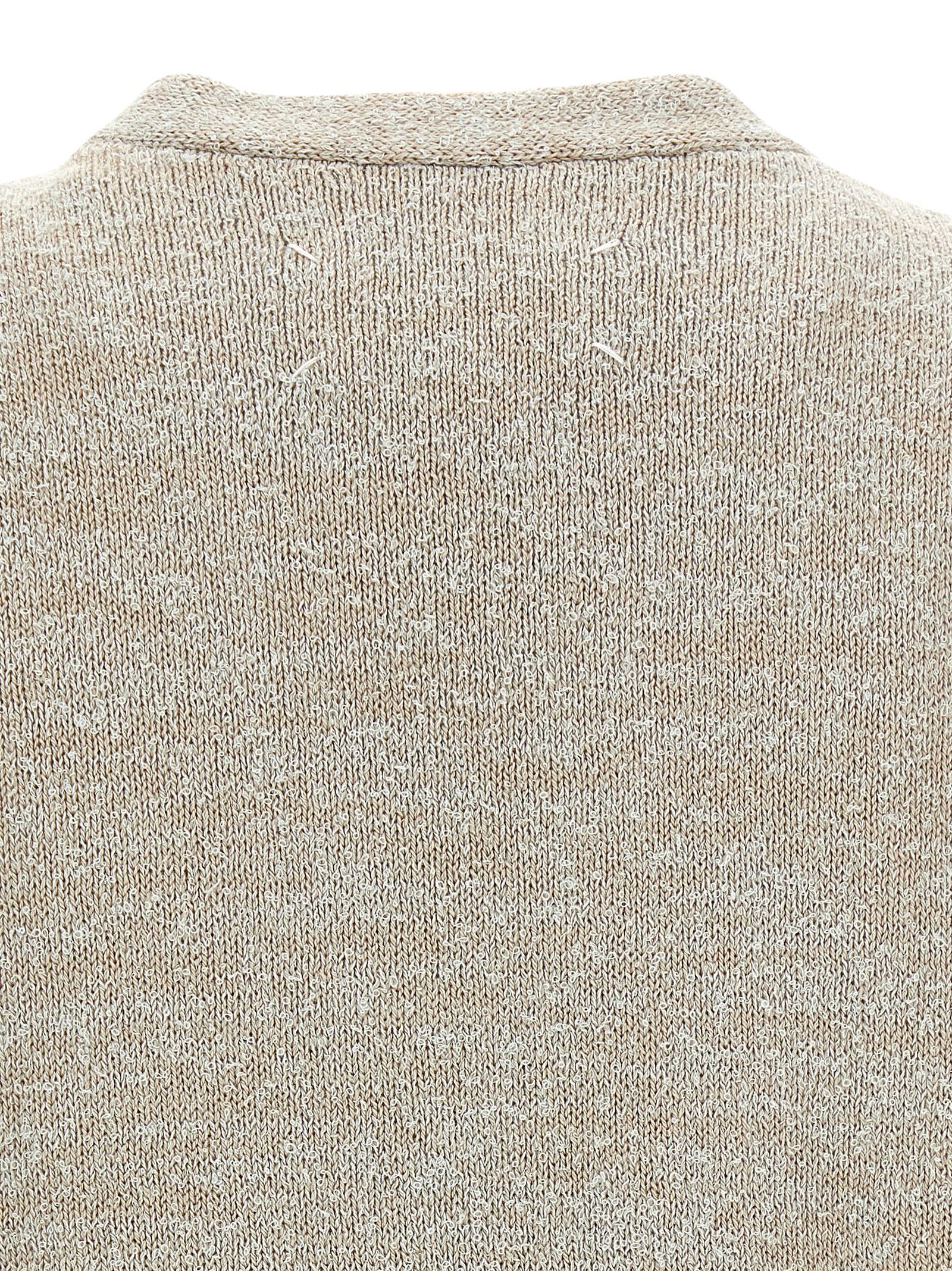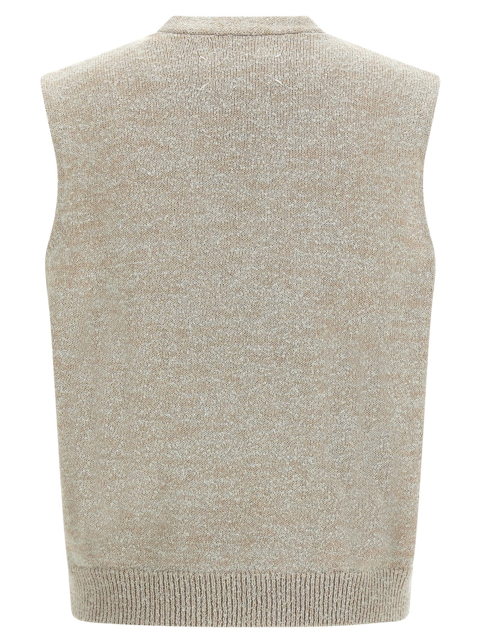 Light bouclé knit vest with deep V-neck, ‘Four stitches’ at the back.
