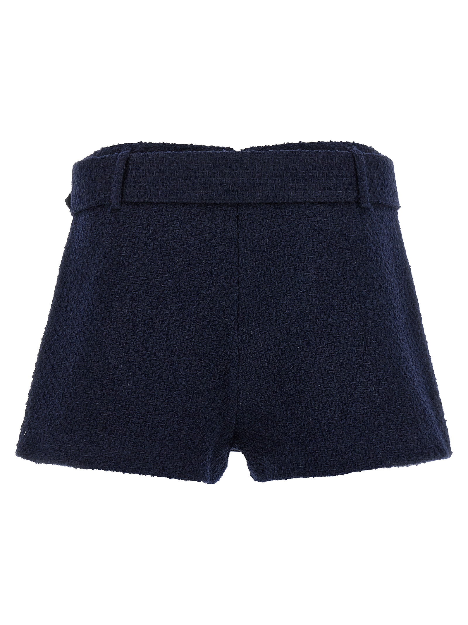 Bouclé wool blend skort, front pockets, back zip closure, removable belt.