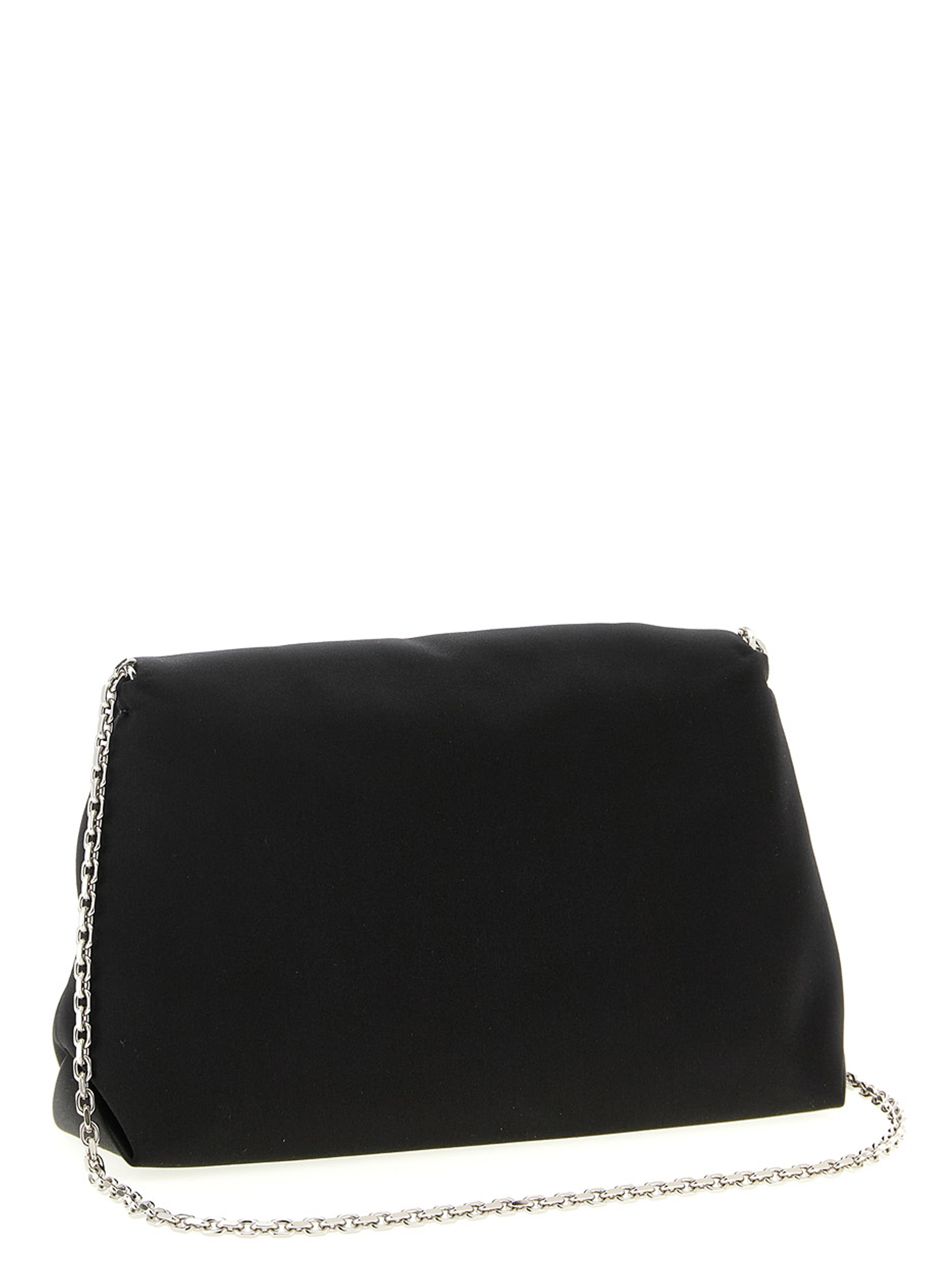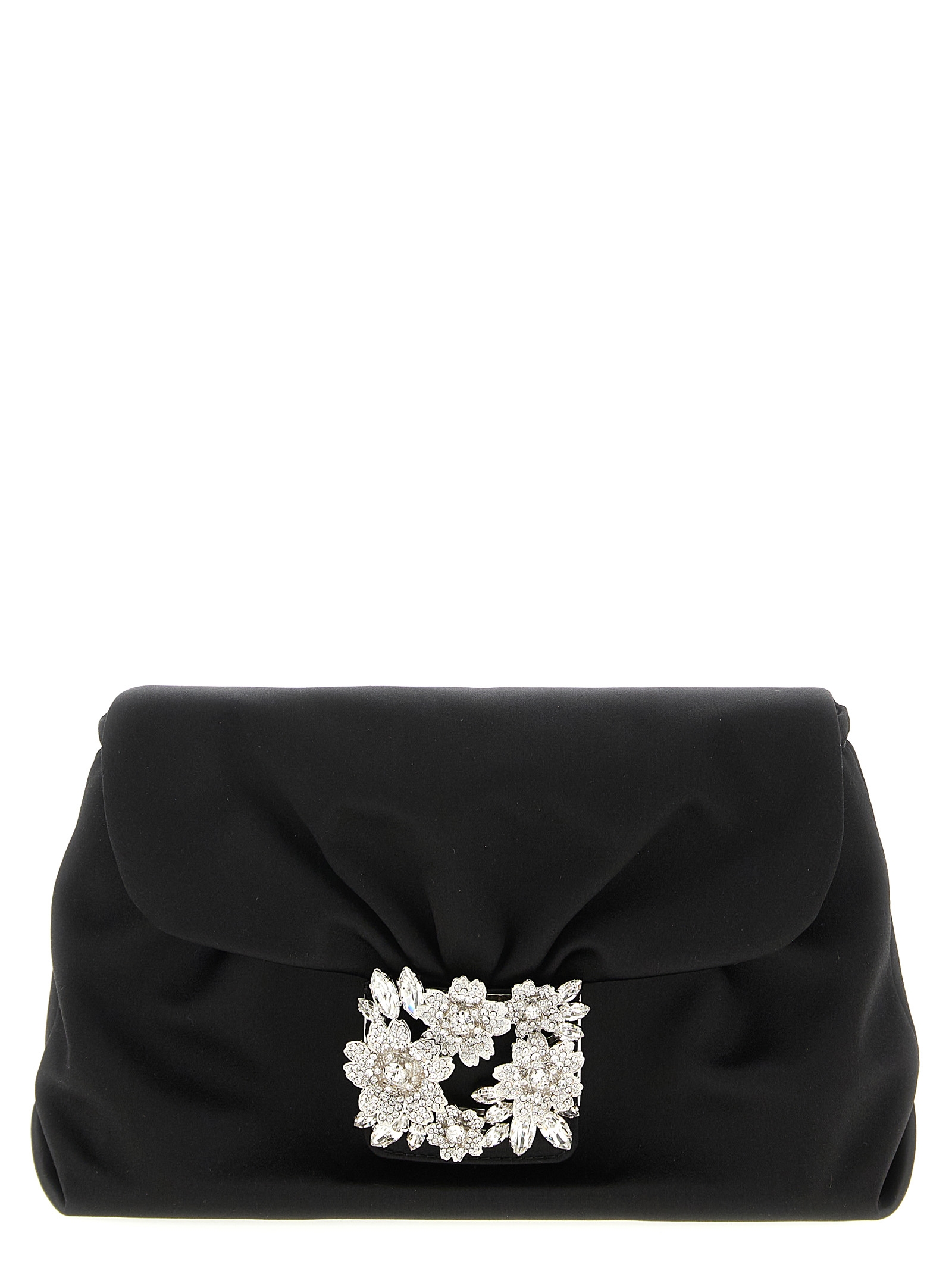 ‘Bouquet Strass Drape mini’ draped satin clutch, flap with magnetic closure and jewel of rhinestones on the front, removable chain shoulder strap