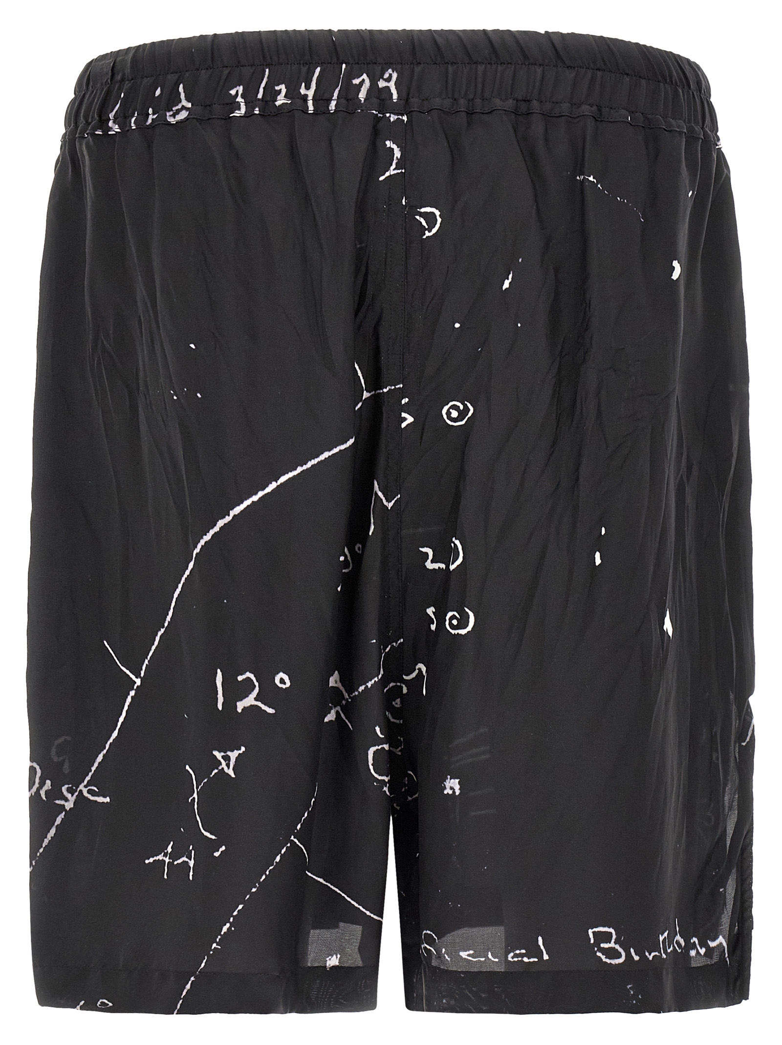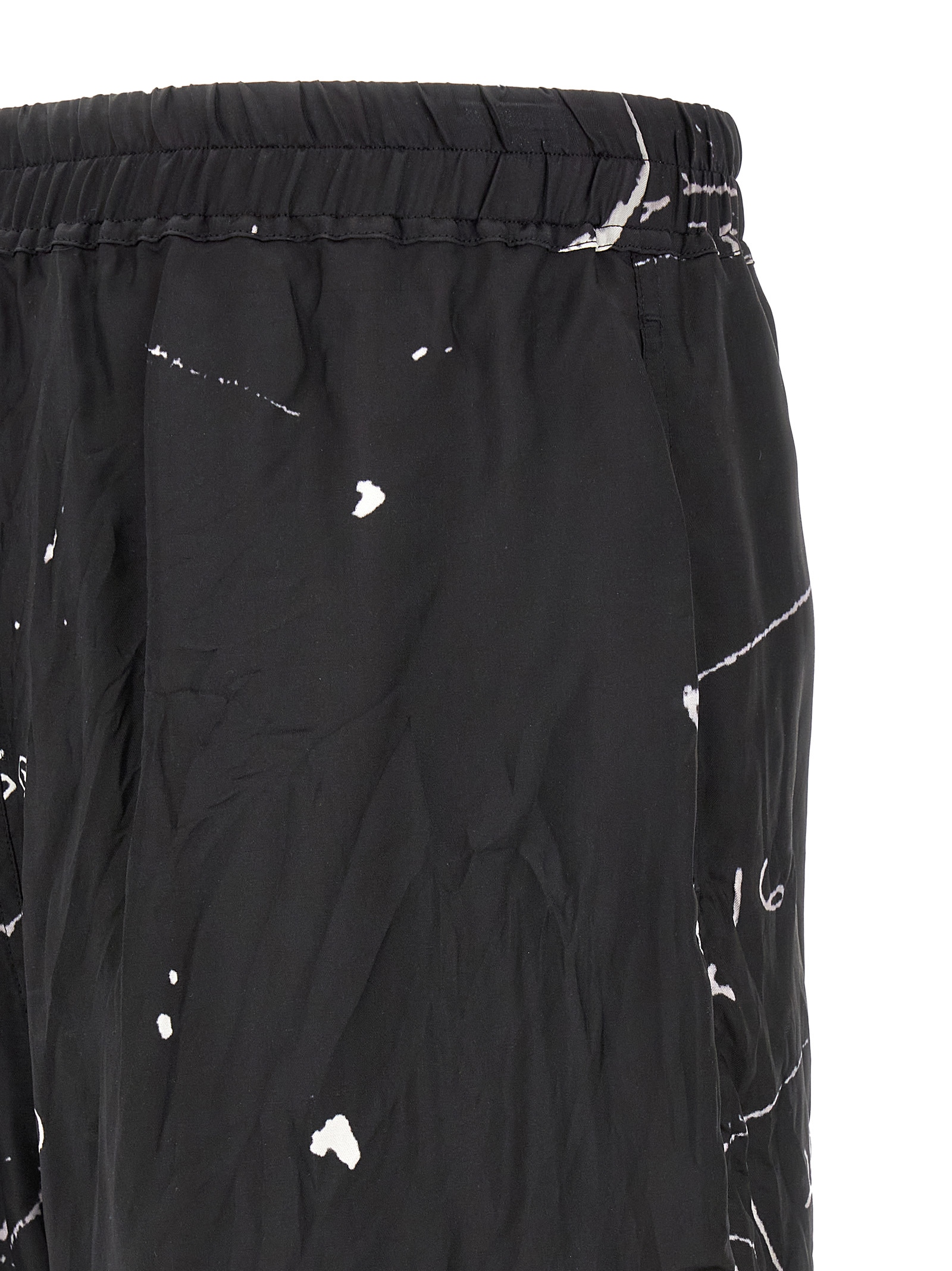 ‘Boxers’ bermuda shorts in light and fluid cupro twill with digital print, slightly low crotch, wide leg with side splits, adjustable drawstring elastic at the waist, pockets.