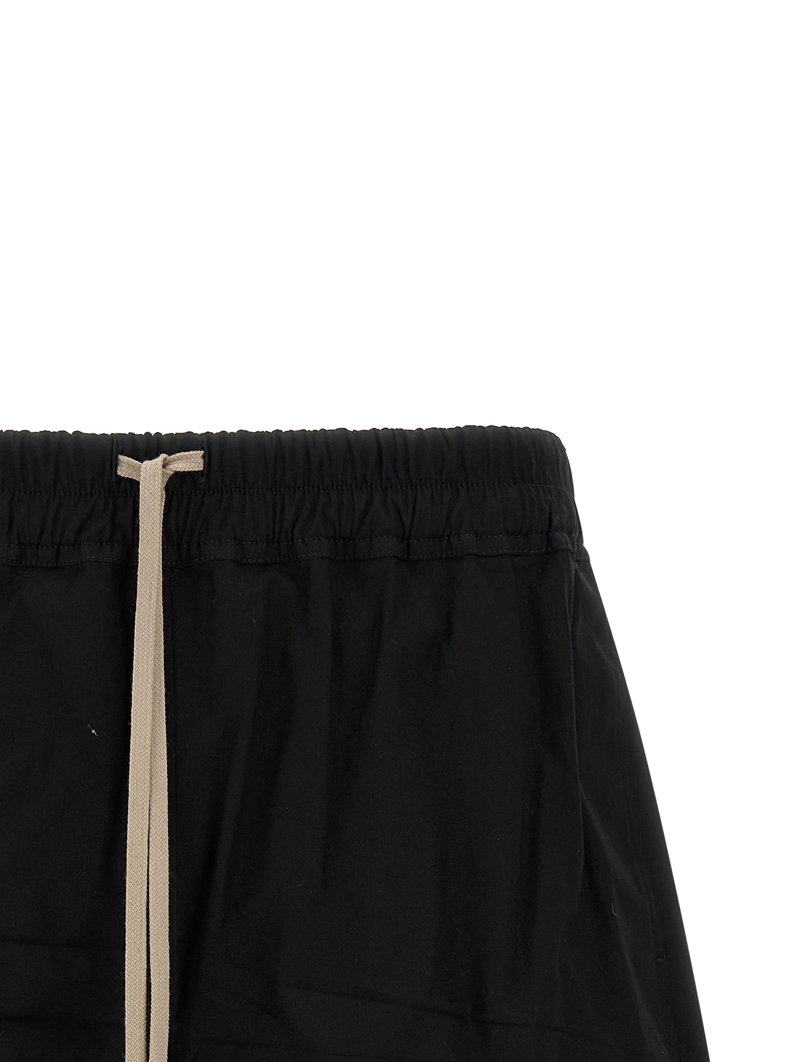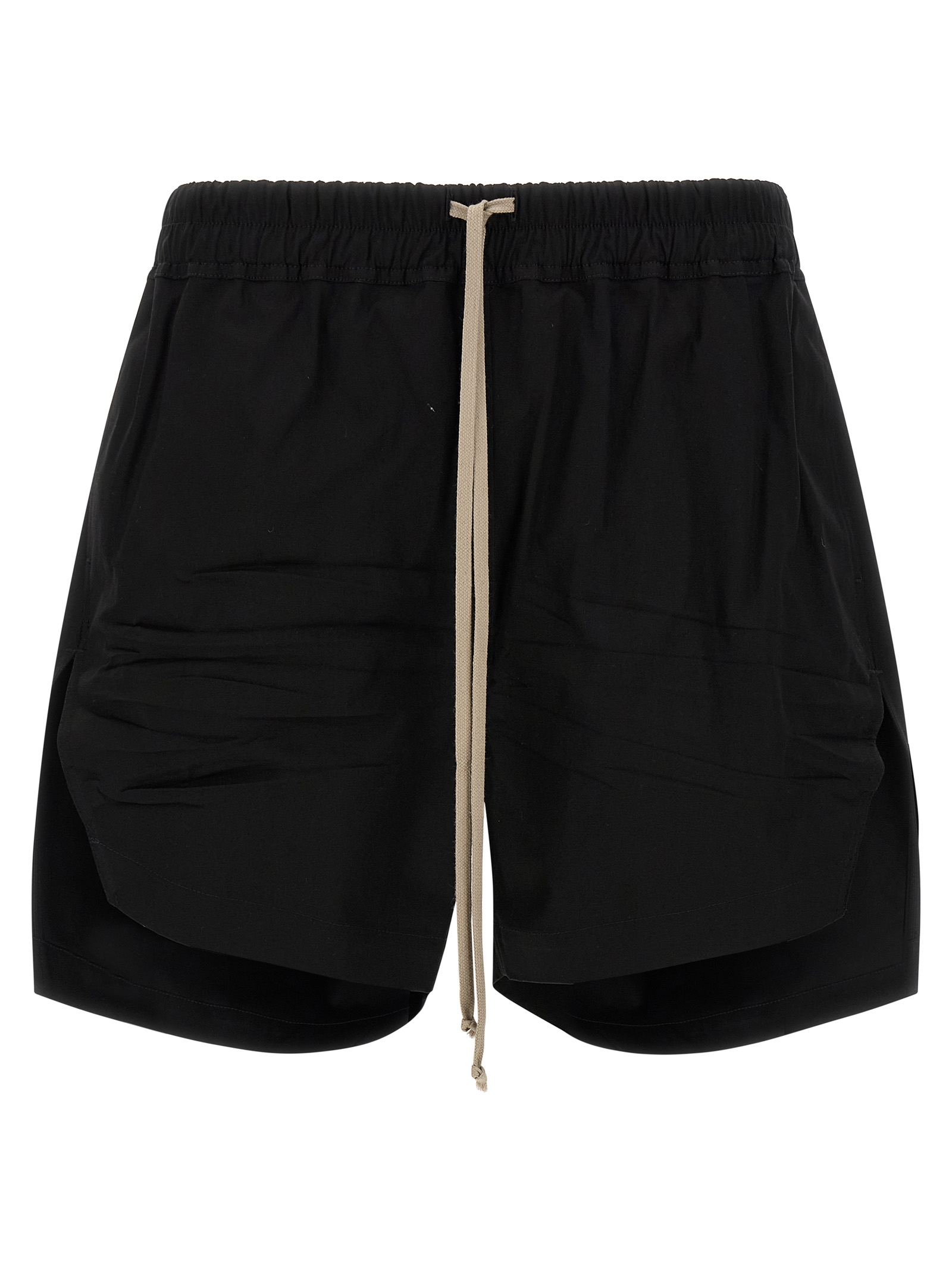 ‘Boxers’ cotton poplin bermuda shorts, crunchy average coat weight, slightly low crotch model, wide leg with side splits, adjustable drawstring elastic at the waist, pockets.