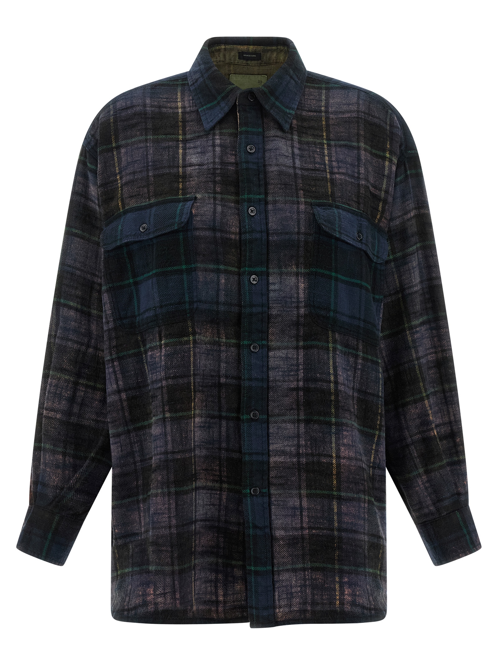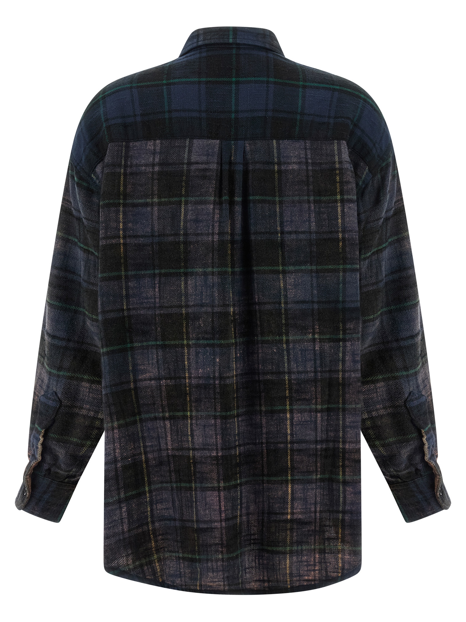 ‘Boyfriend’ check patterned cotton flannel shirt, front button closure, pockets, long sleeves with cuffs and dropped shoulders.