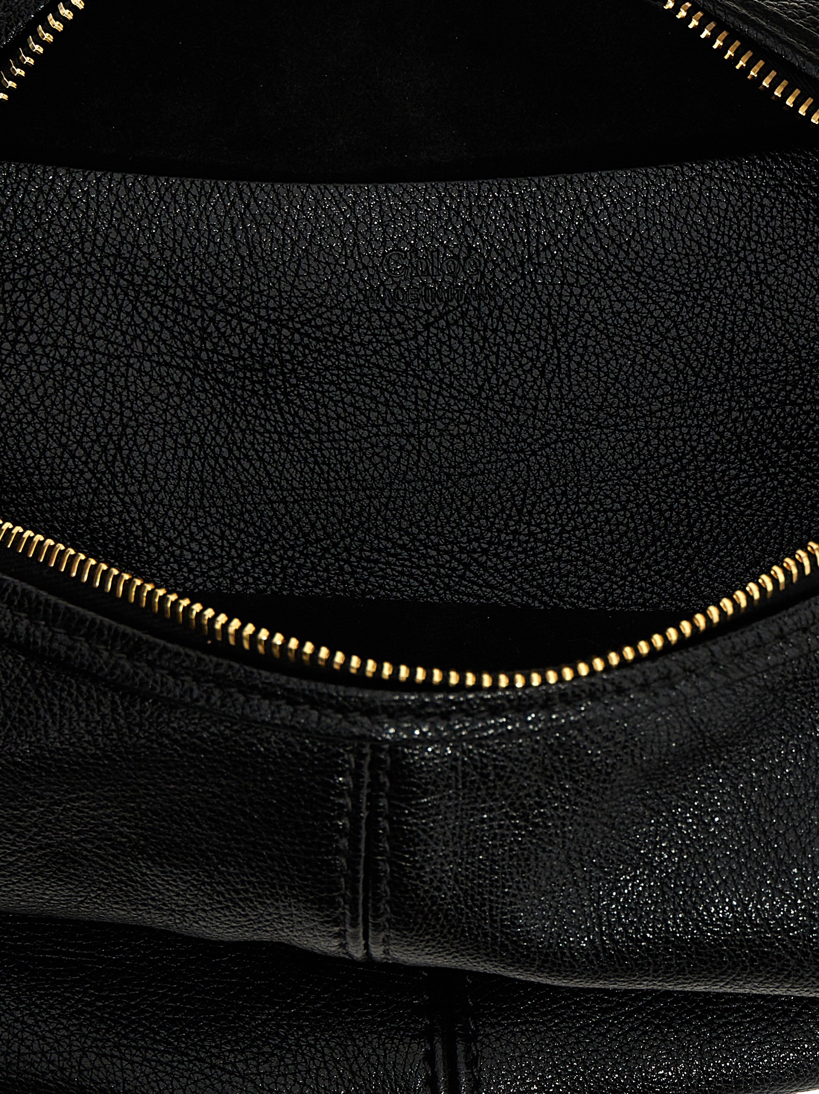 ‘Bracelet Hobo piccola’ handbag in shiny grenade calf leather, removable metal bracelet handle, zip closure, decoration with two-tone metal rings on the sides, adjustable and removable shoulder strap.