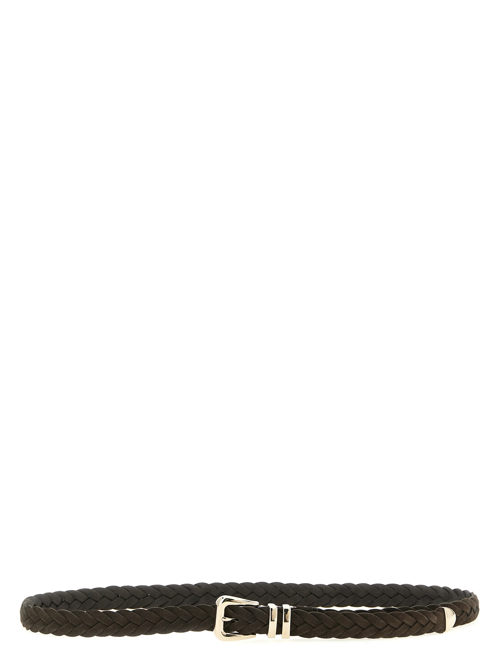 Braided inverted calf leather belt with antiqued metal buckle, toe cap and loops.