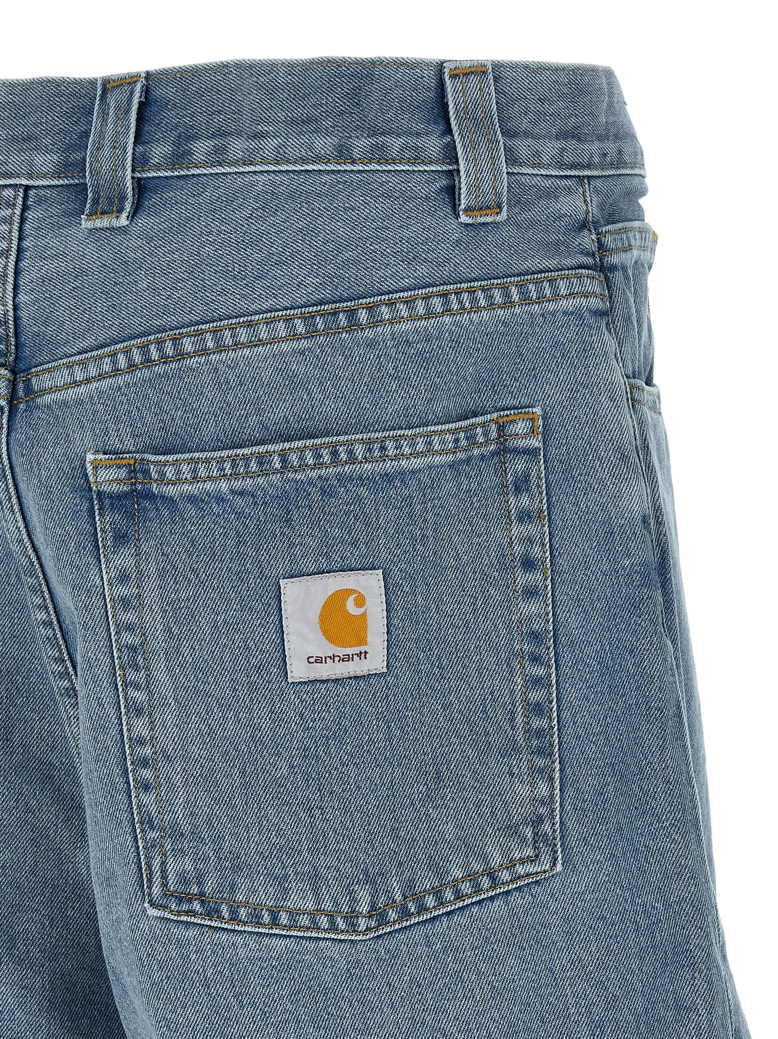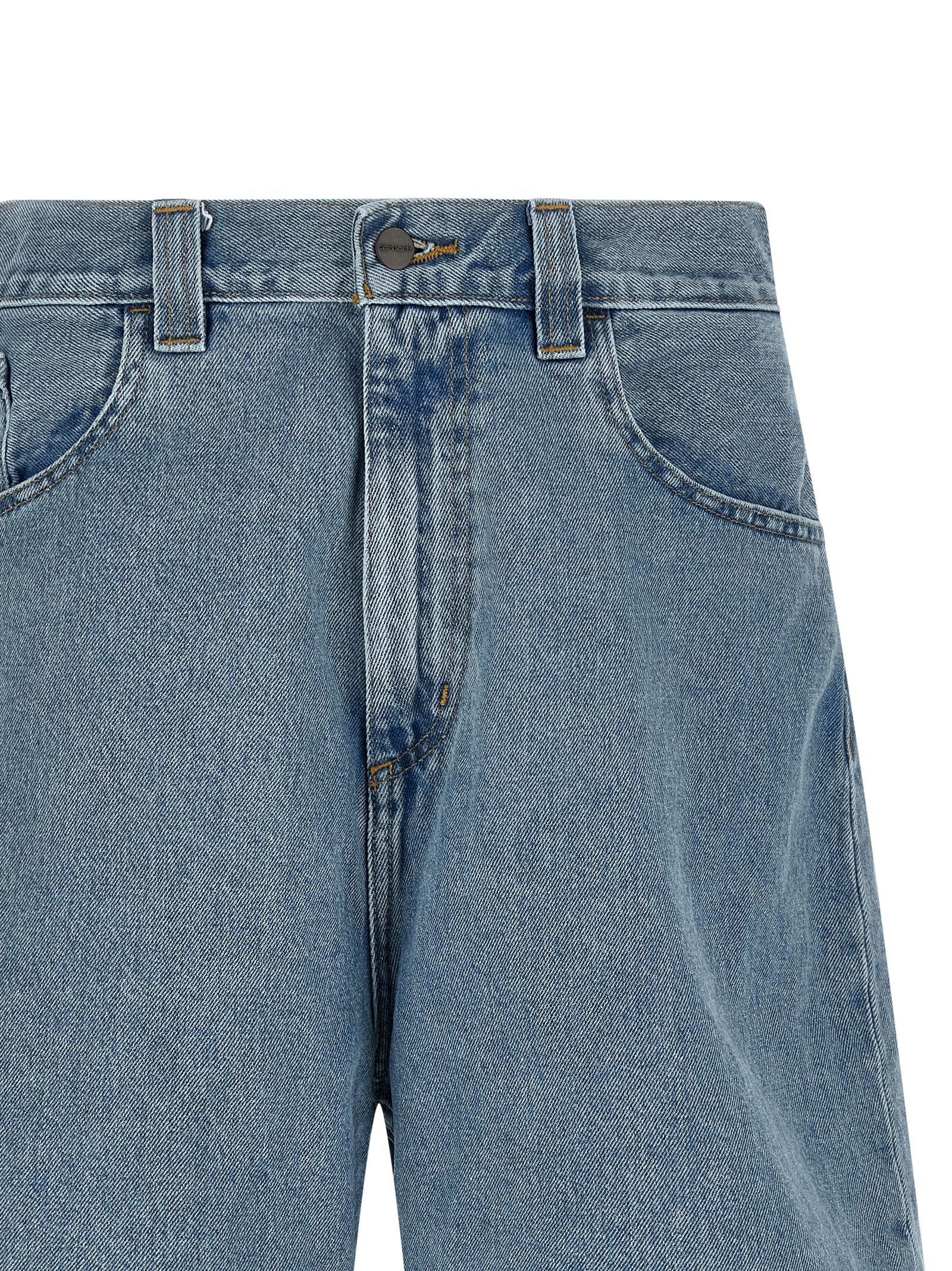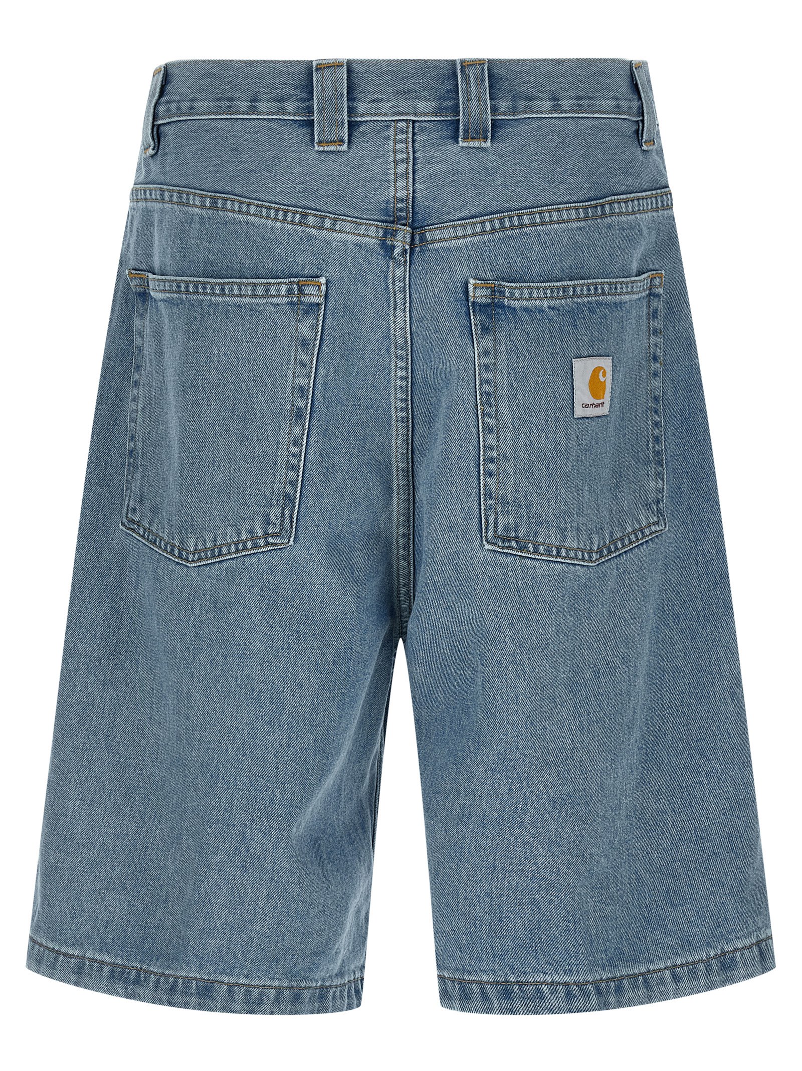 ‘Brandon’ bermuda shorts in heavy cotton denim with stone bleached wash, contrast stitching, wide leg, low crotch, front zip and button closure, five pockets, back logo patch.
