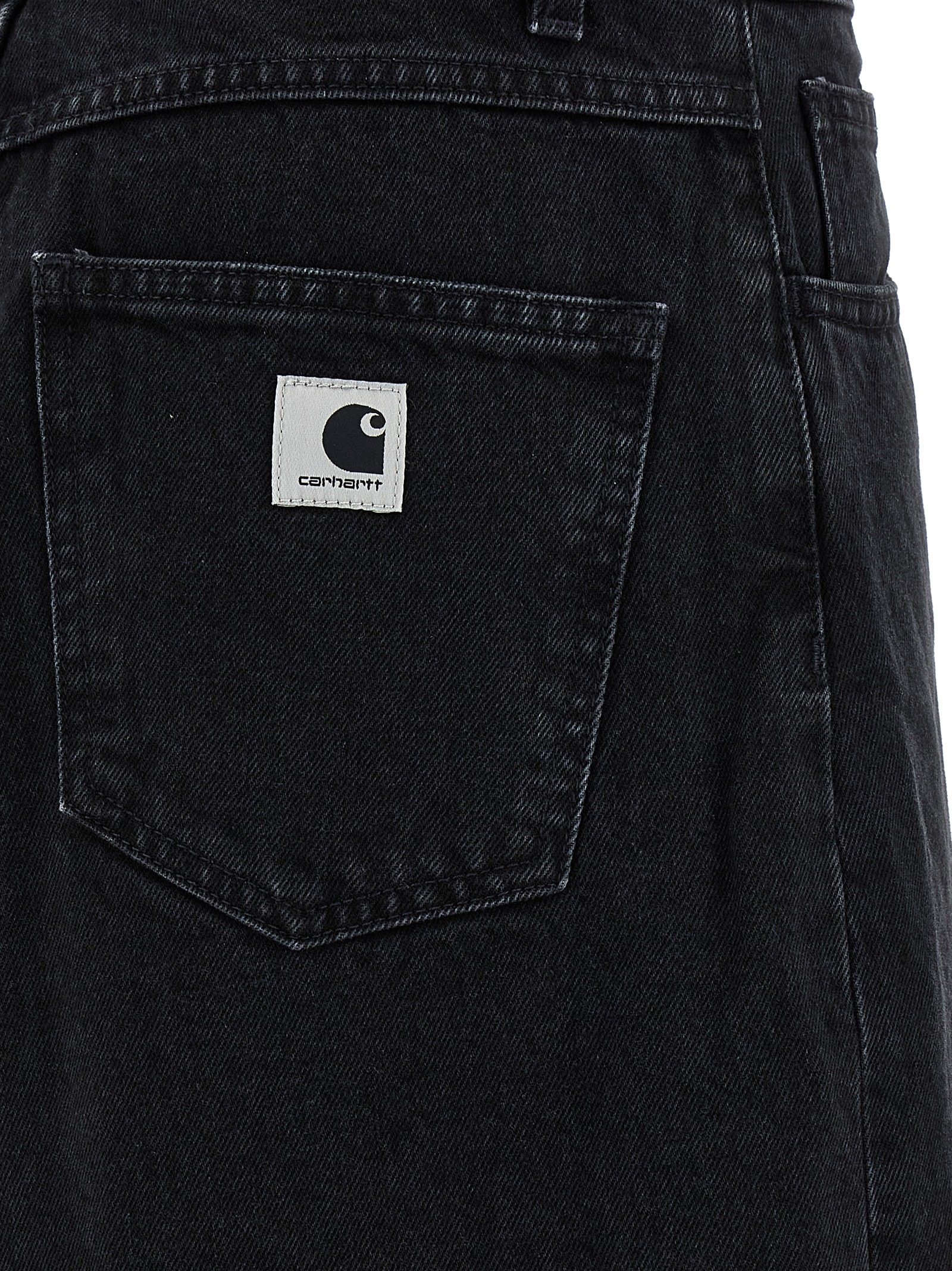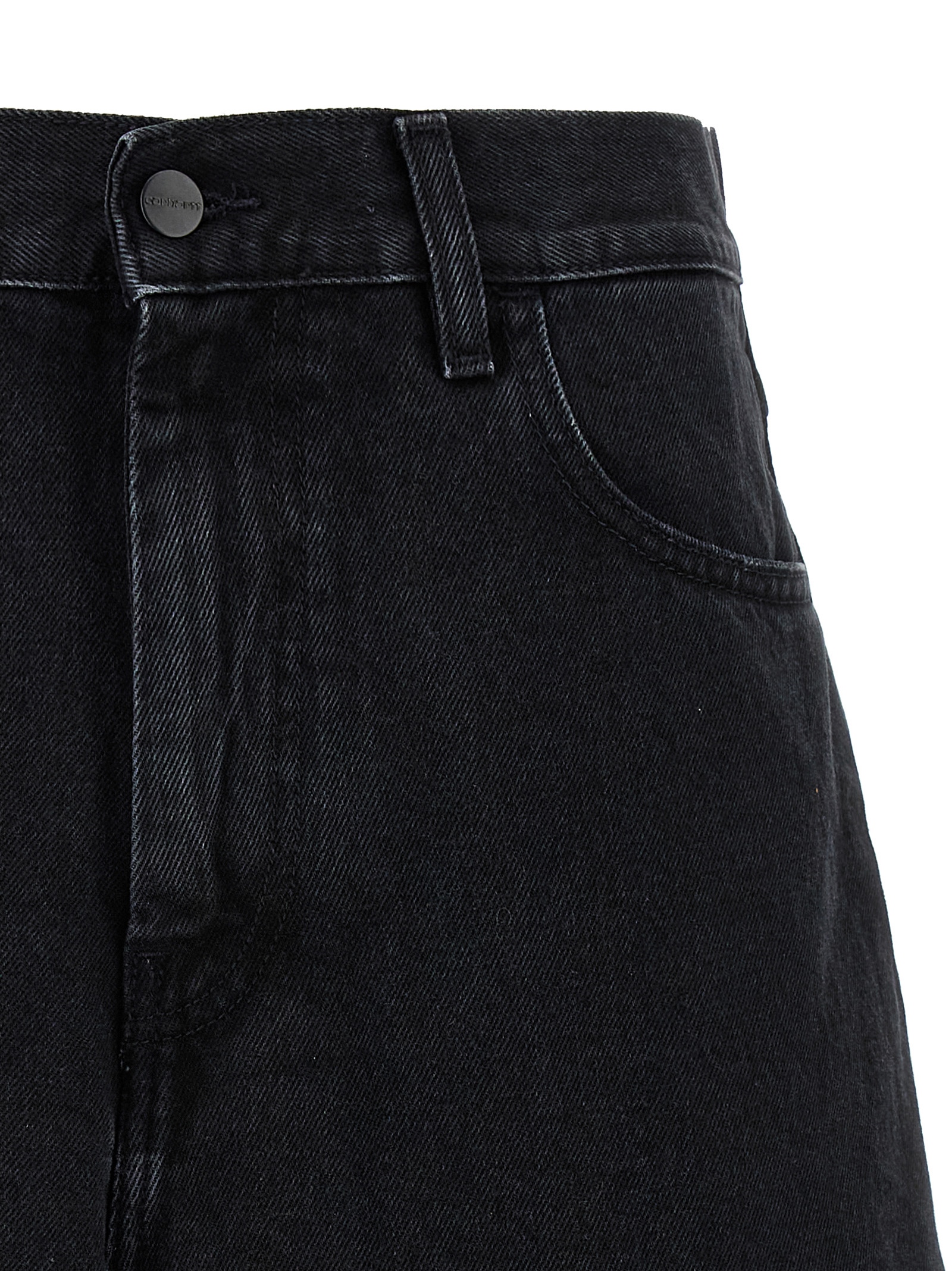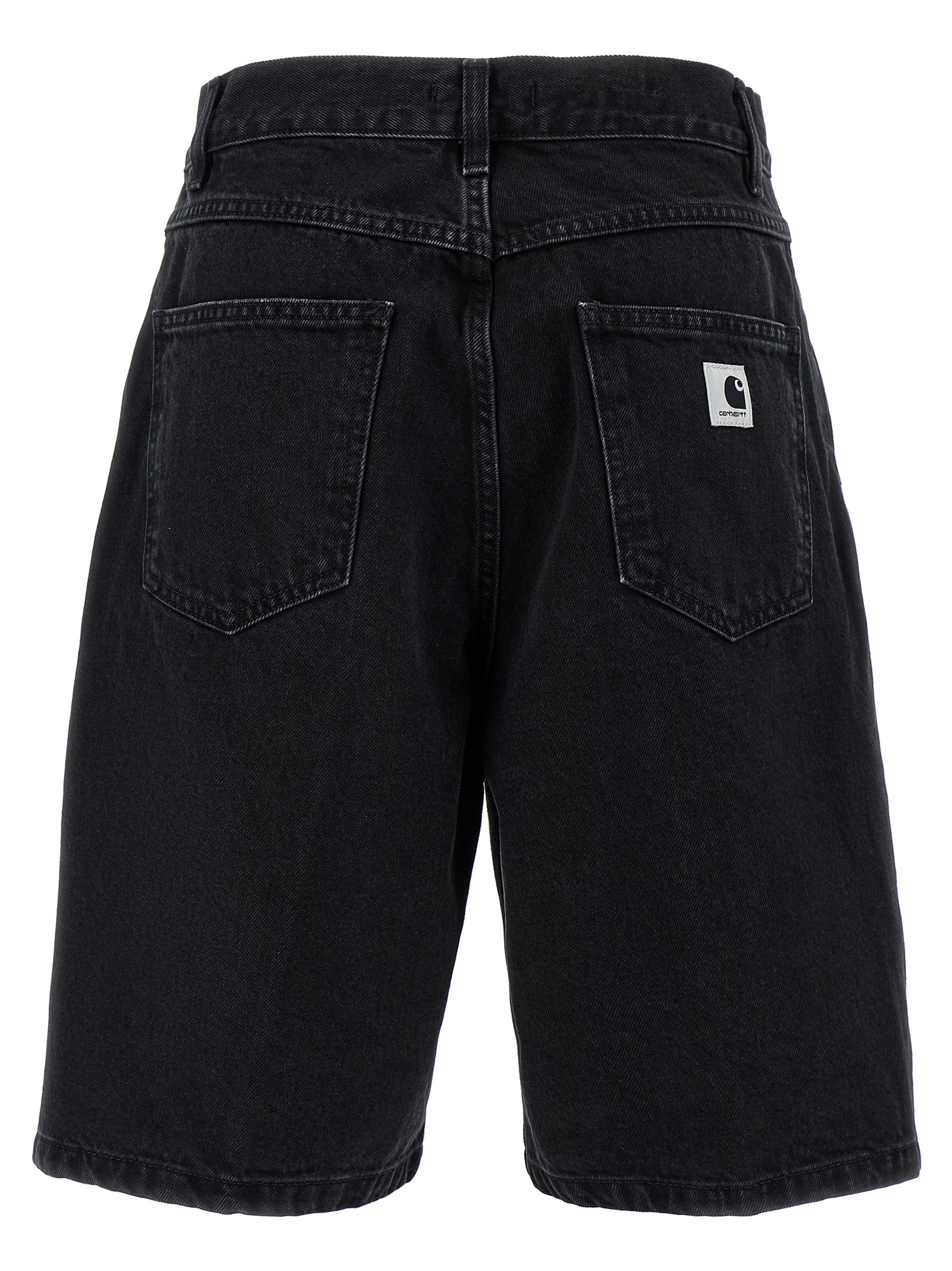Smith heavy stone-washed ‘Brandon’ cotton denim bermuda shorts with low waist, wide leg, front zip and button closure, five pockets, back logo patch.