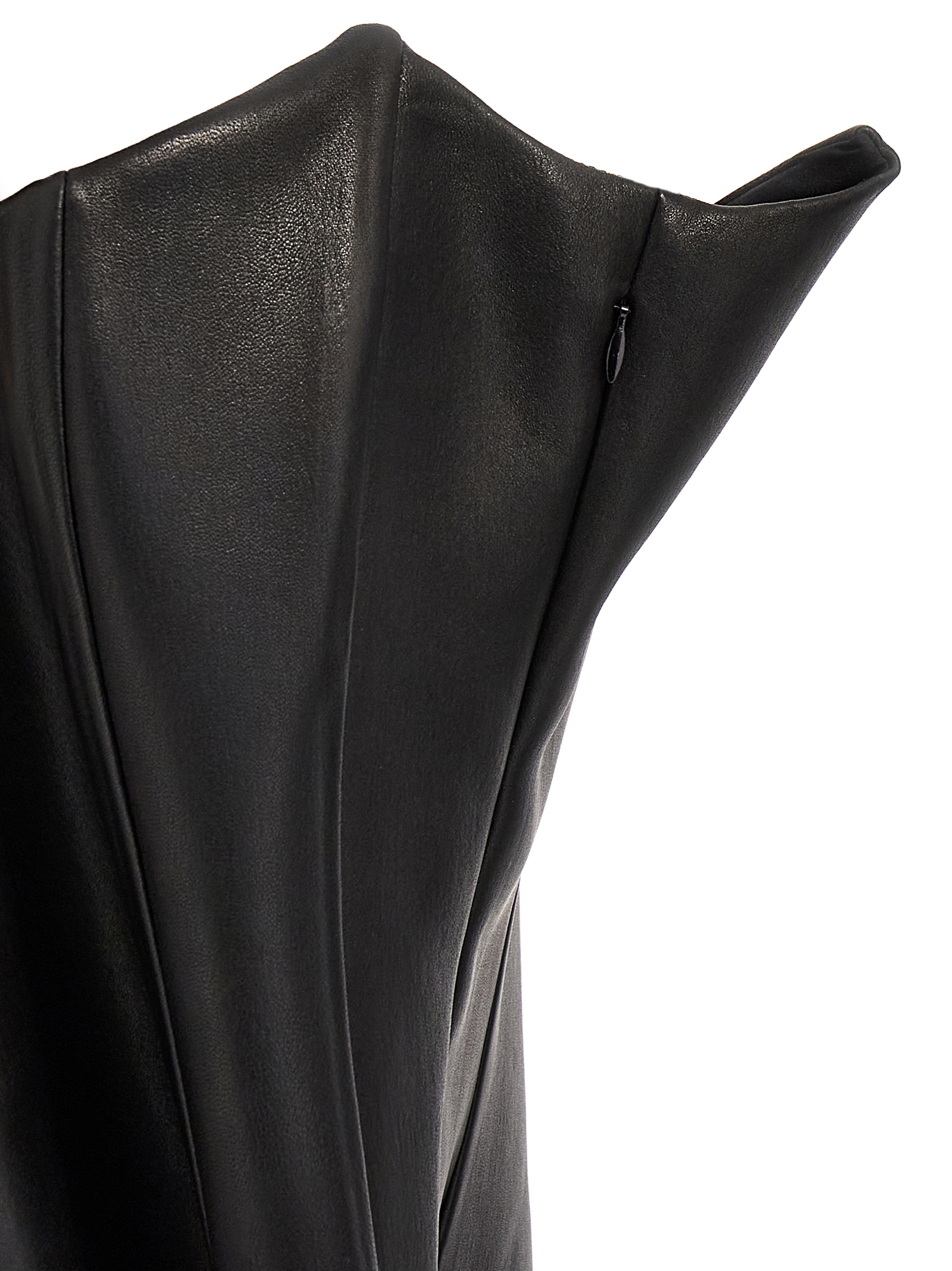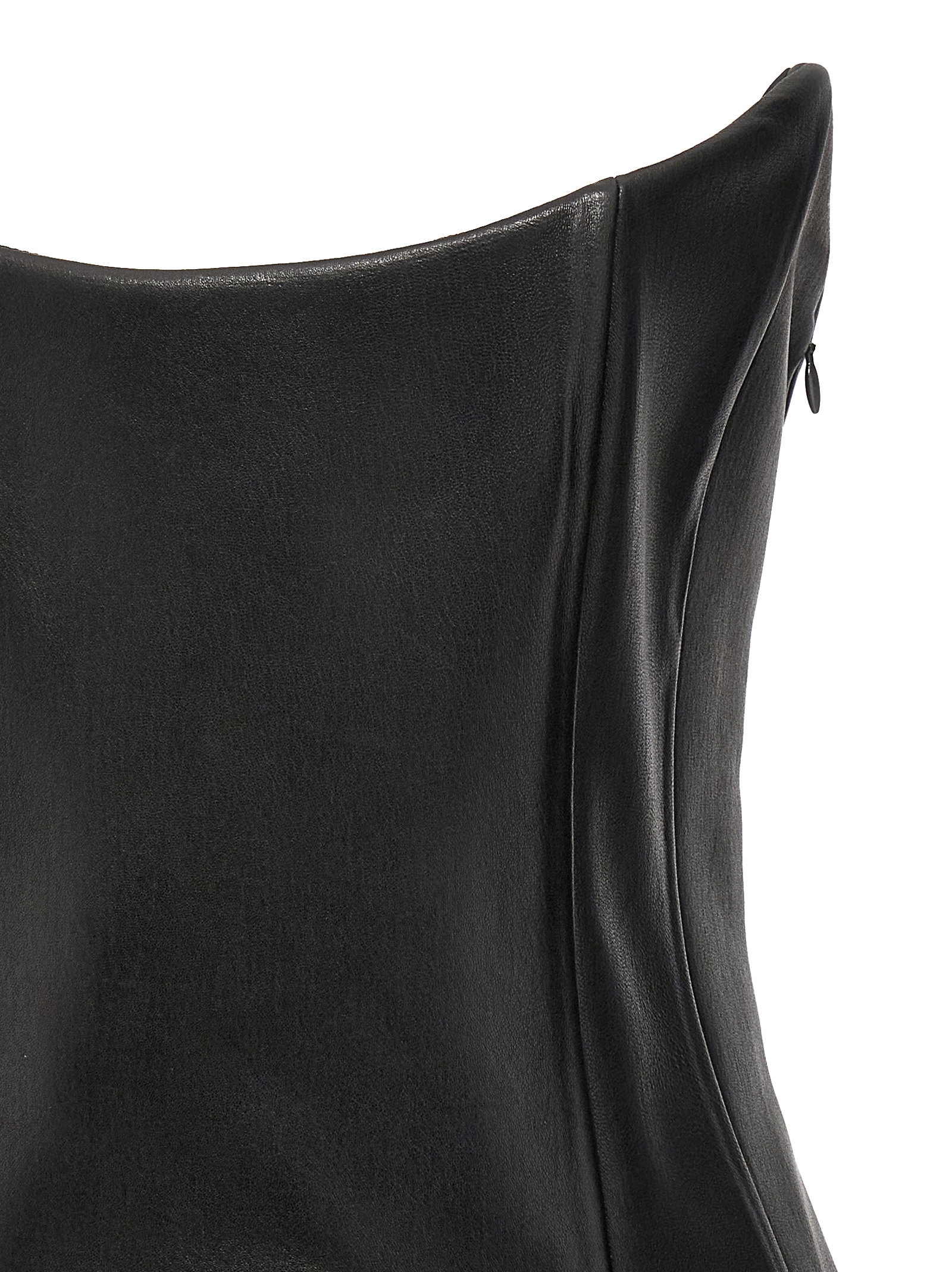 Leather bustier top with asymmetric style and a side zip.