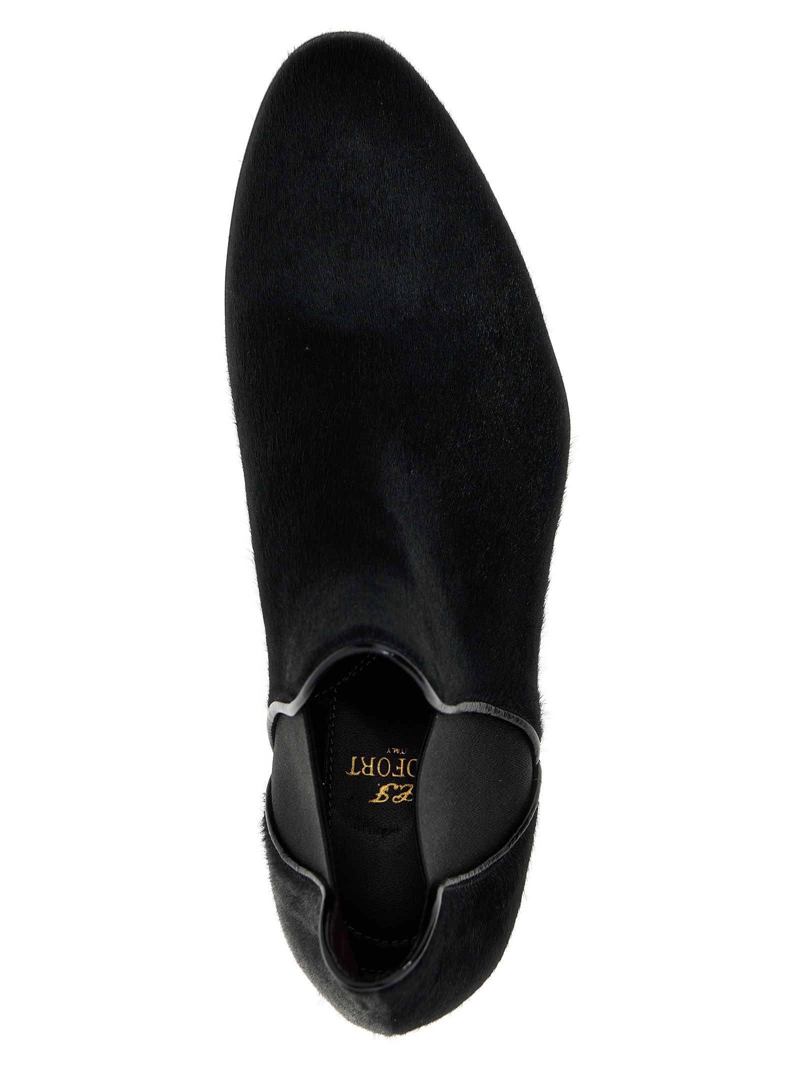Calf hair ankle boots with leather sole and aelastic detail.