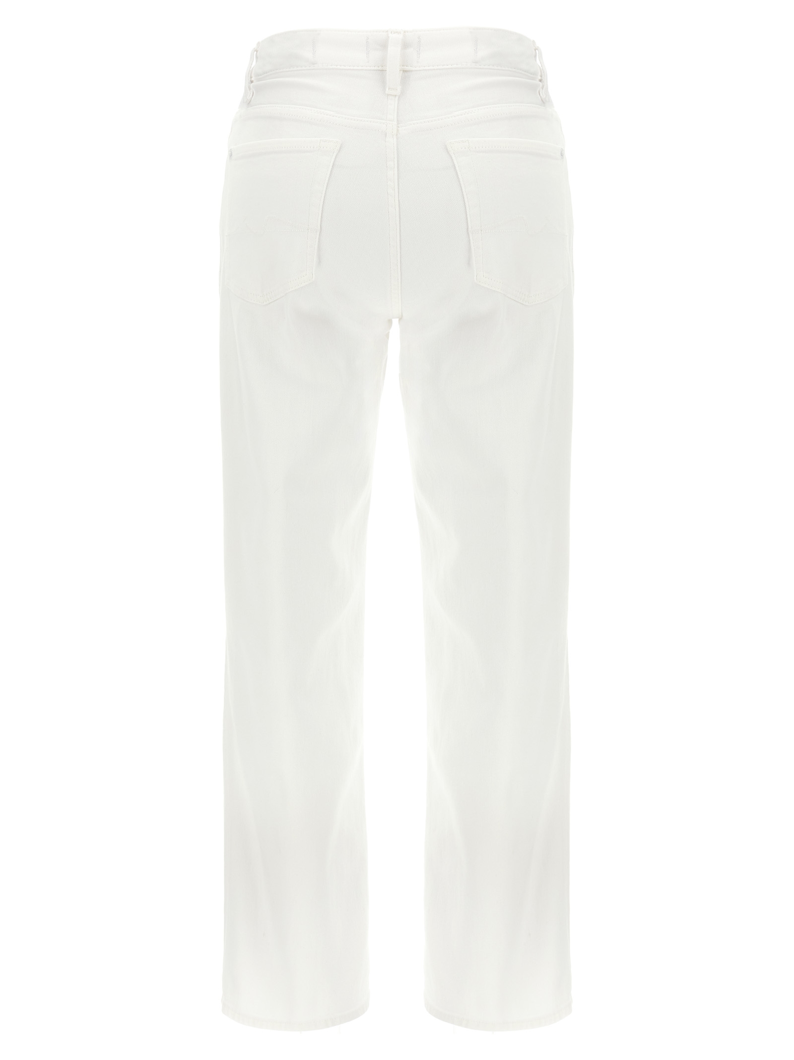 Luxe Vintage five-pocket stretch cotton denim jeans Calie with ankle design, zip and button closure, and leather logo label at the back.