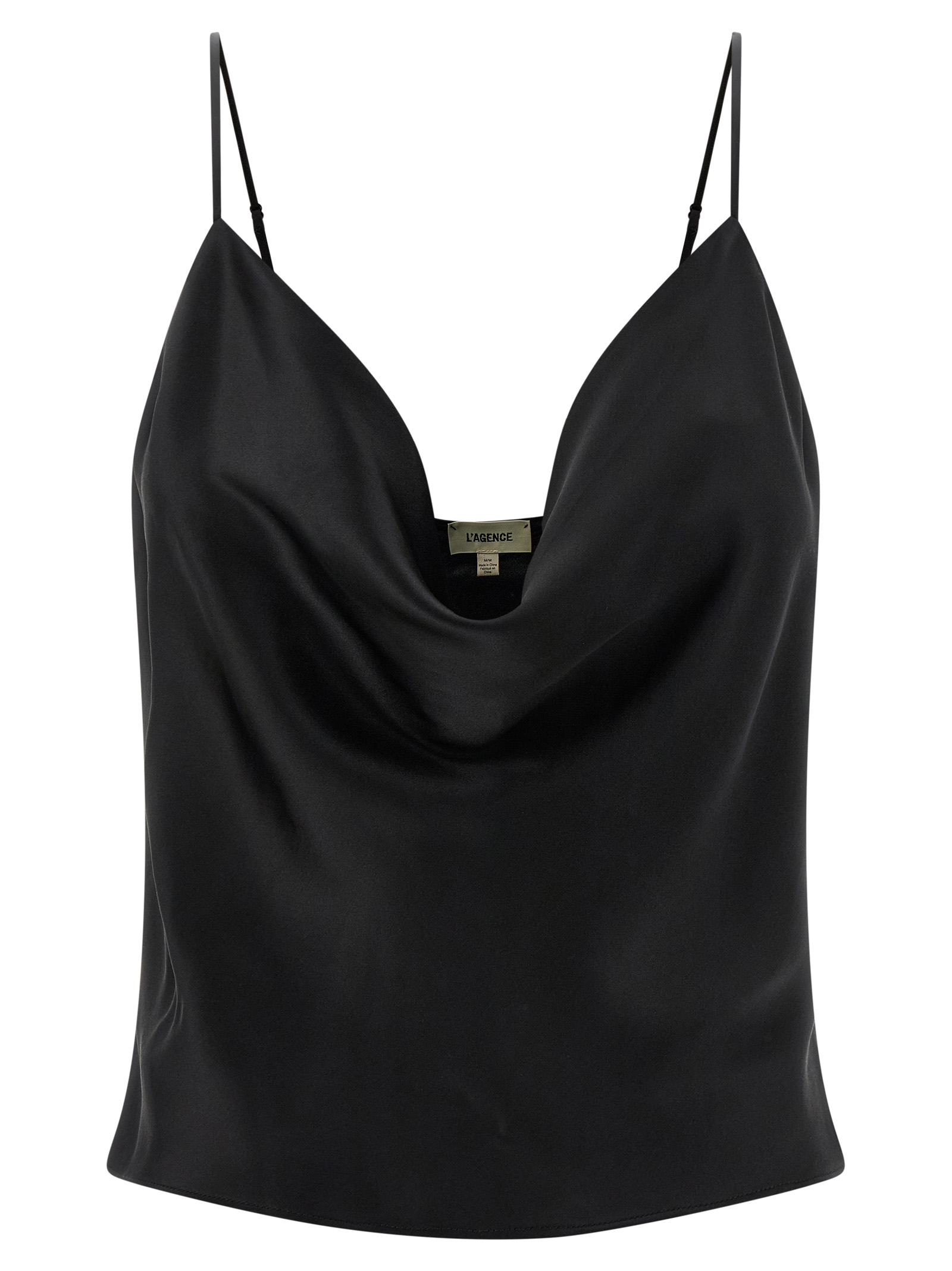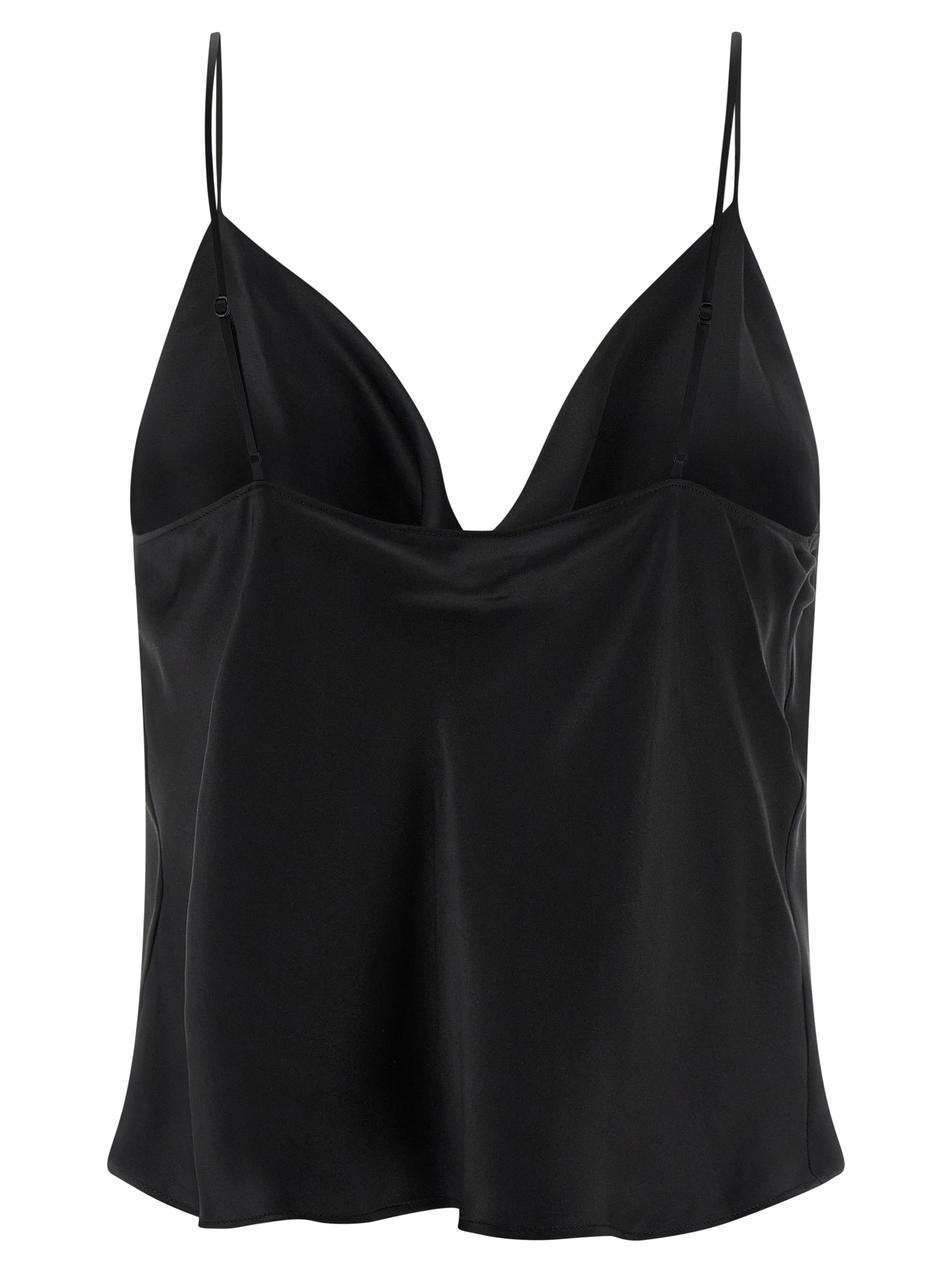 ‘Calista’ crop top in charmeuse silk, adjustable shoulder straps, weighted hood neckline with front draping.