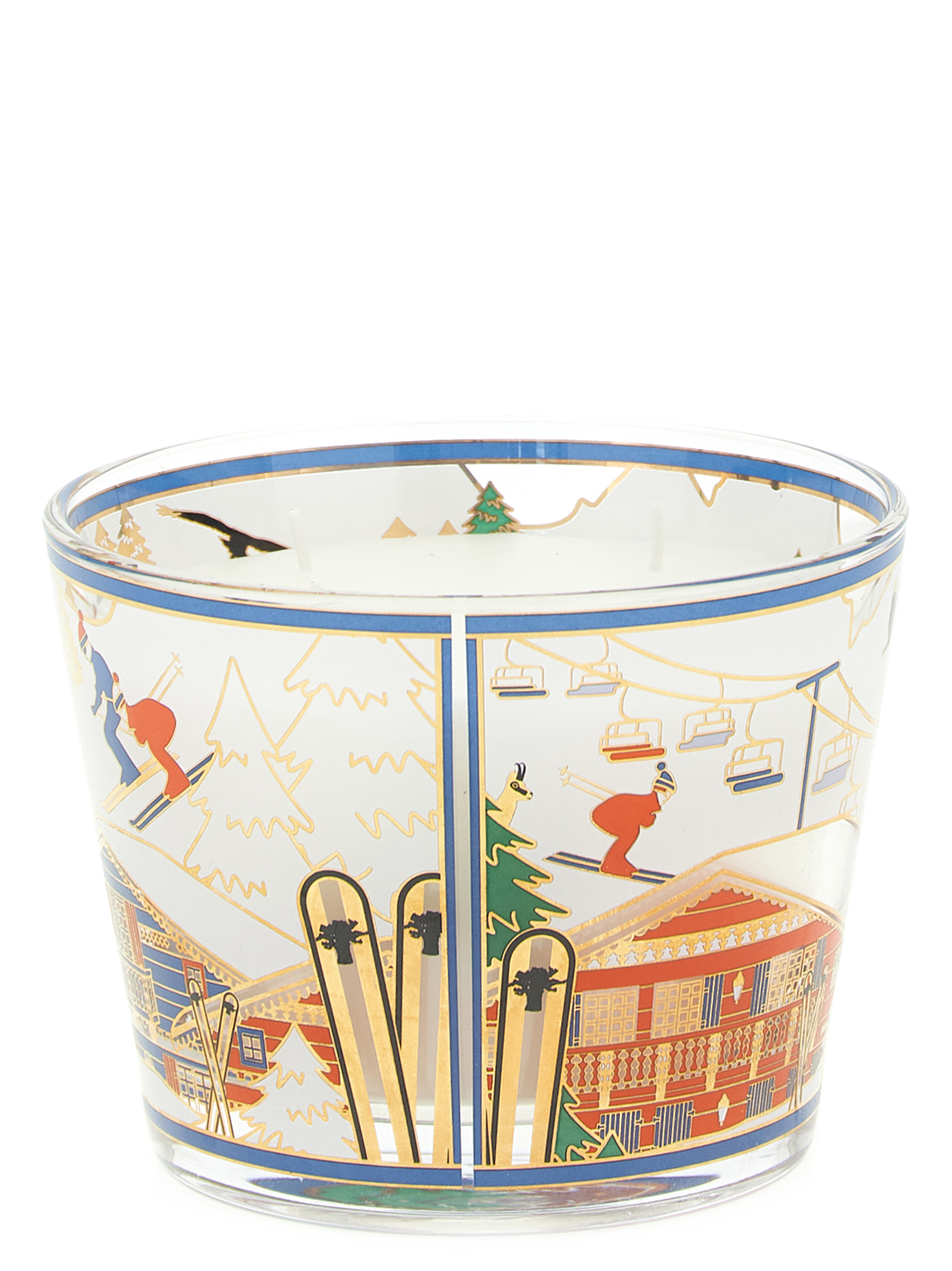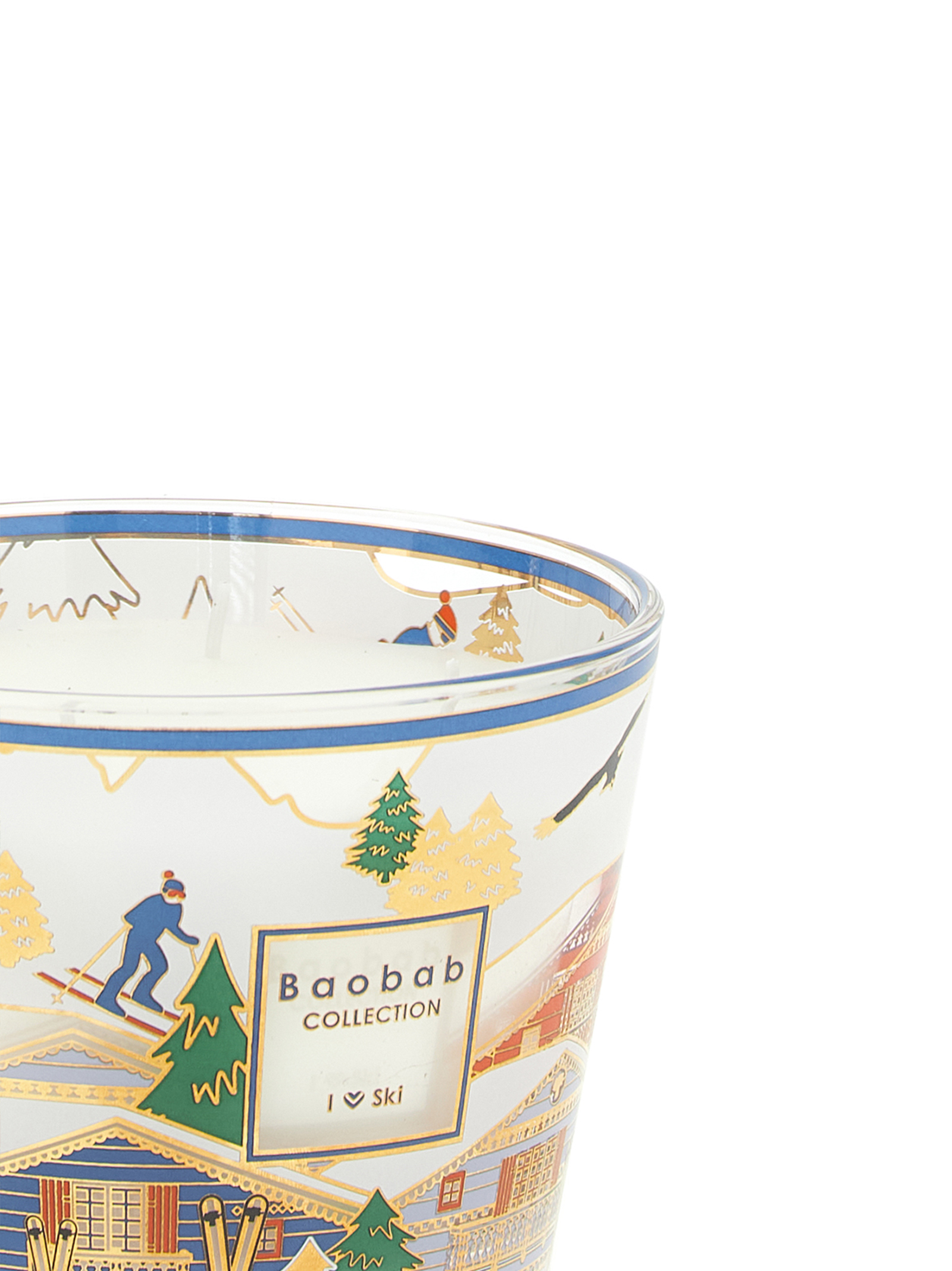 Climb to the highest and snowiest peaks with the new edition of the I Love Ski candle, an elegant ode to the world of the Alps and the most beloved winter sport. The refined glass container is embellished with a screen print in gold tones and bright colors, depicting enchanting mountain chalets immersed in a winter landscape. It’s fun to watch the little skiers, the golden firs and the chairlift all seem to come to life in the light of the flame.