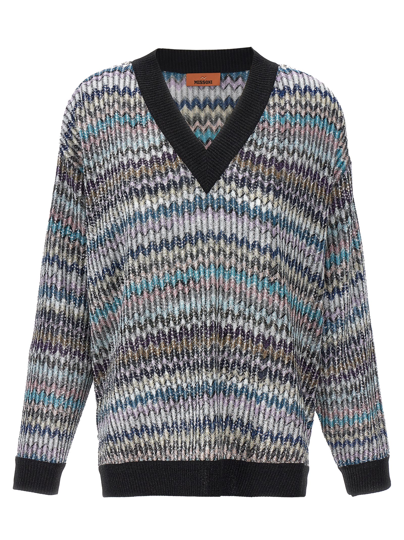 ‘Caperdoni’ viscose blend sweater with all-over sequins, V-neck, long cuffed sleeves.