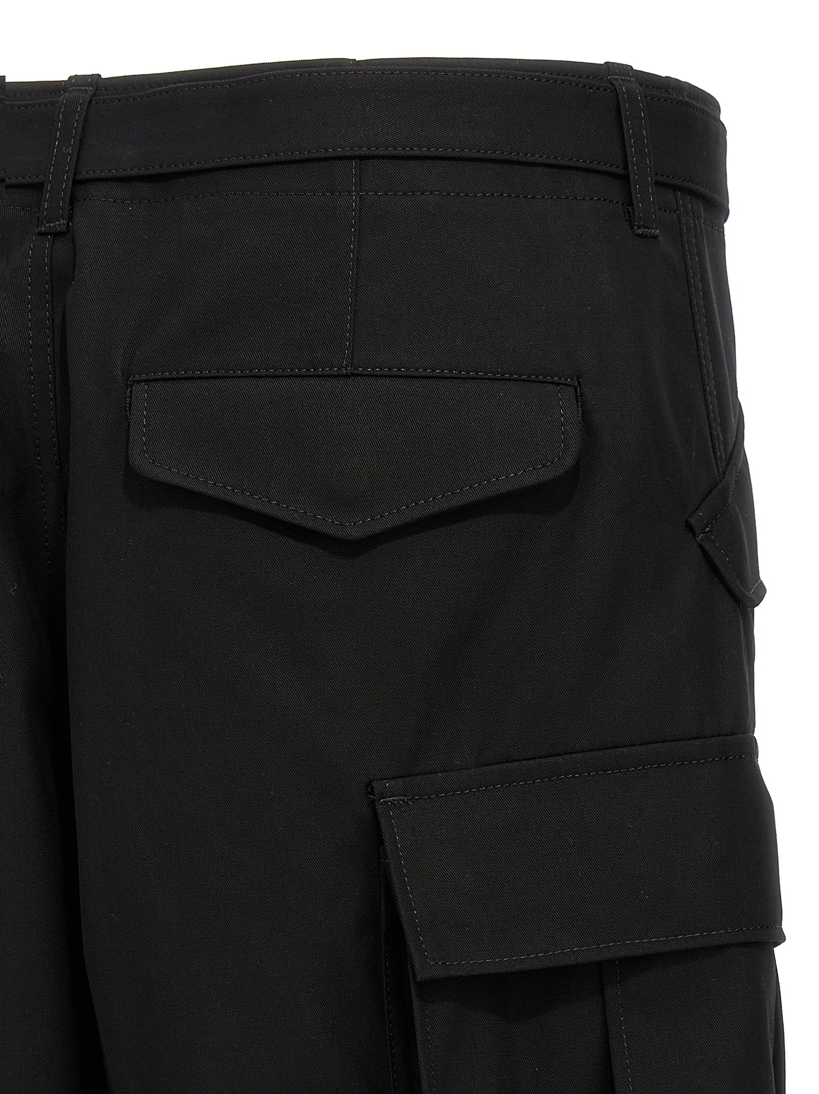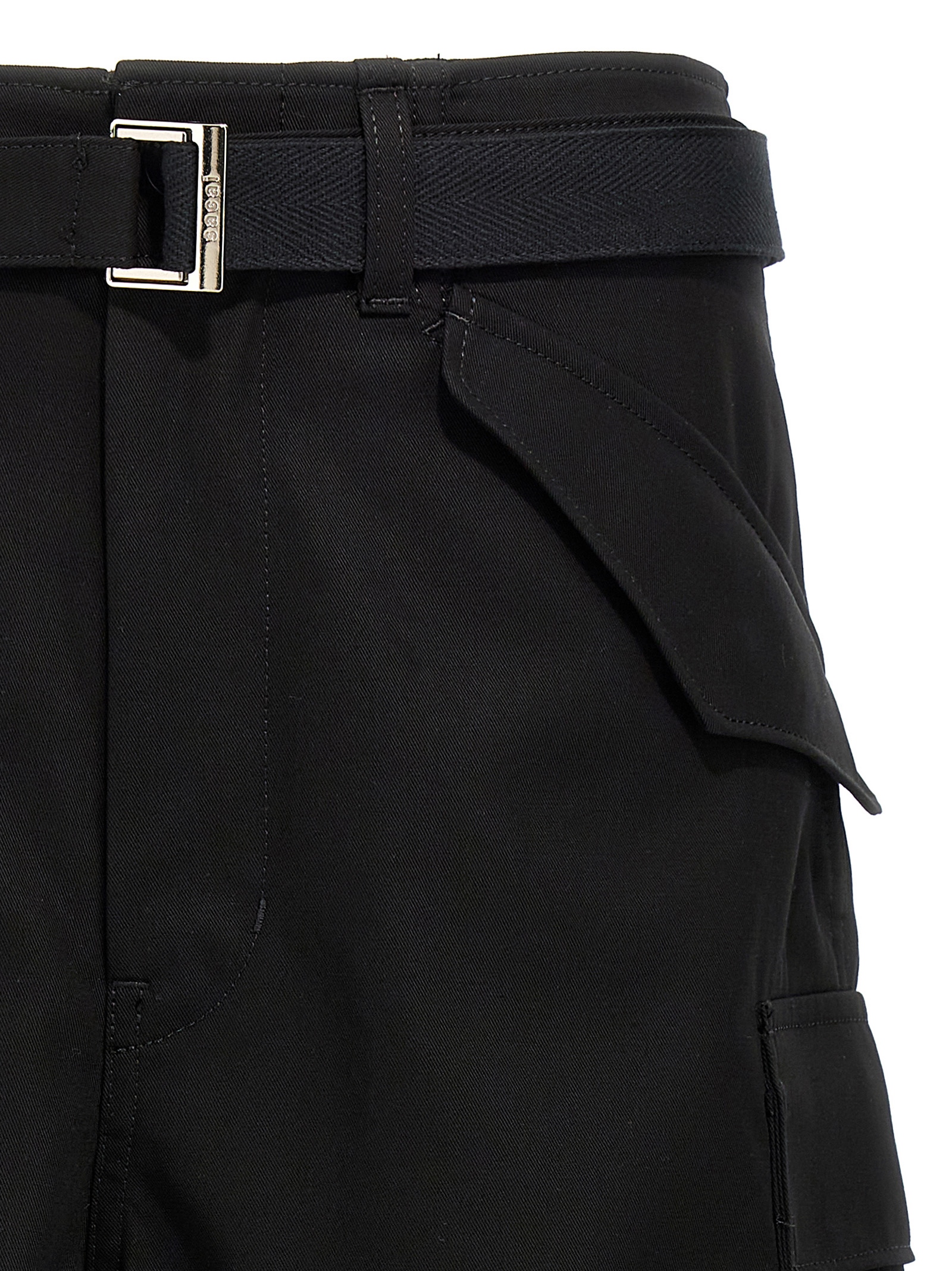 Bermuda shorts in cotton twill, model with cargo pockets with tape details, zip and button closure, adjustable and removable belt, pockets.