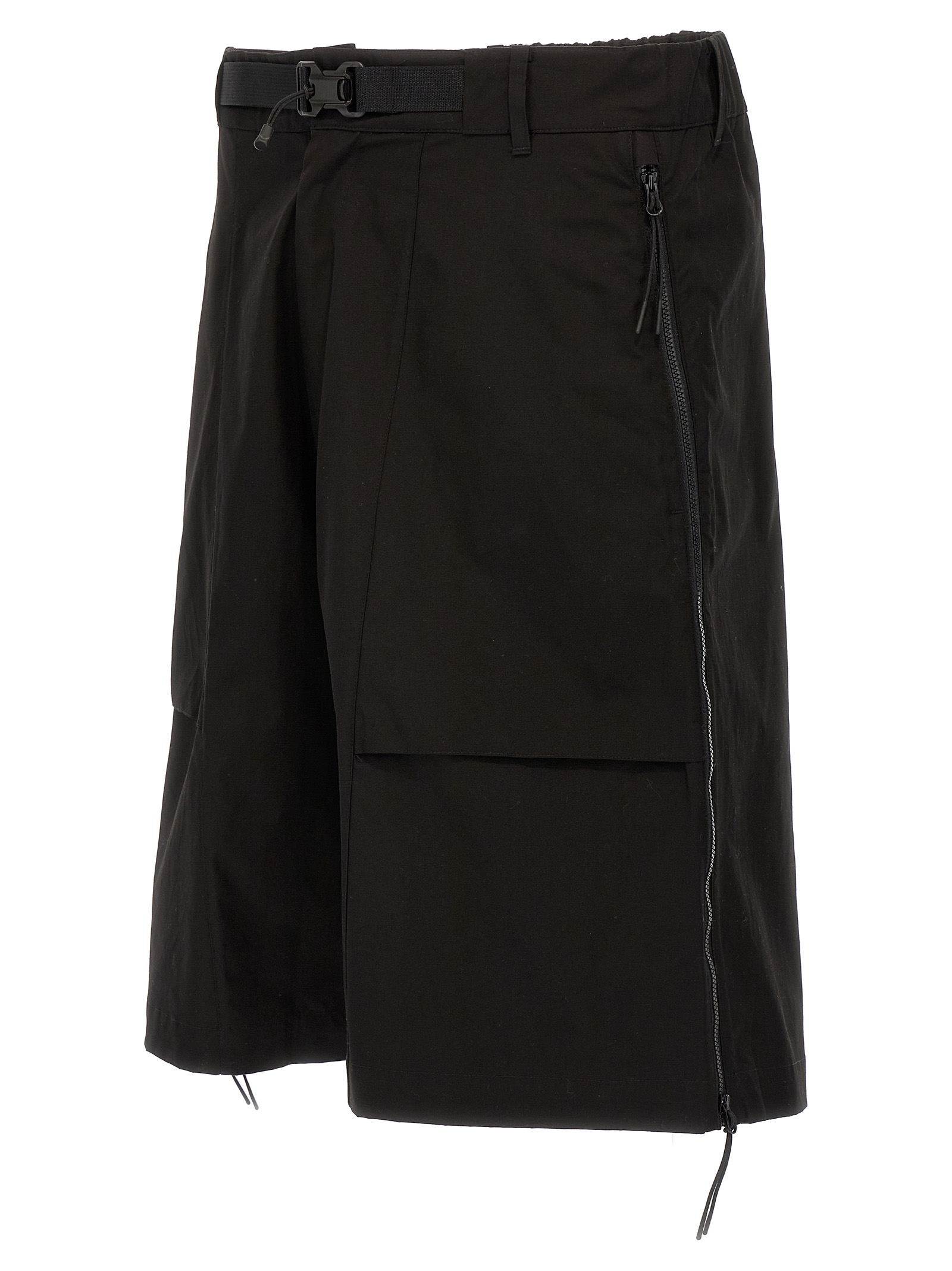 ‘Cargo Hyst’ water-repellent cotton bermuda shorts with elastic waistband, adjustable belt with buckle, side zip.