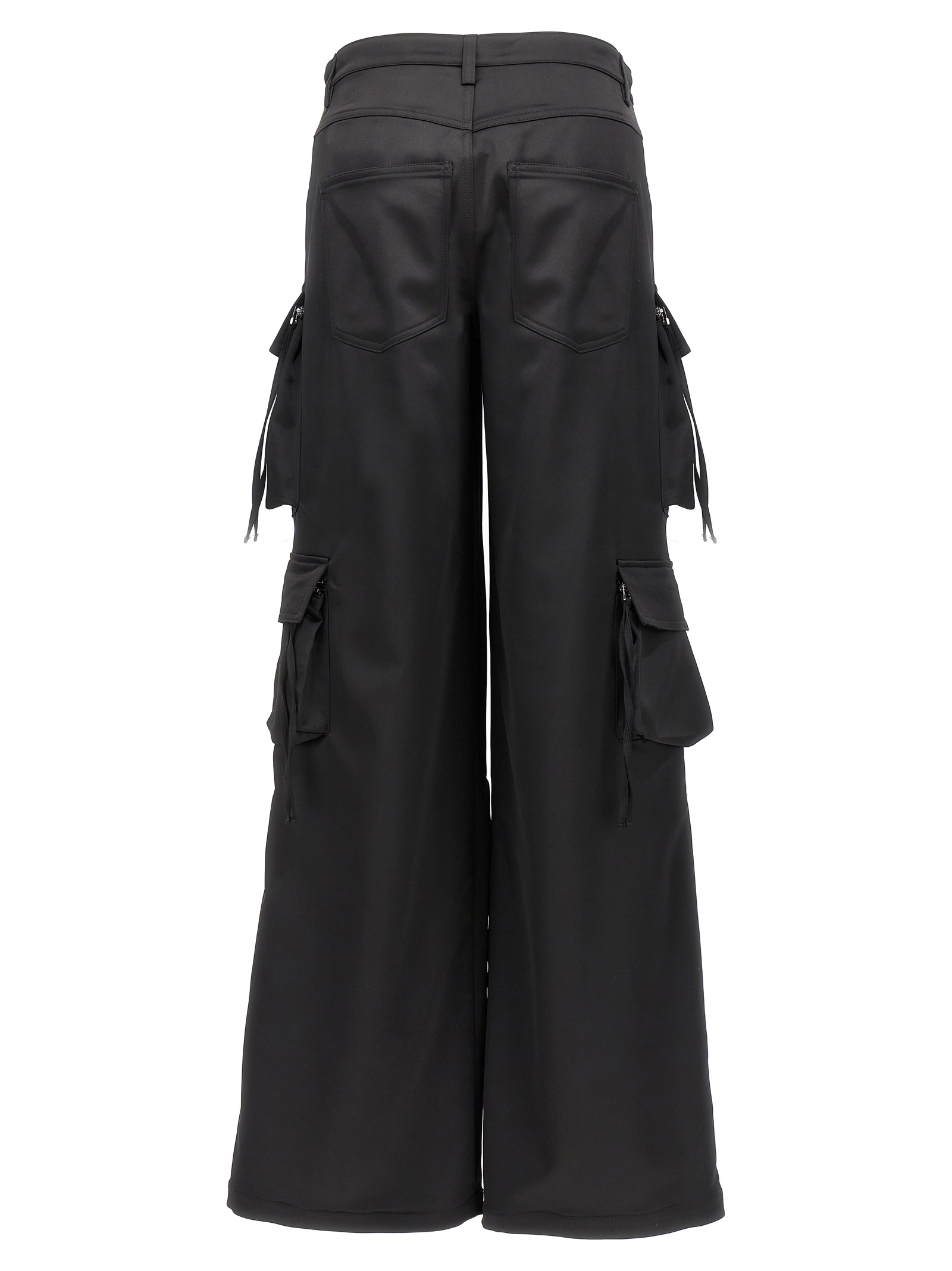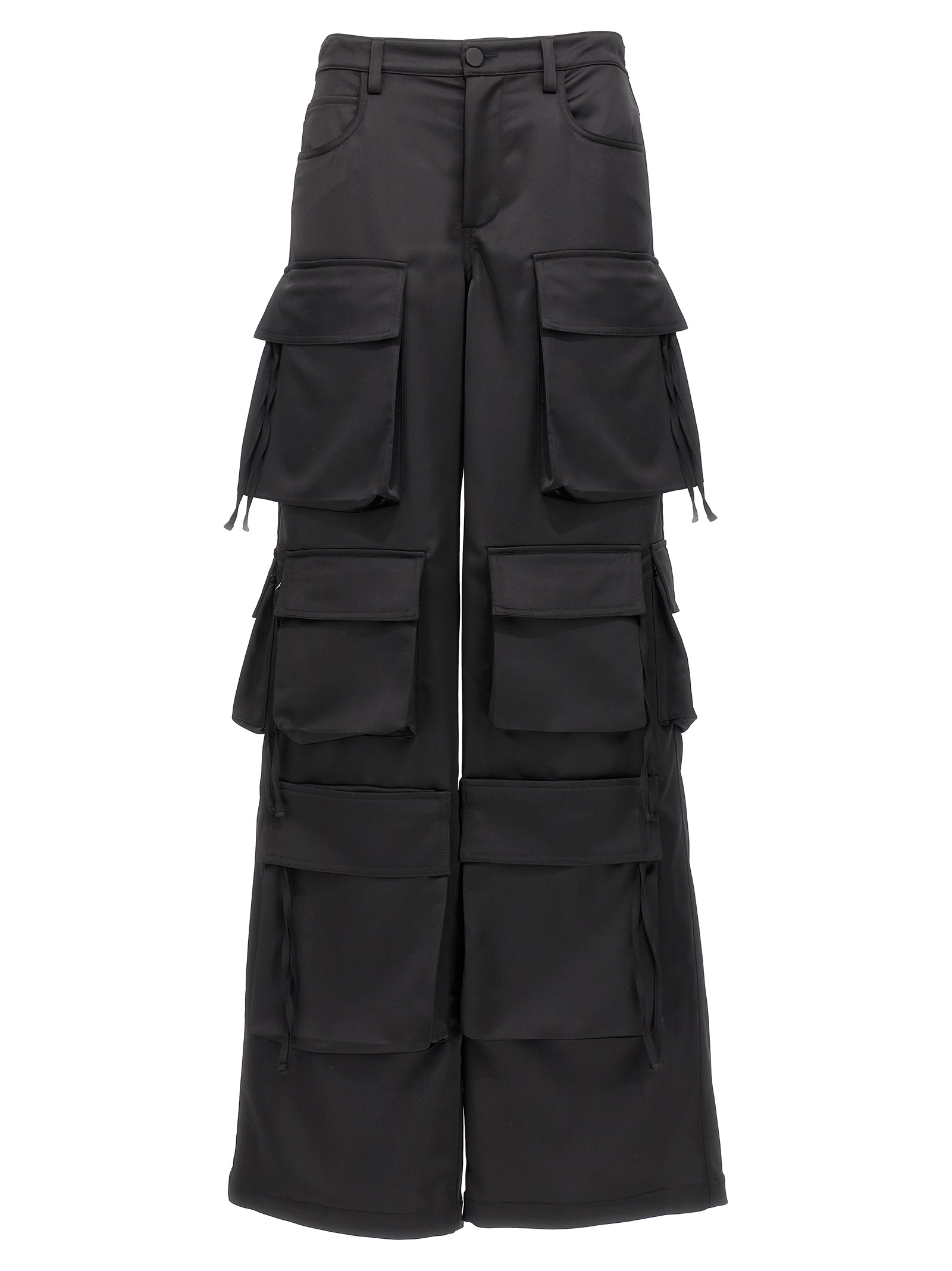Cargo satin pants with maxi and multi pockets, wide legs, regular waist.
